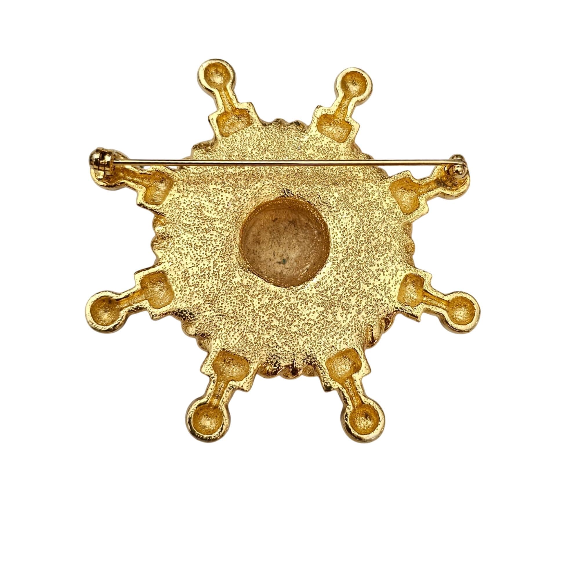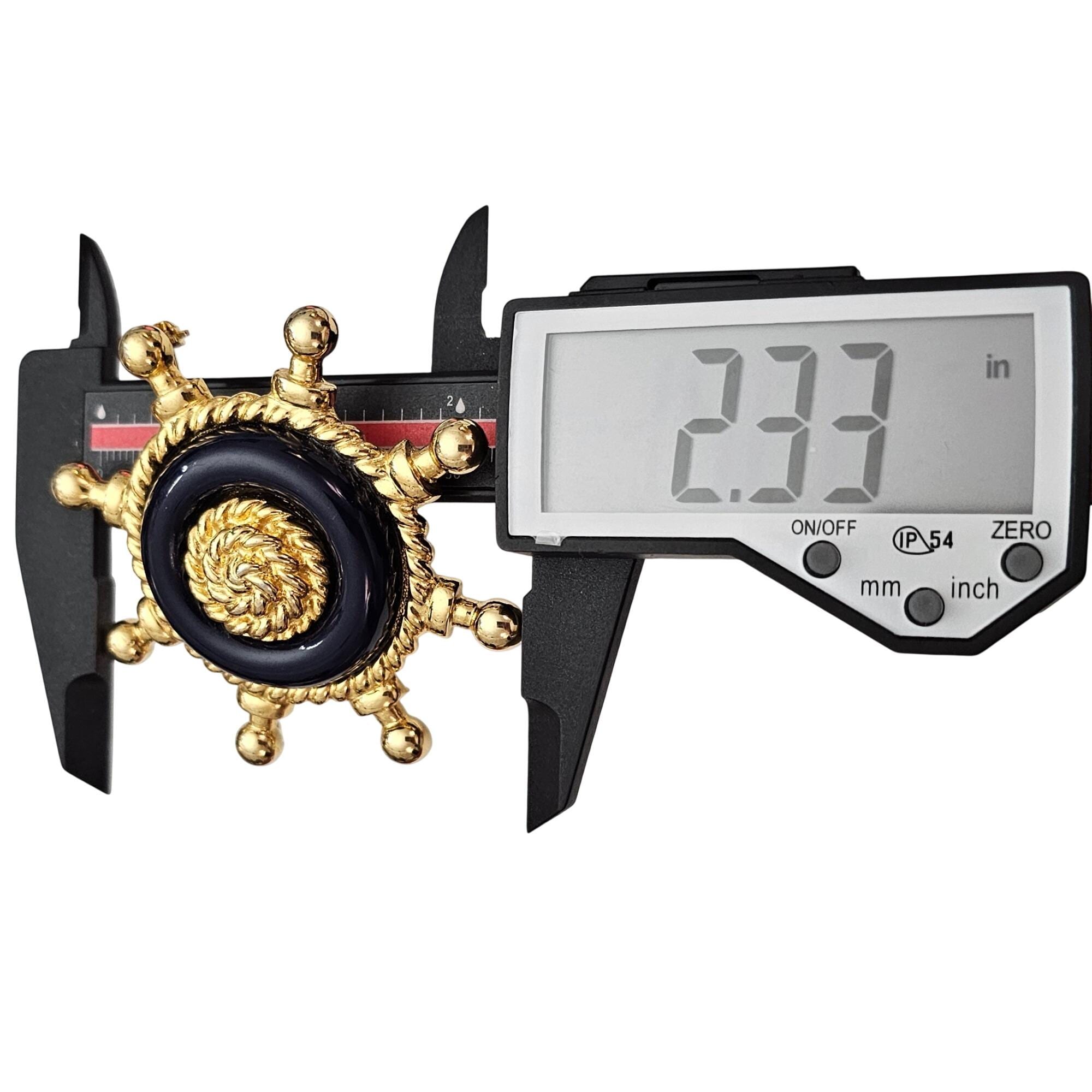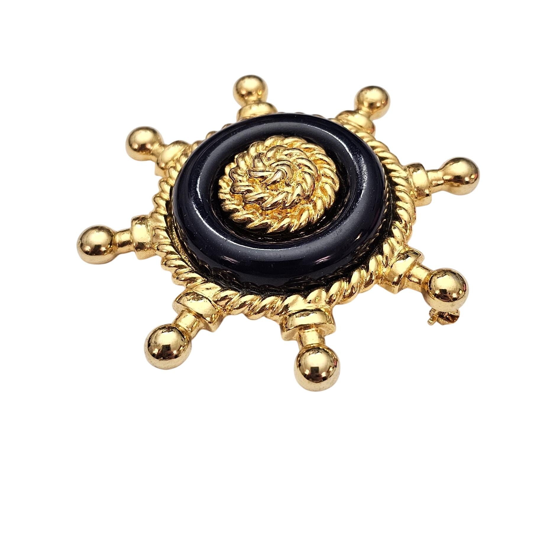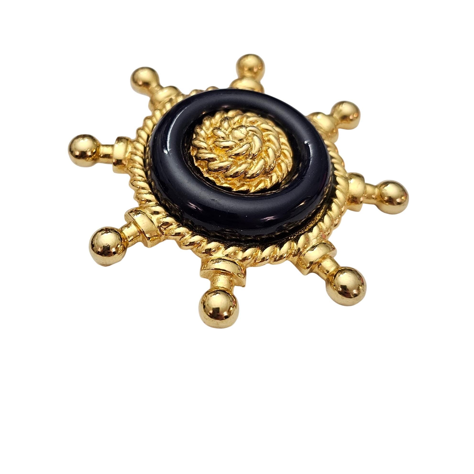 Gold Tone Ships Wheel Blue Lucite Brooch C841