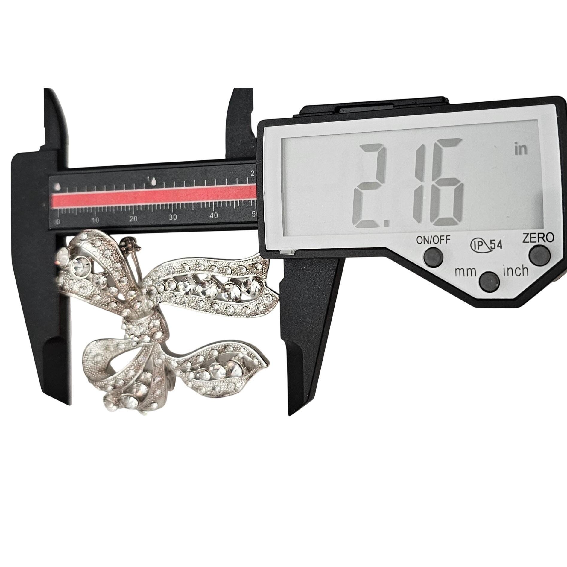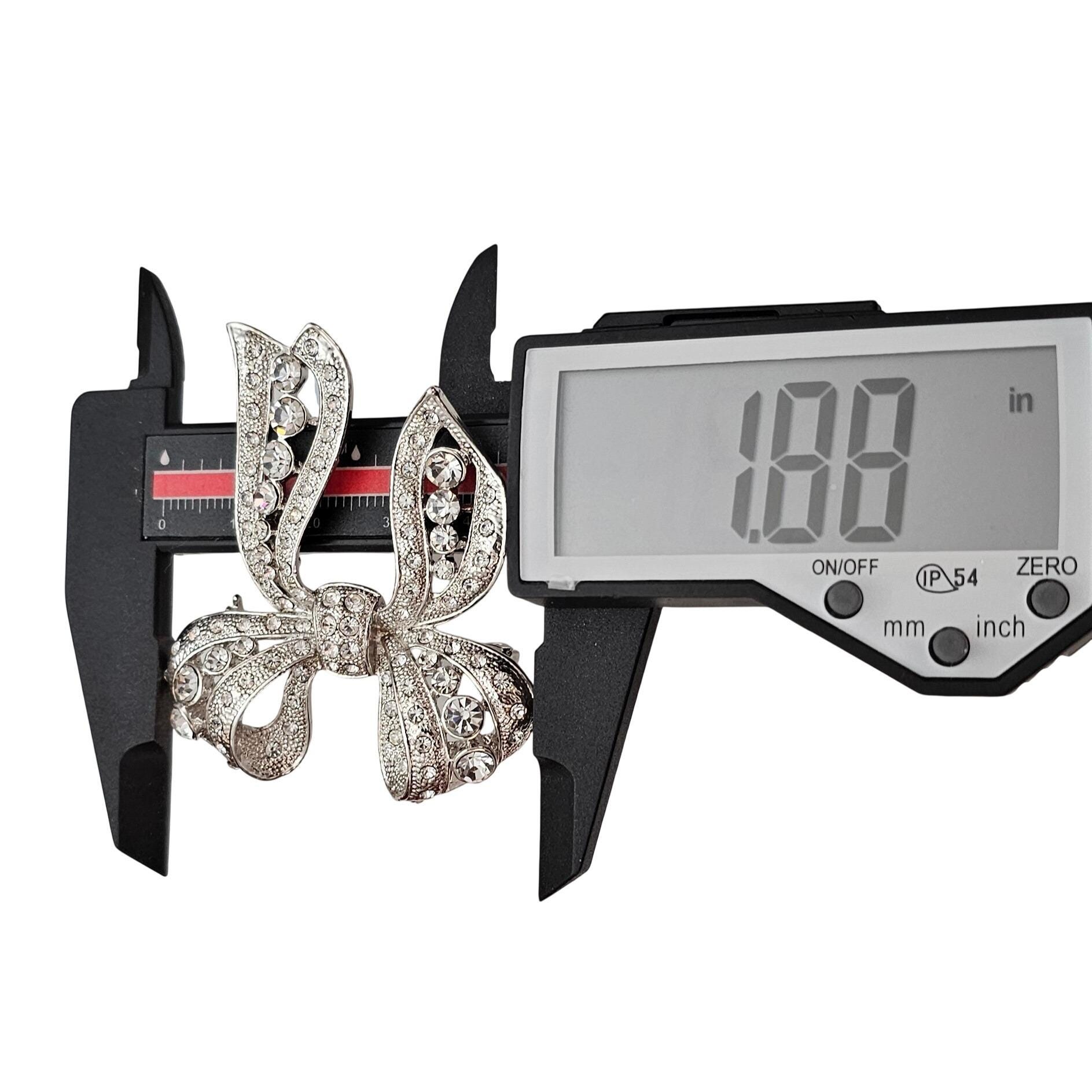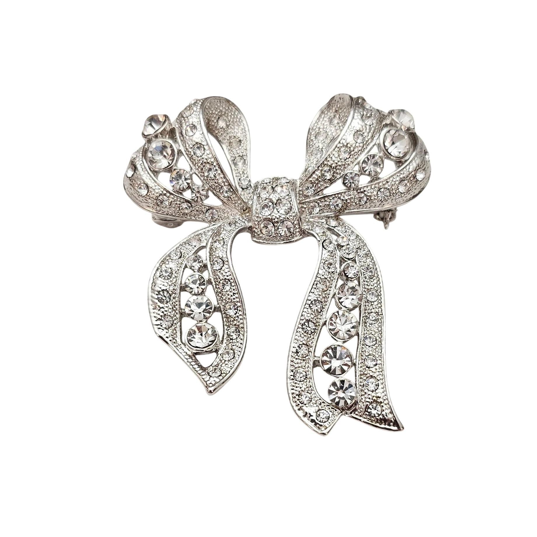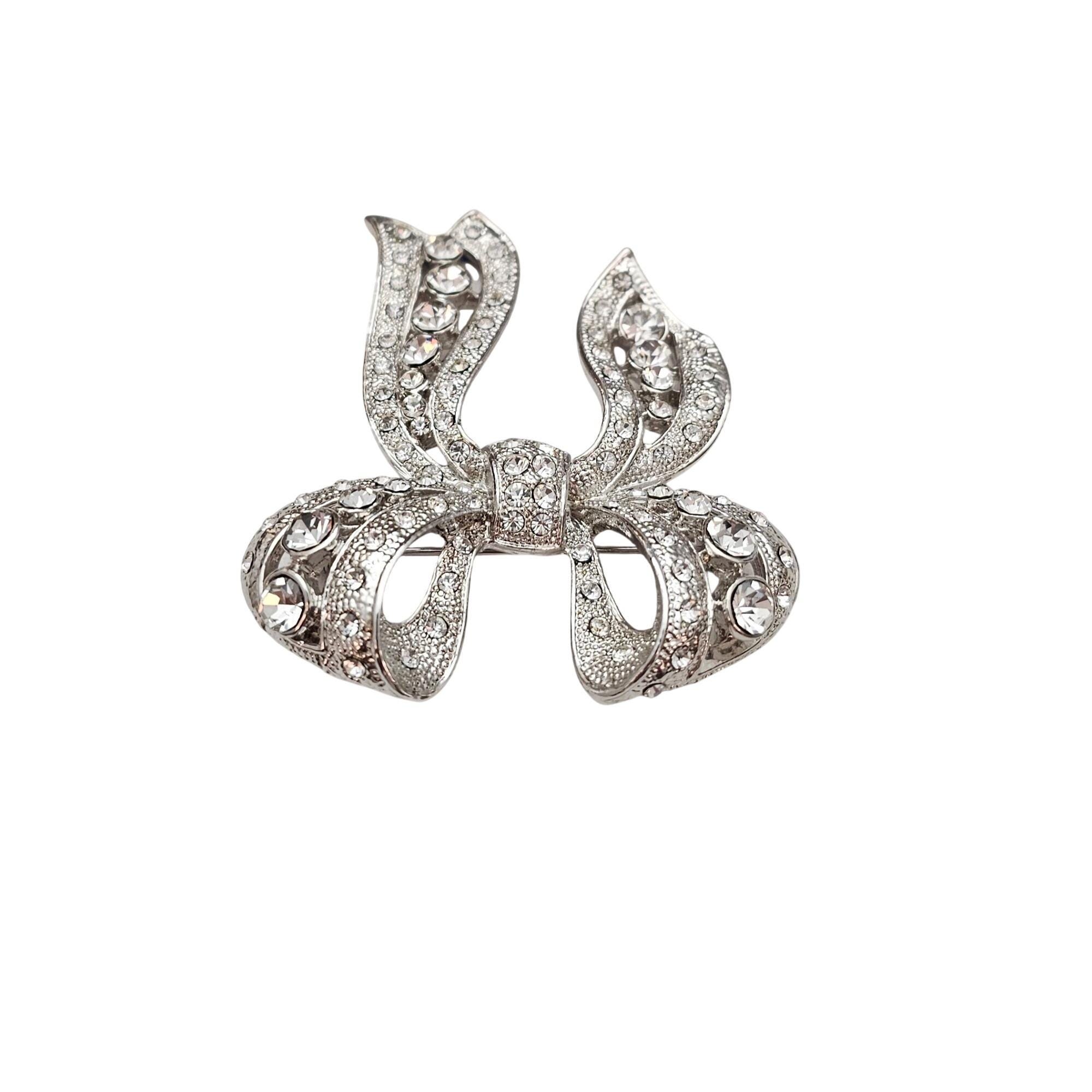 Graziano Silver Tone Clear Rhinestone Bow Brooch Chunky Pin C852