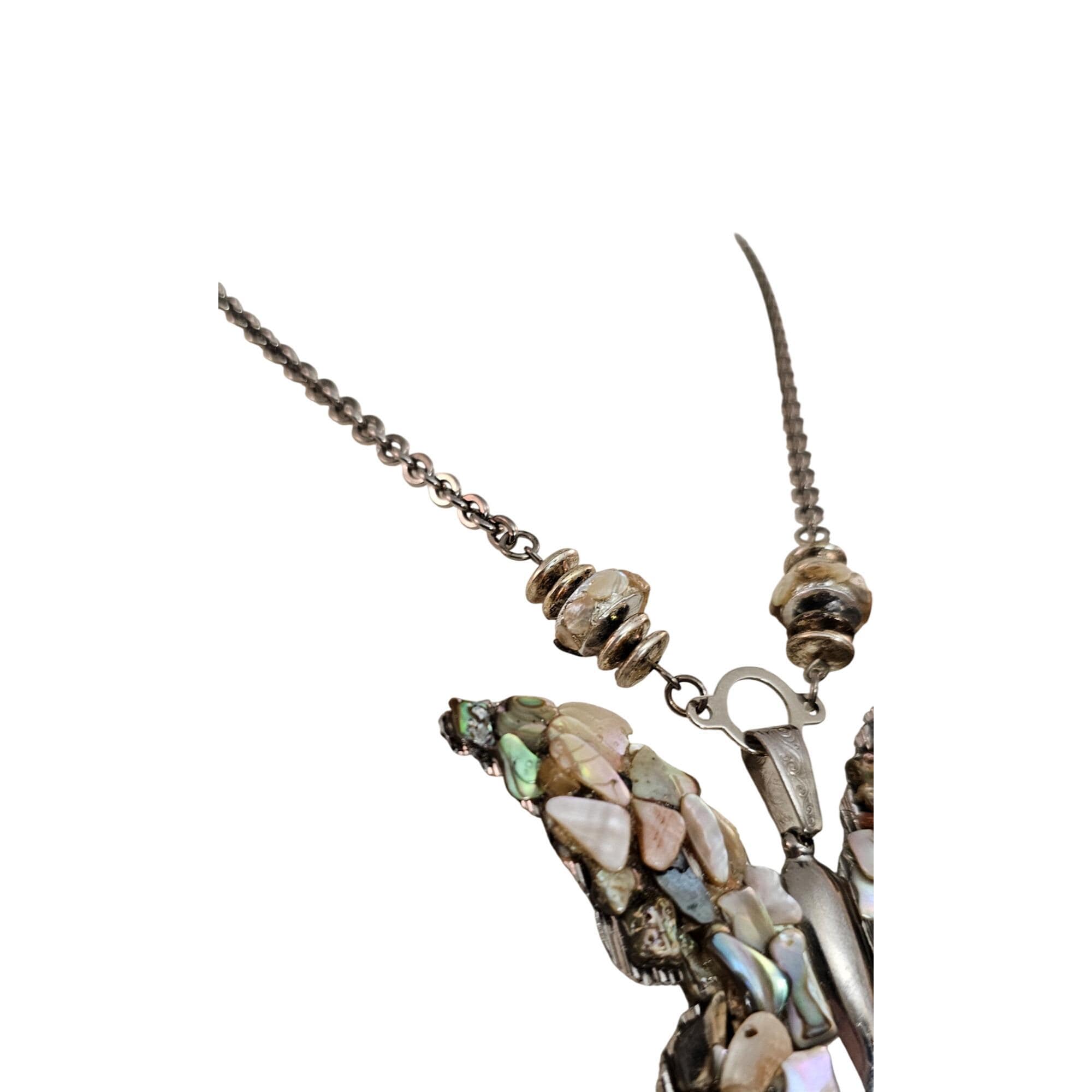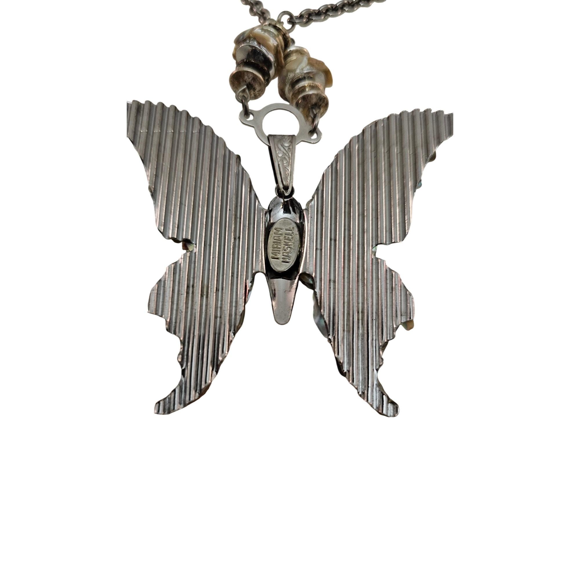 Miriam Haskell Shell Butterfly Pendant Silver Tone Chain Necklace Signed, C860