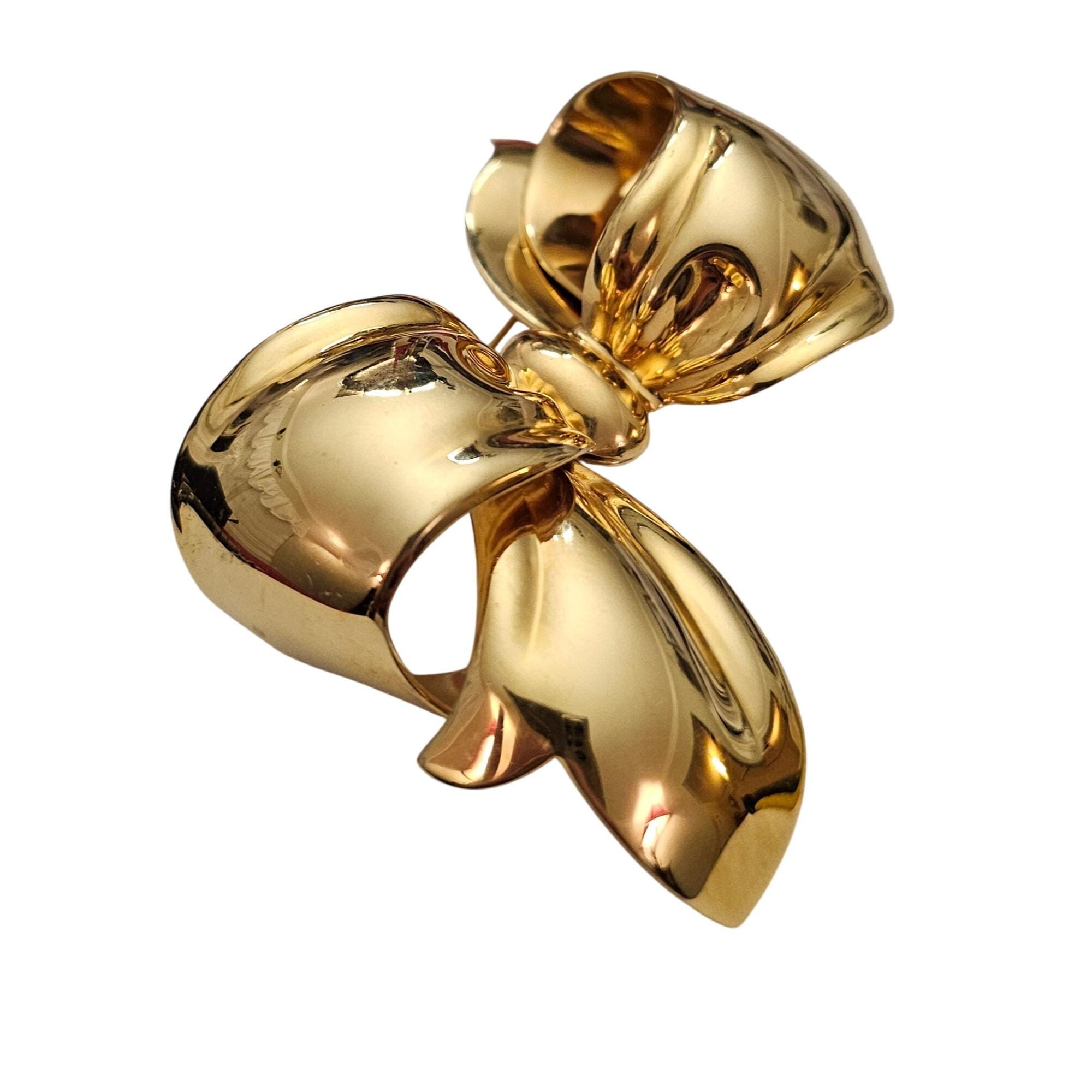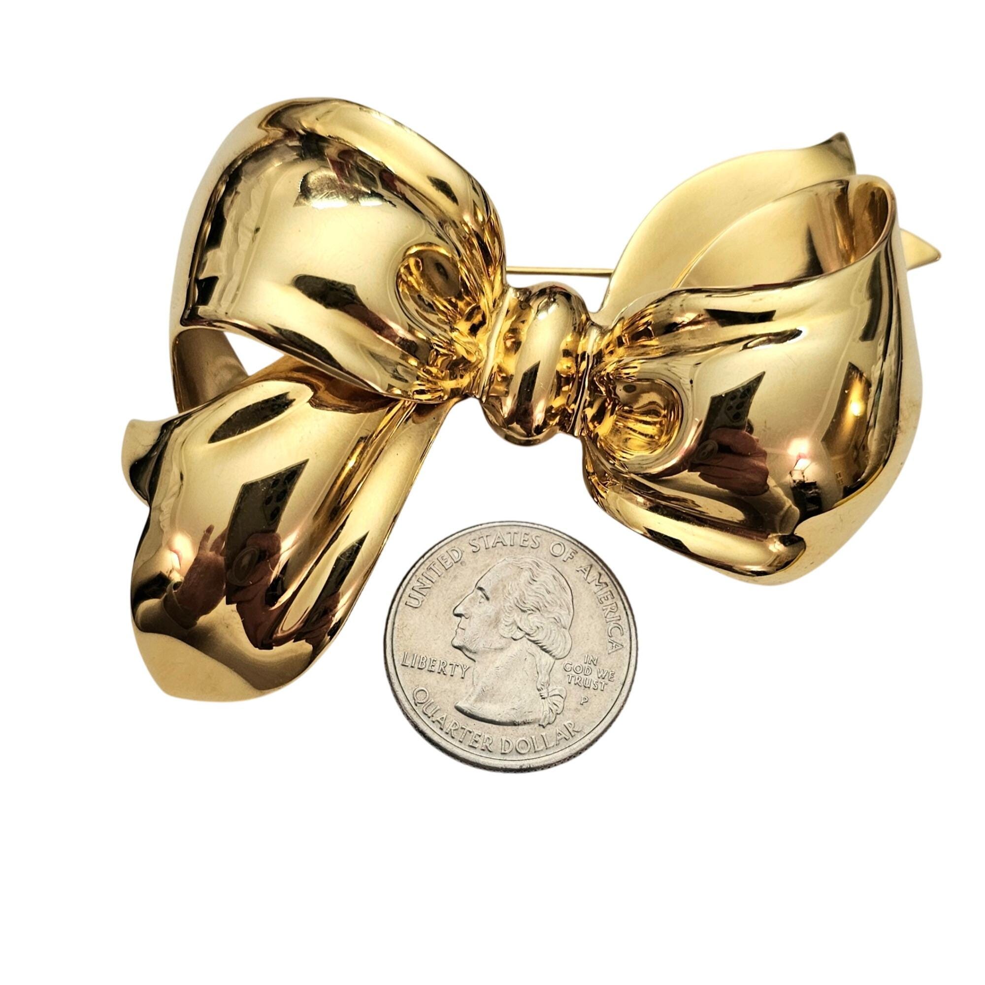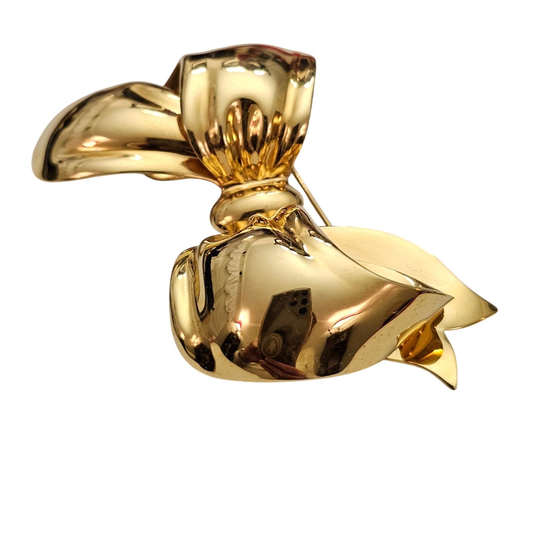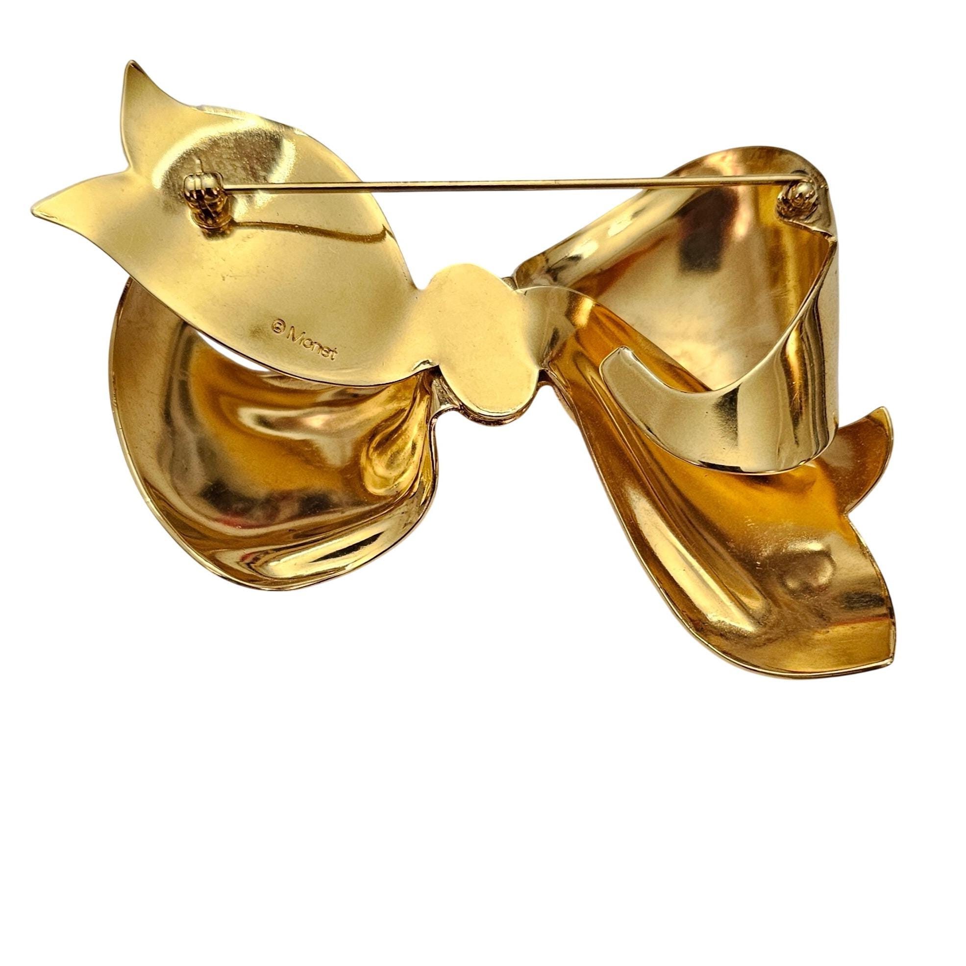 Monet Gold Tone Bow Brooch Vintage Glossy Dimensional Statement Pin Signed, C829