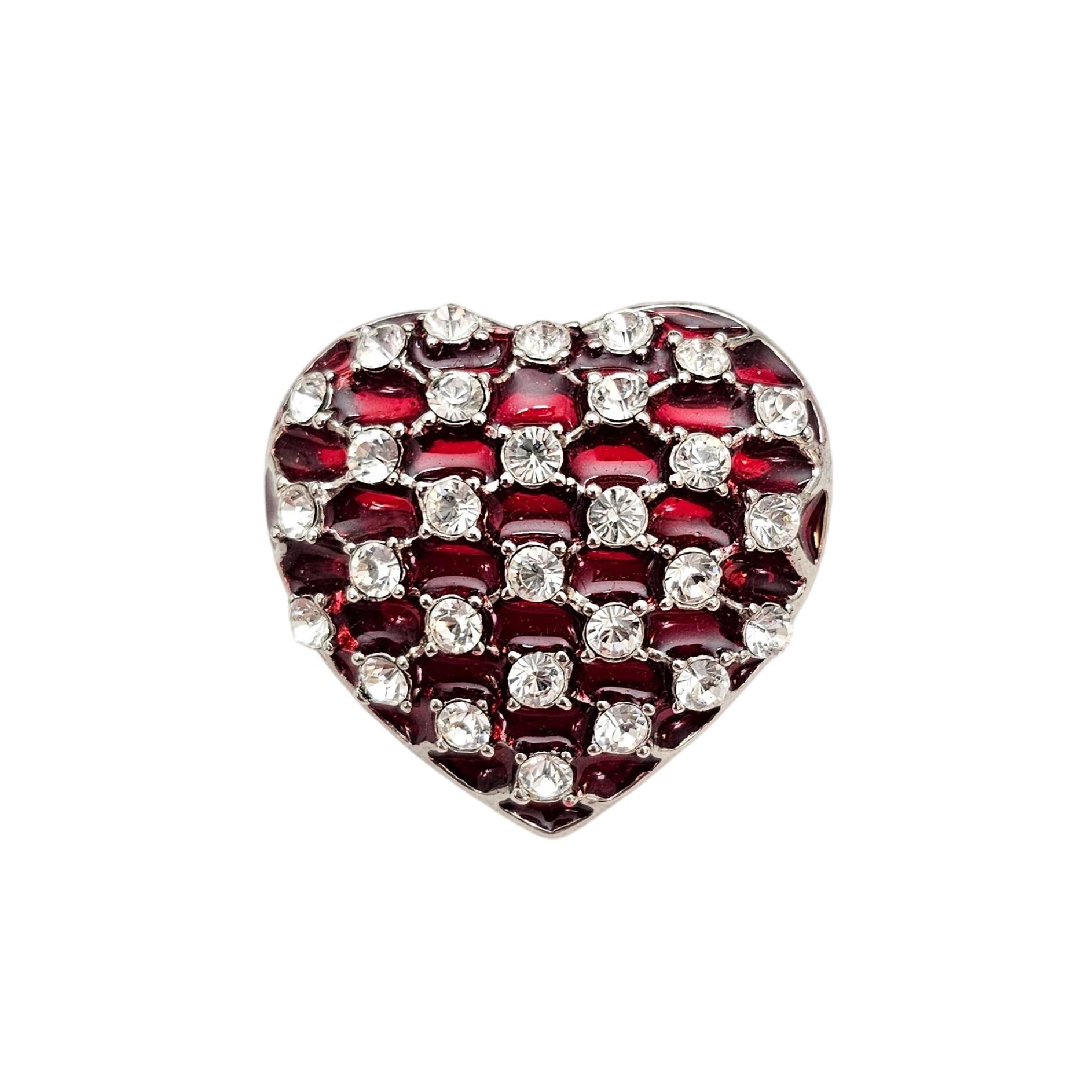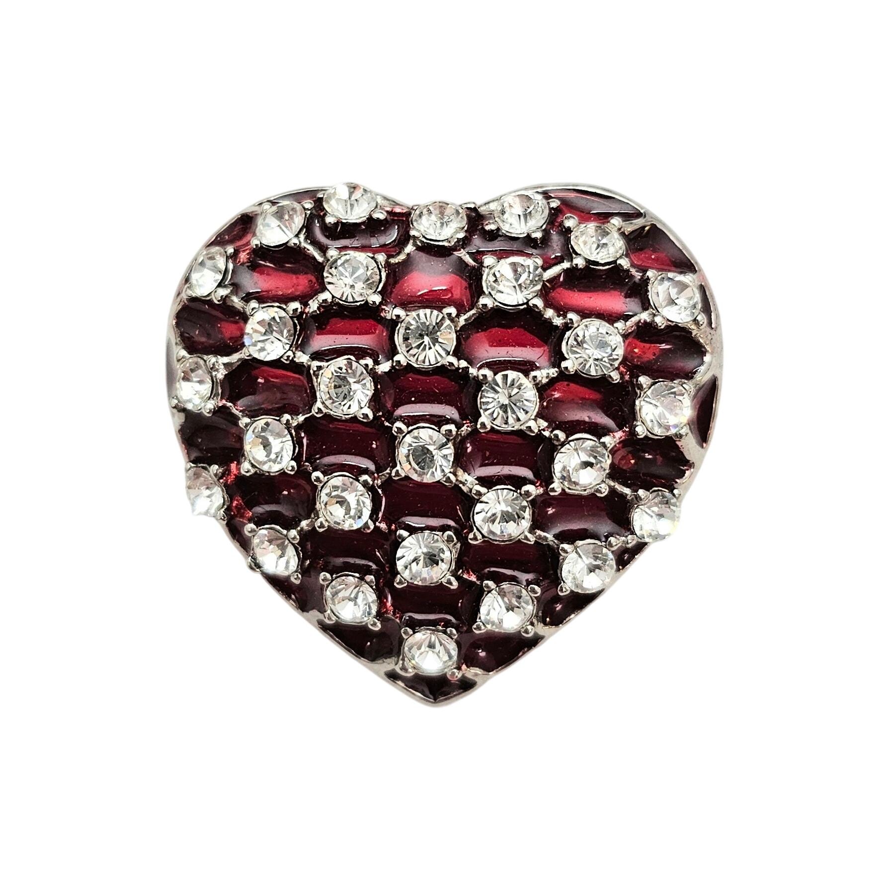 Red Plique-à-Jour Style Heart Brooch, Clear Rhinestone Pin C835