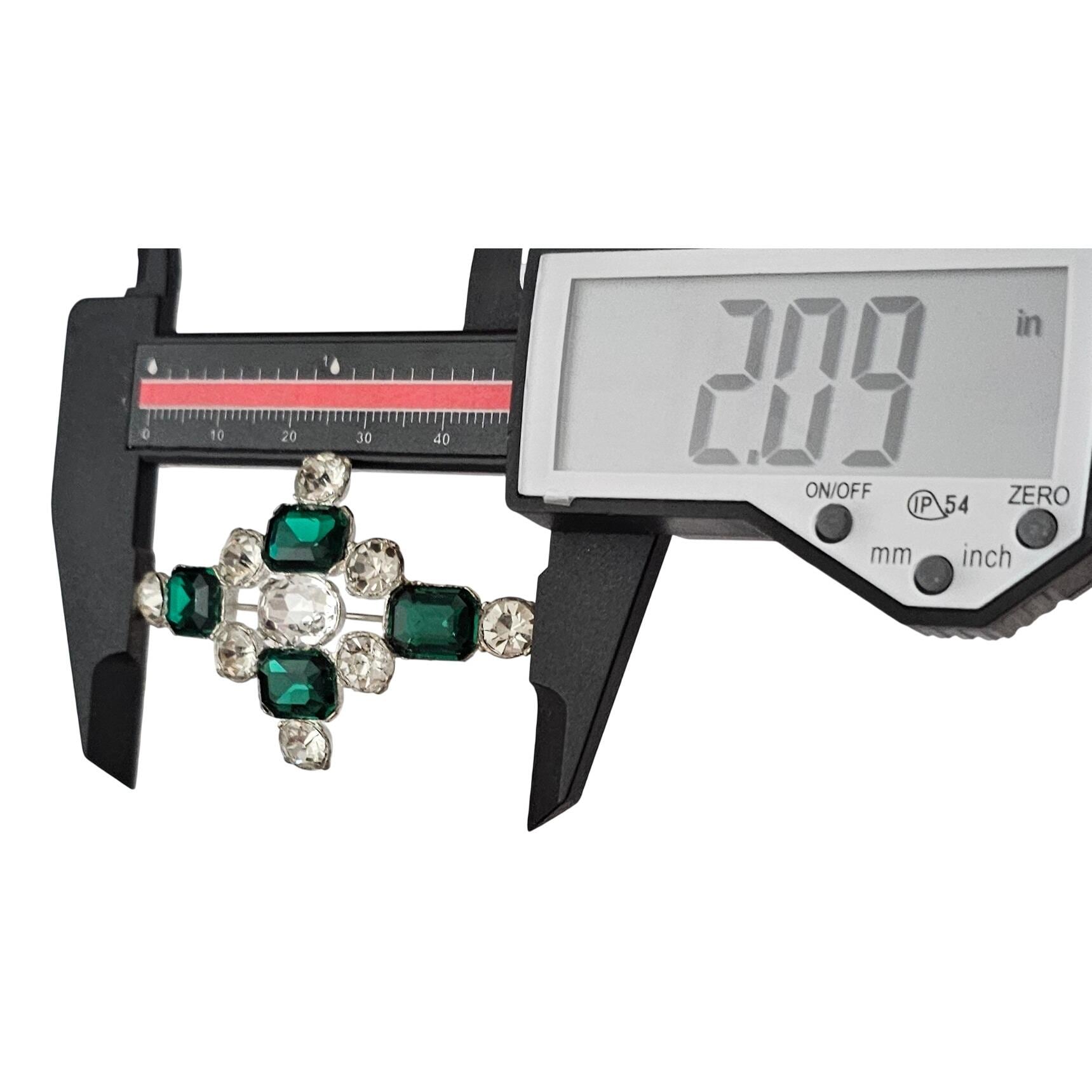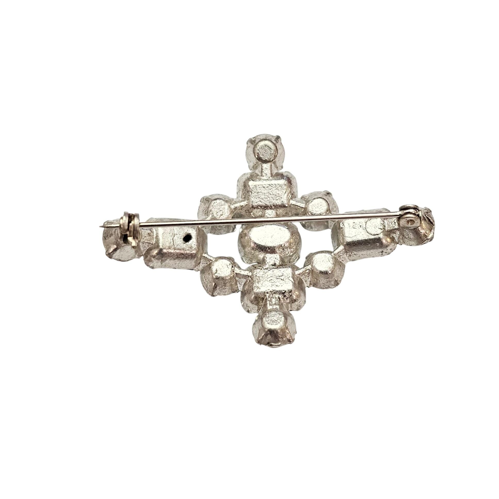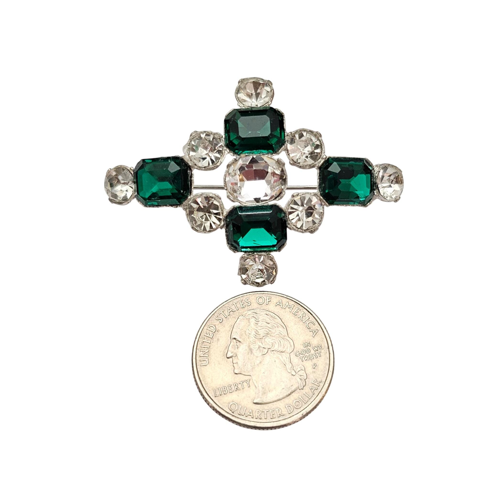 1940s Green Clear Rhinestone Maltese Cross Brooch, New Old Stock Pin C907