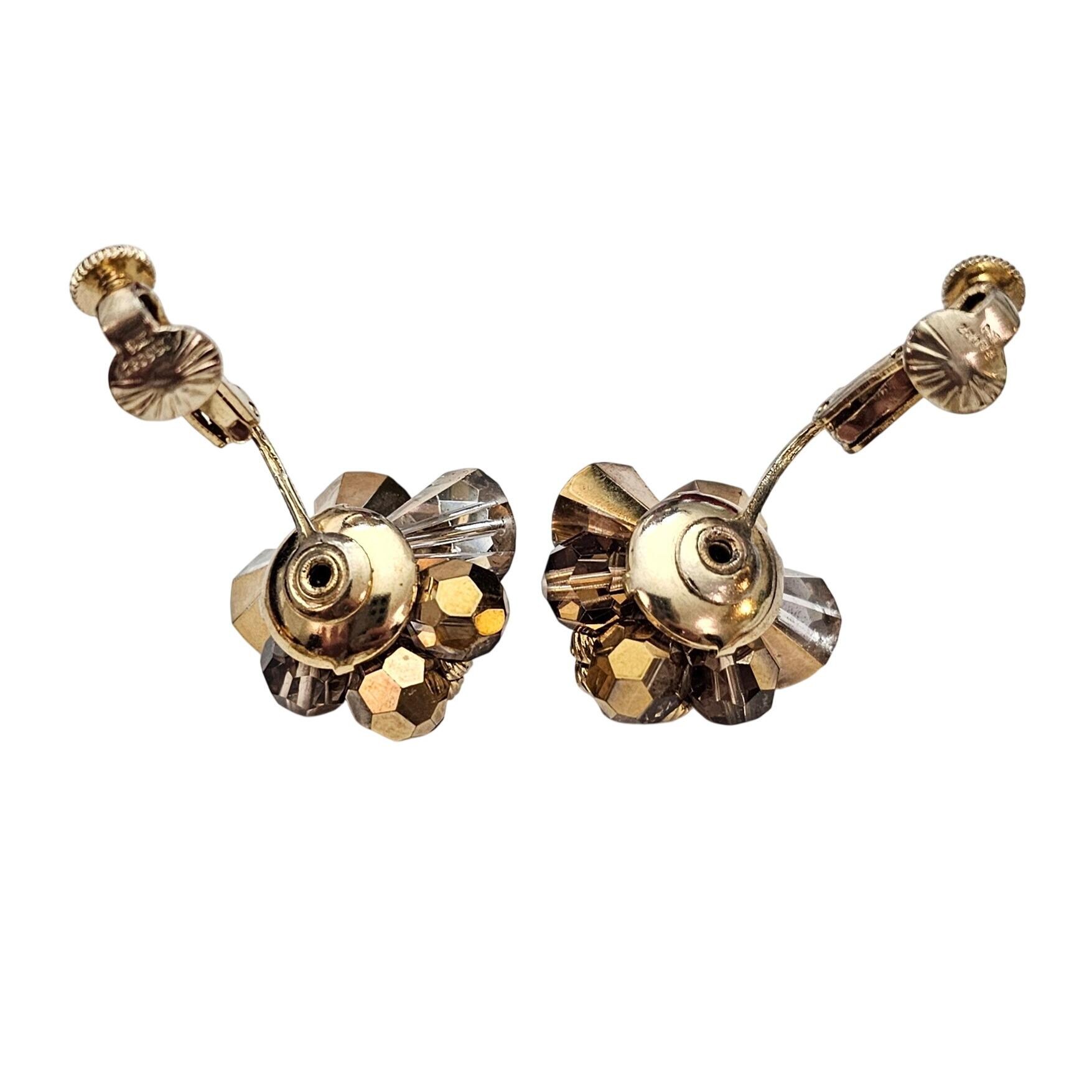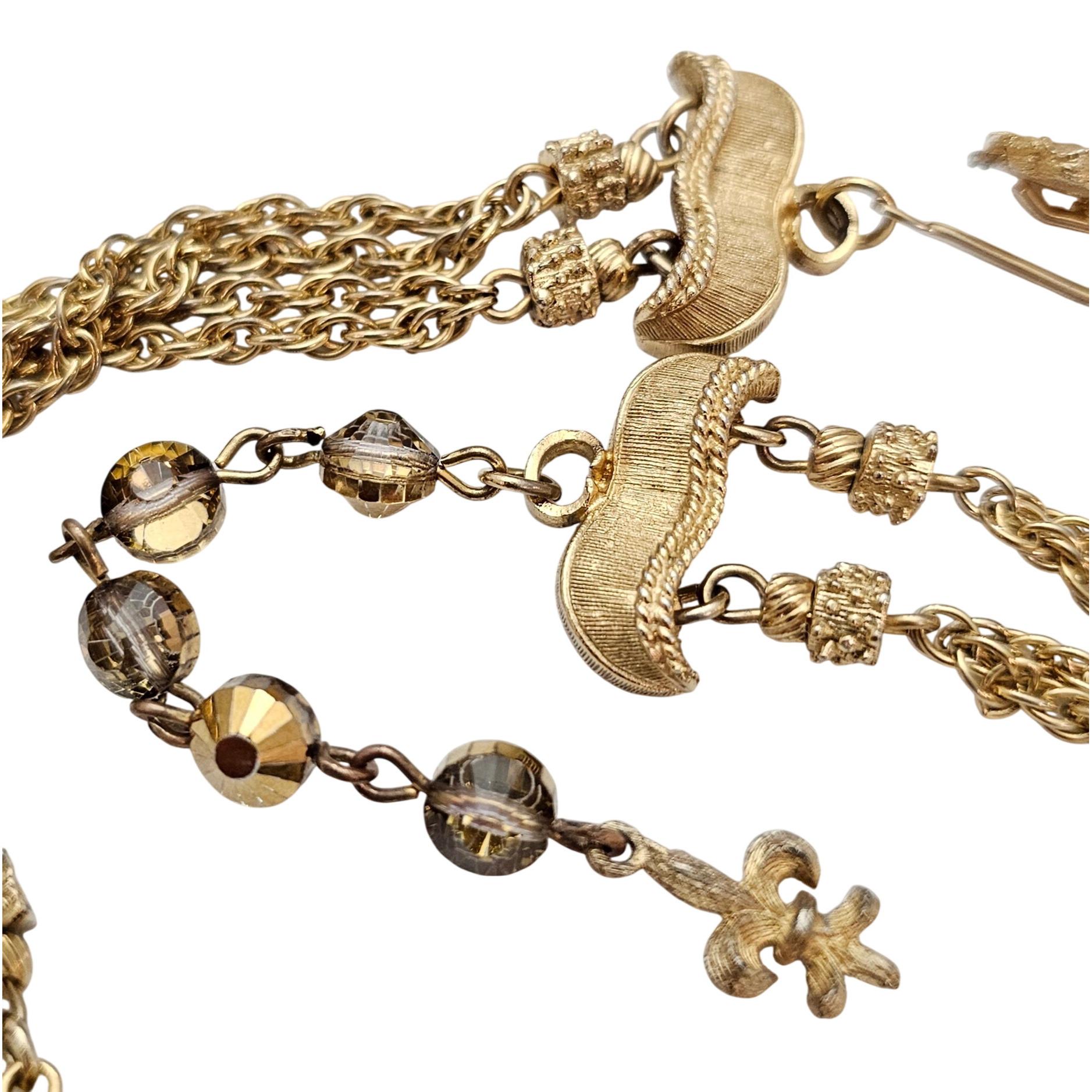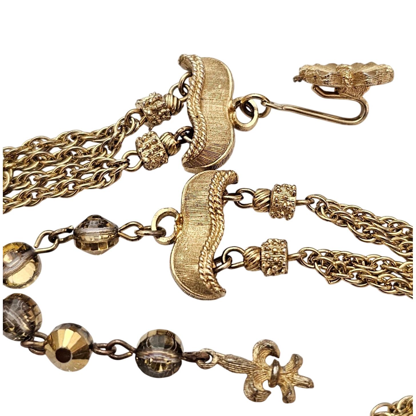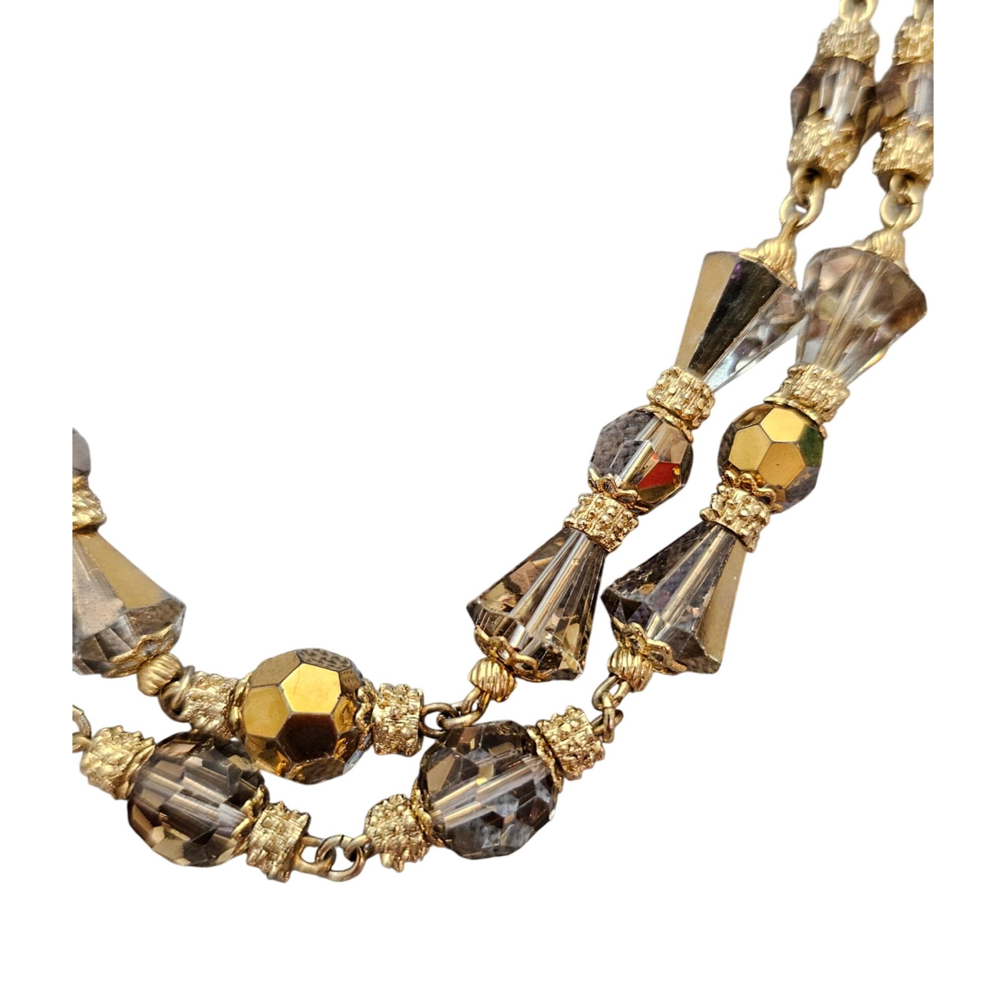 Vendome AB Gold Faceted Necklace Clip On Earrings Set Vintage Double Strand Shepard Hook Signed, C911