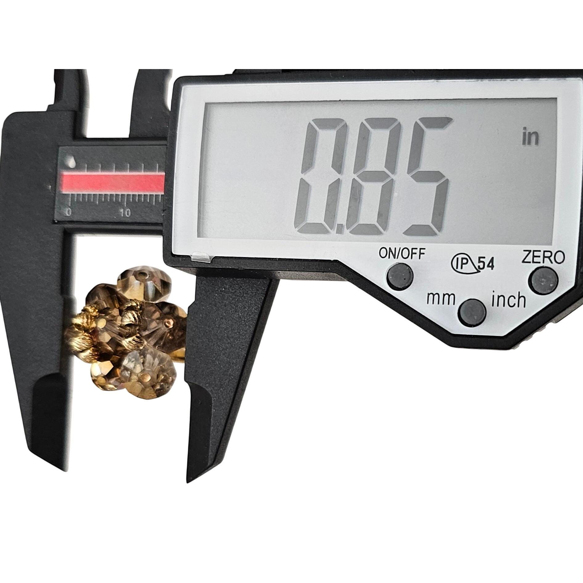 • Decorated AB and gold faceted rhinestones, and an ornate cap and beads