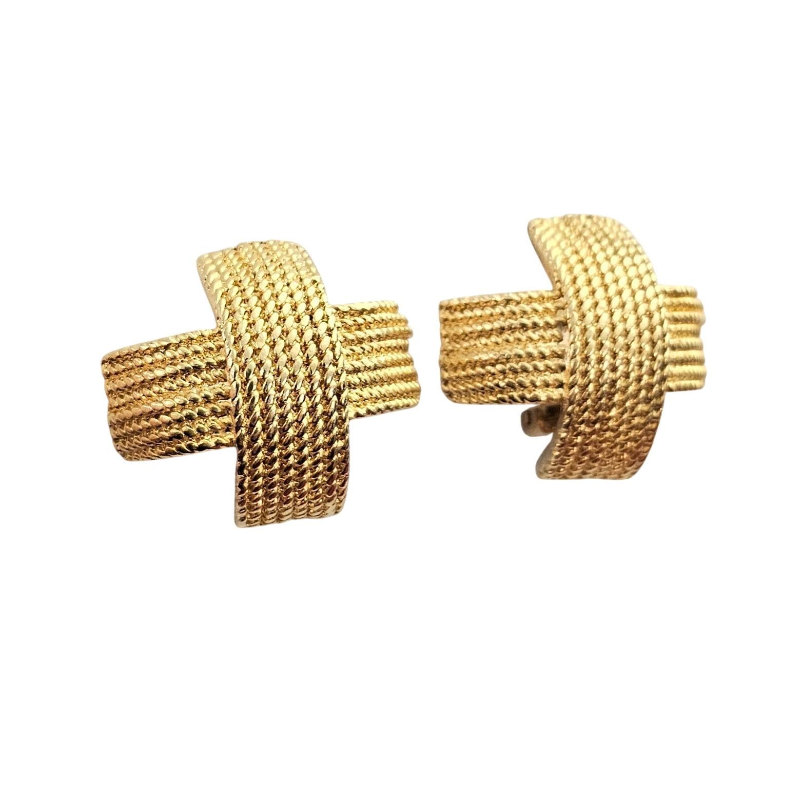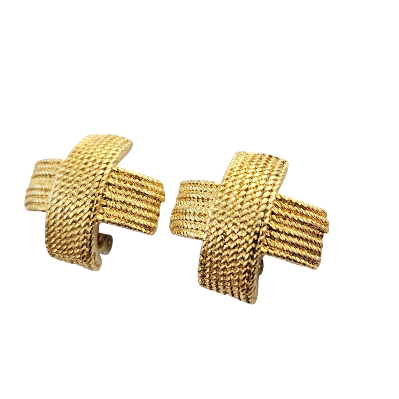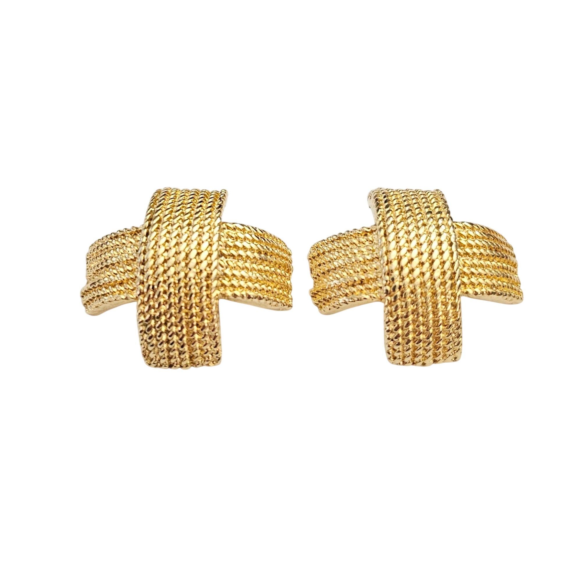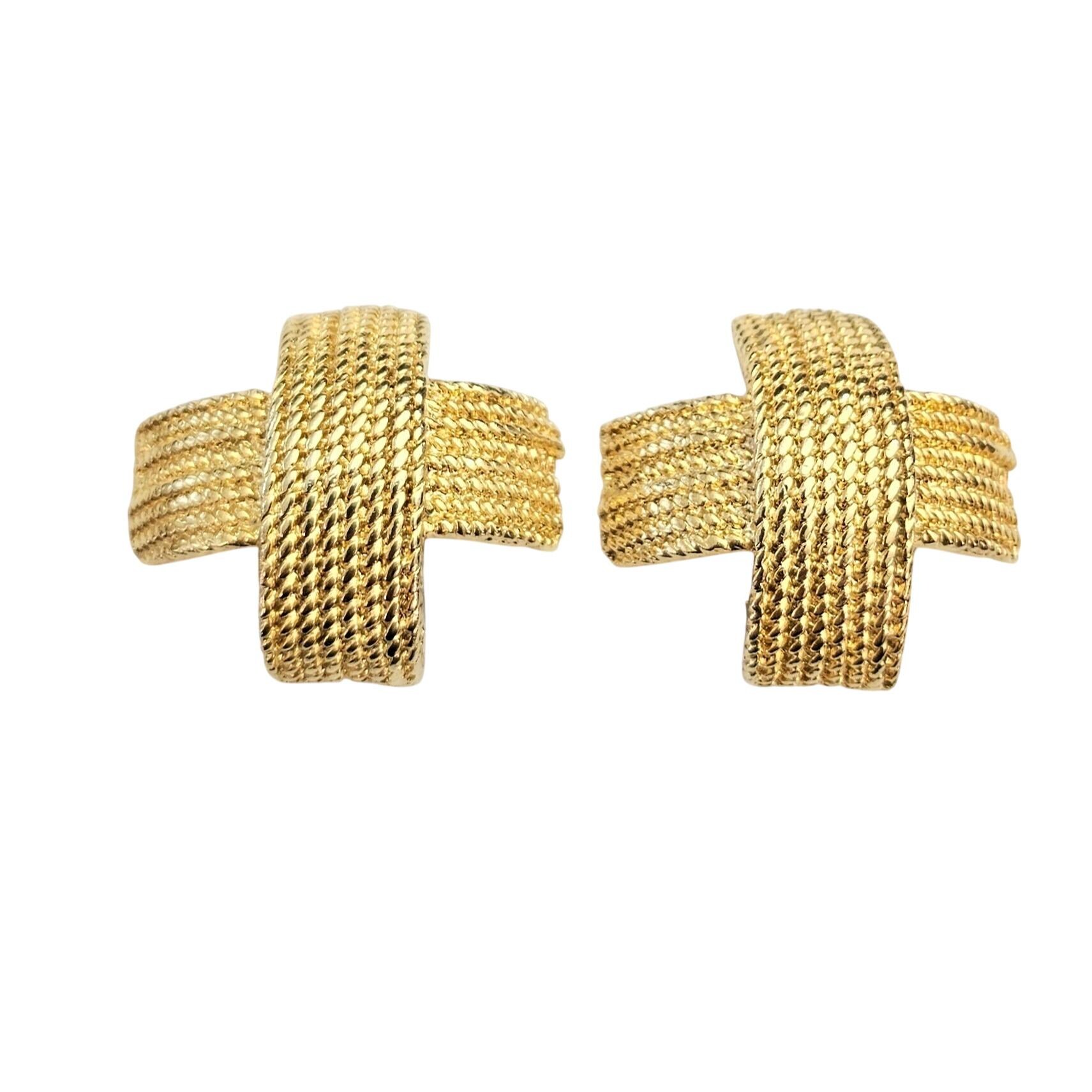Erwin Pearl Rope Twist Cross X Clip On Earrings Signed C929