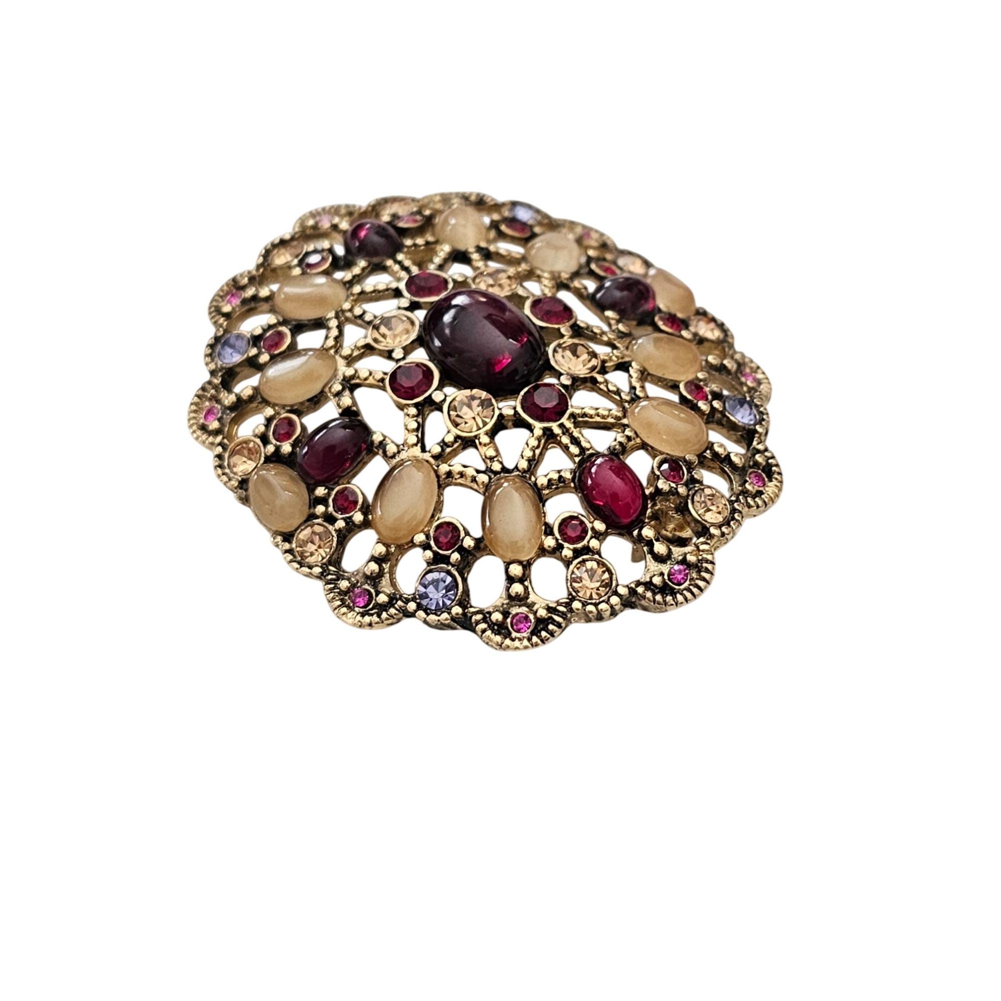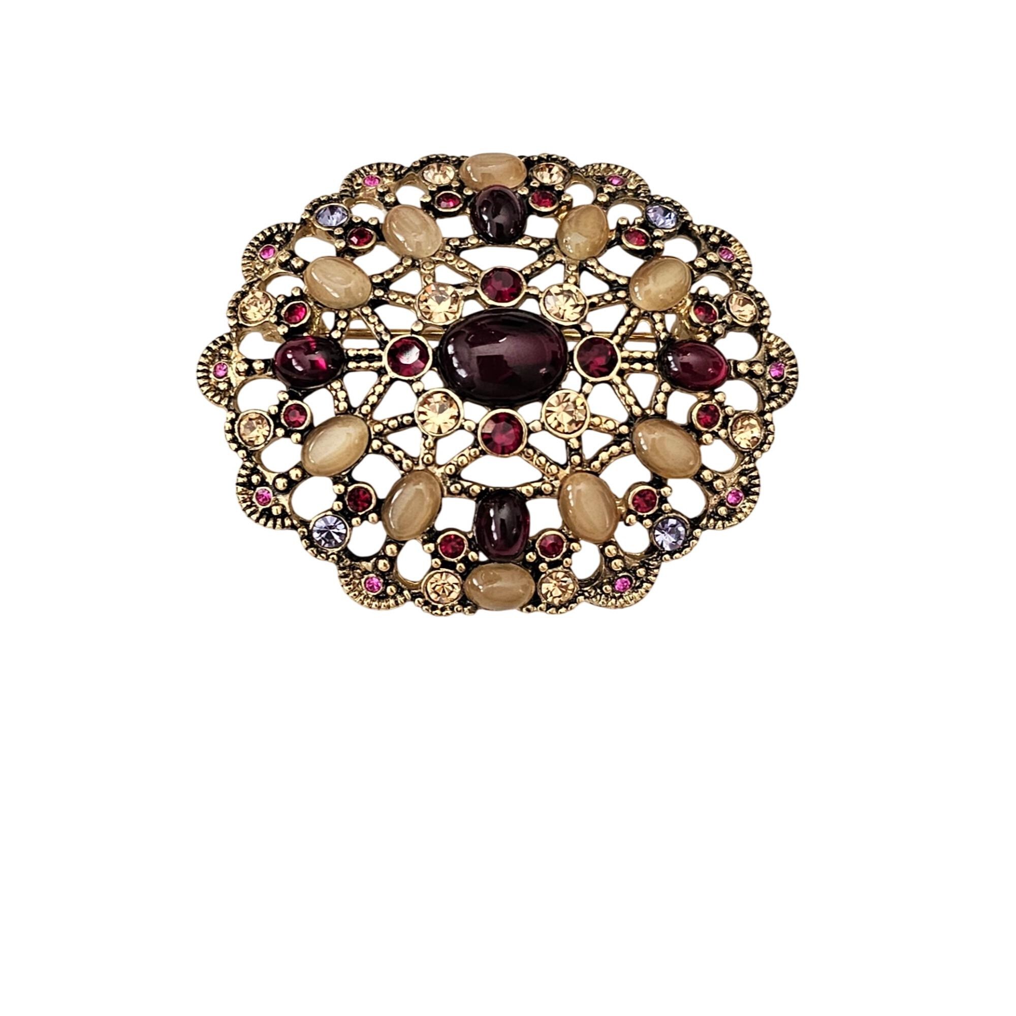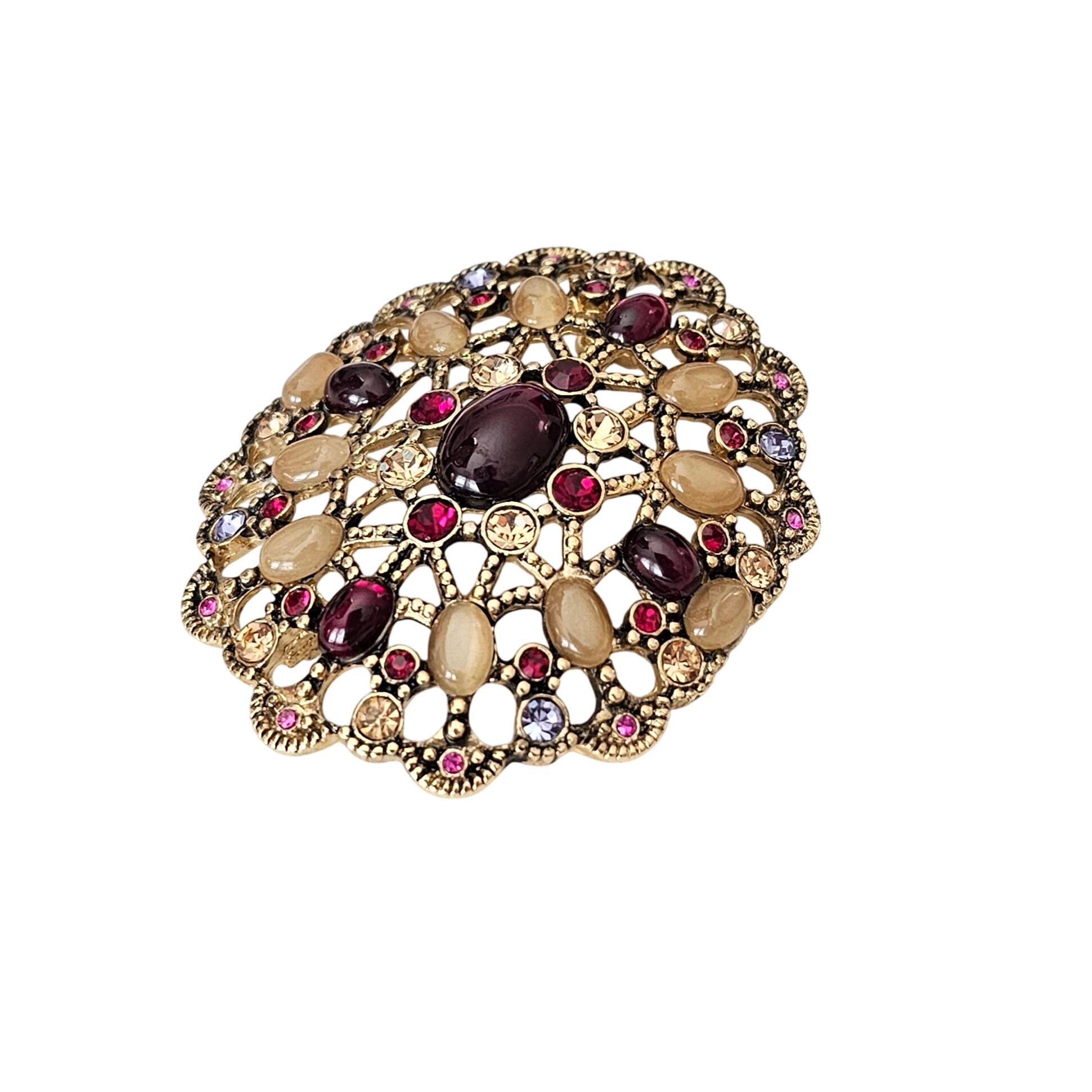 Lauren Conrad Oval Brooch Multi Color Lucite Glass Rhinestone Pin Signed J197