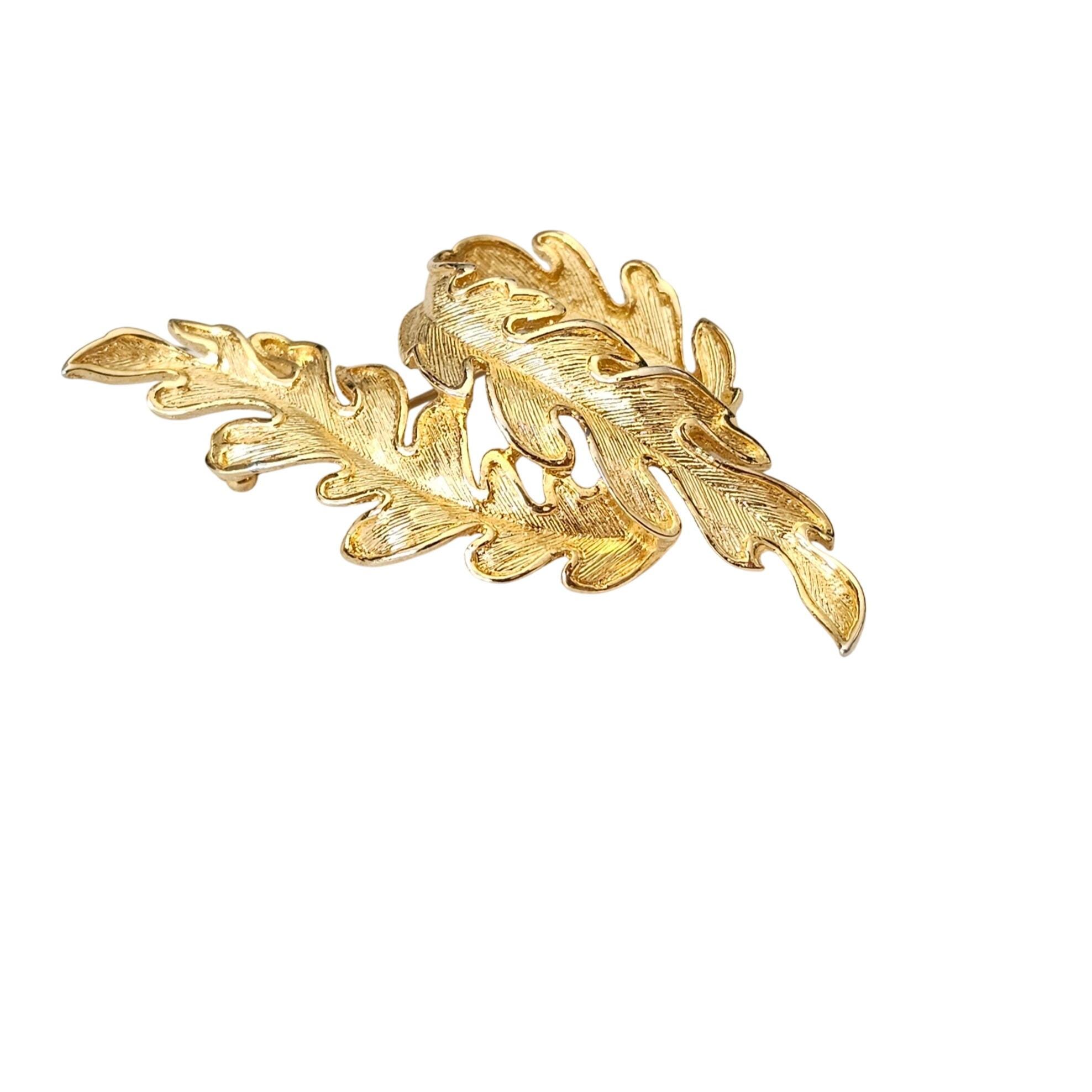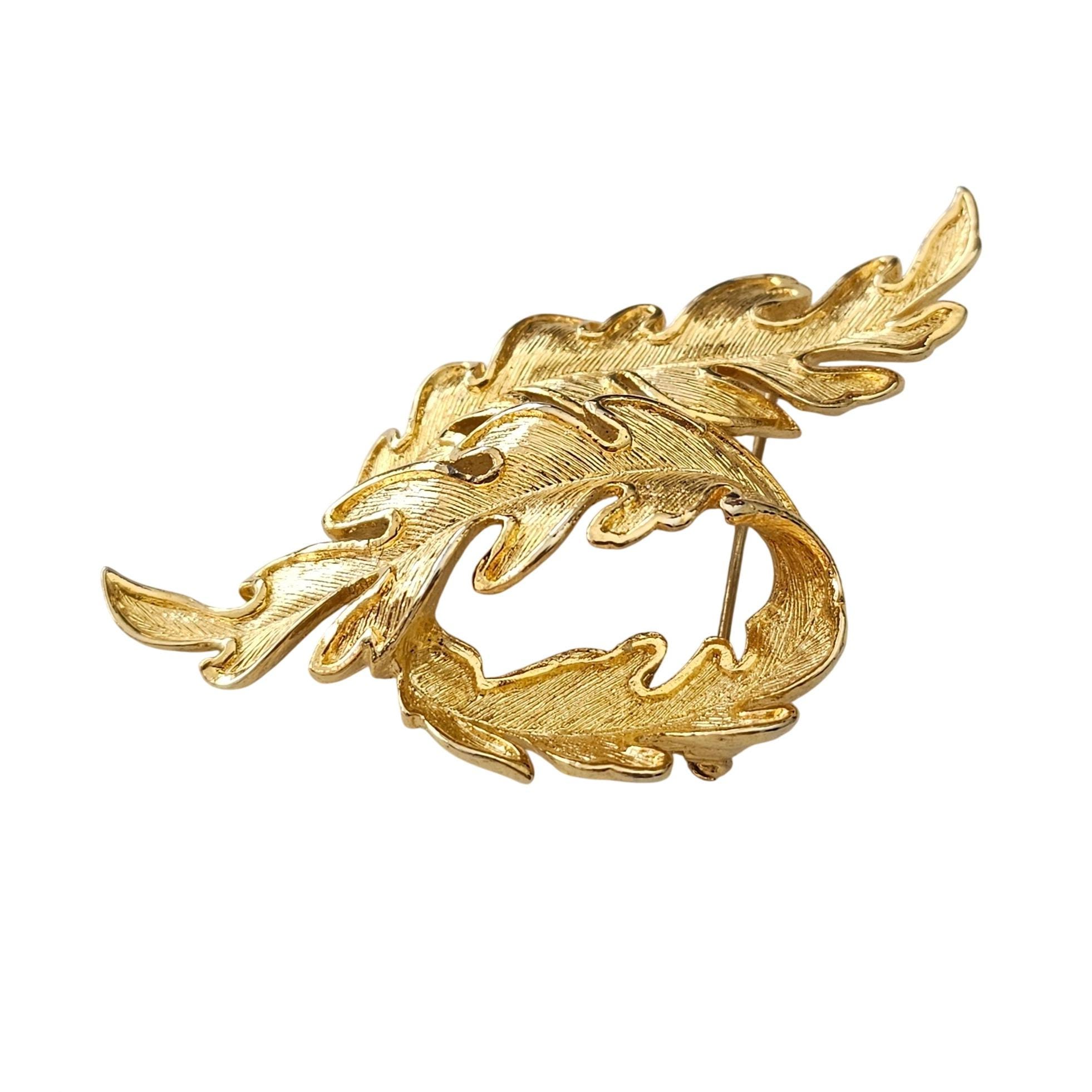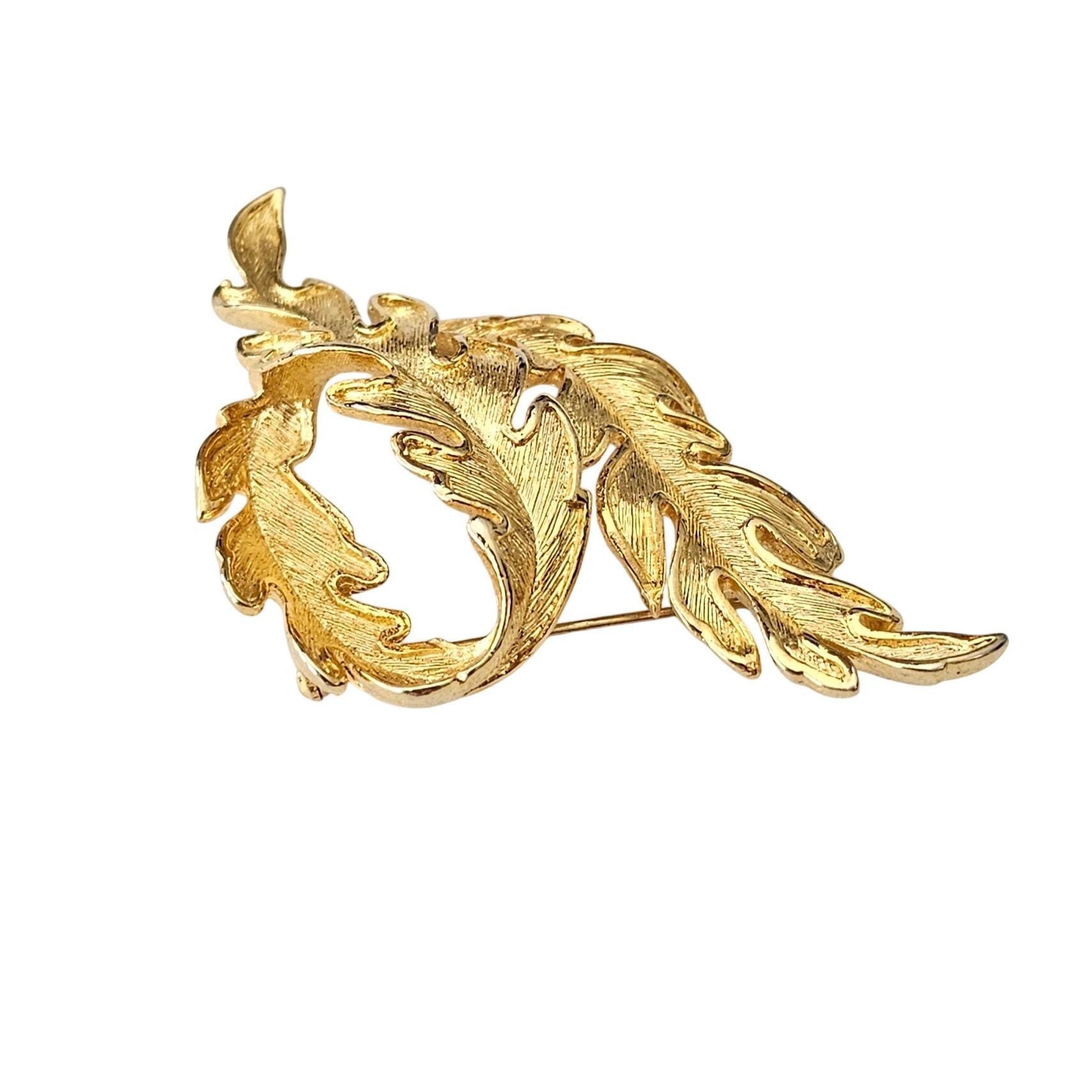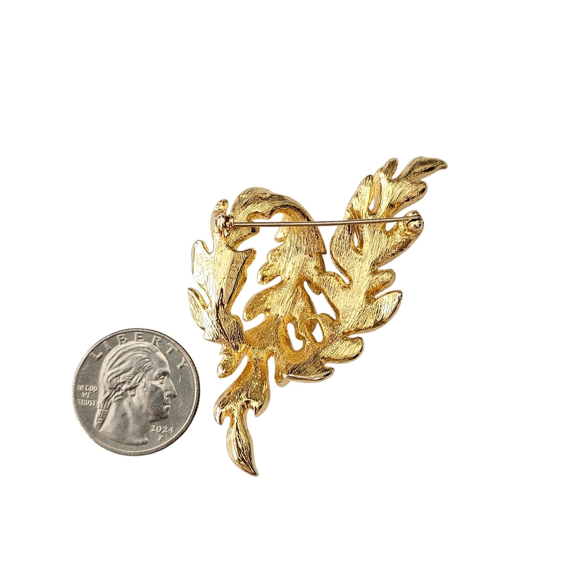 Liz Claiborne Gold Tone Leaf Dimensional Ribbon Brooch Gold Tone Wavy Textured Pin J198
