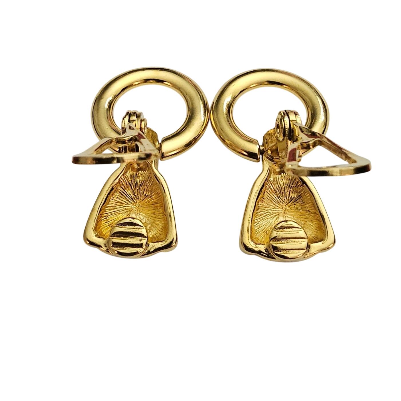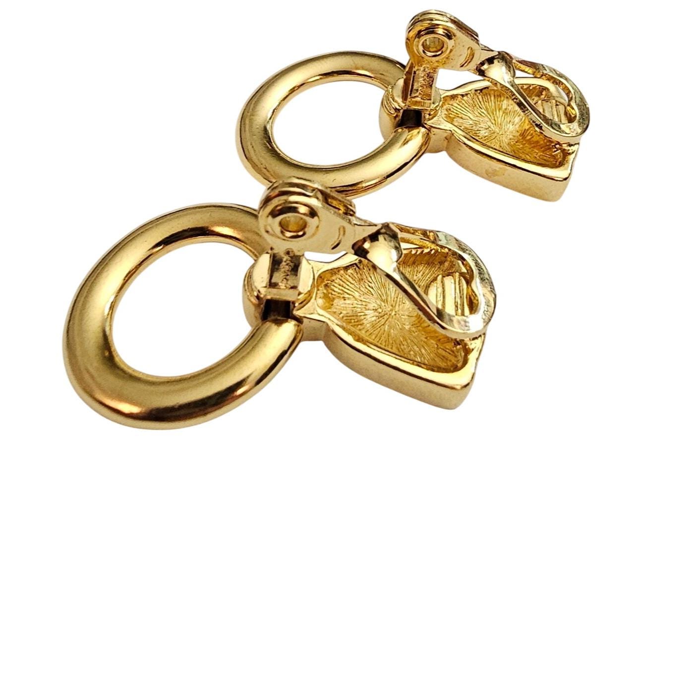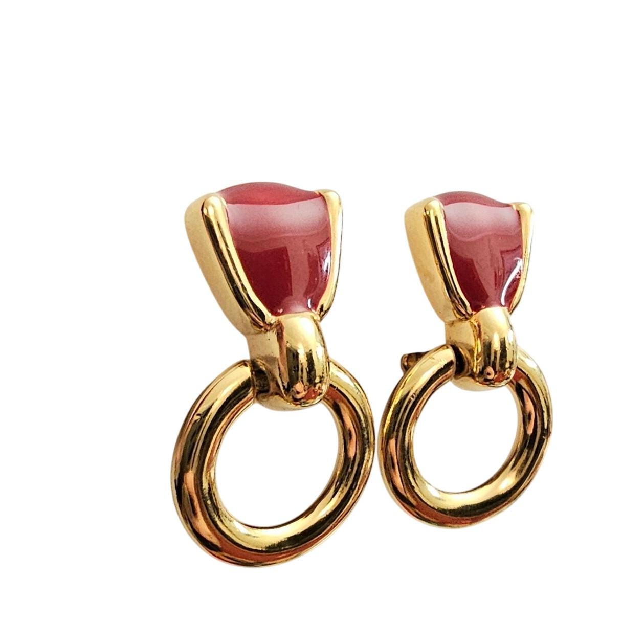 Monet Wine Enamel Door Knocker Clip On Maroon Gold Tone Earrings Signed, C941