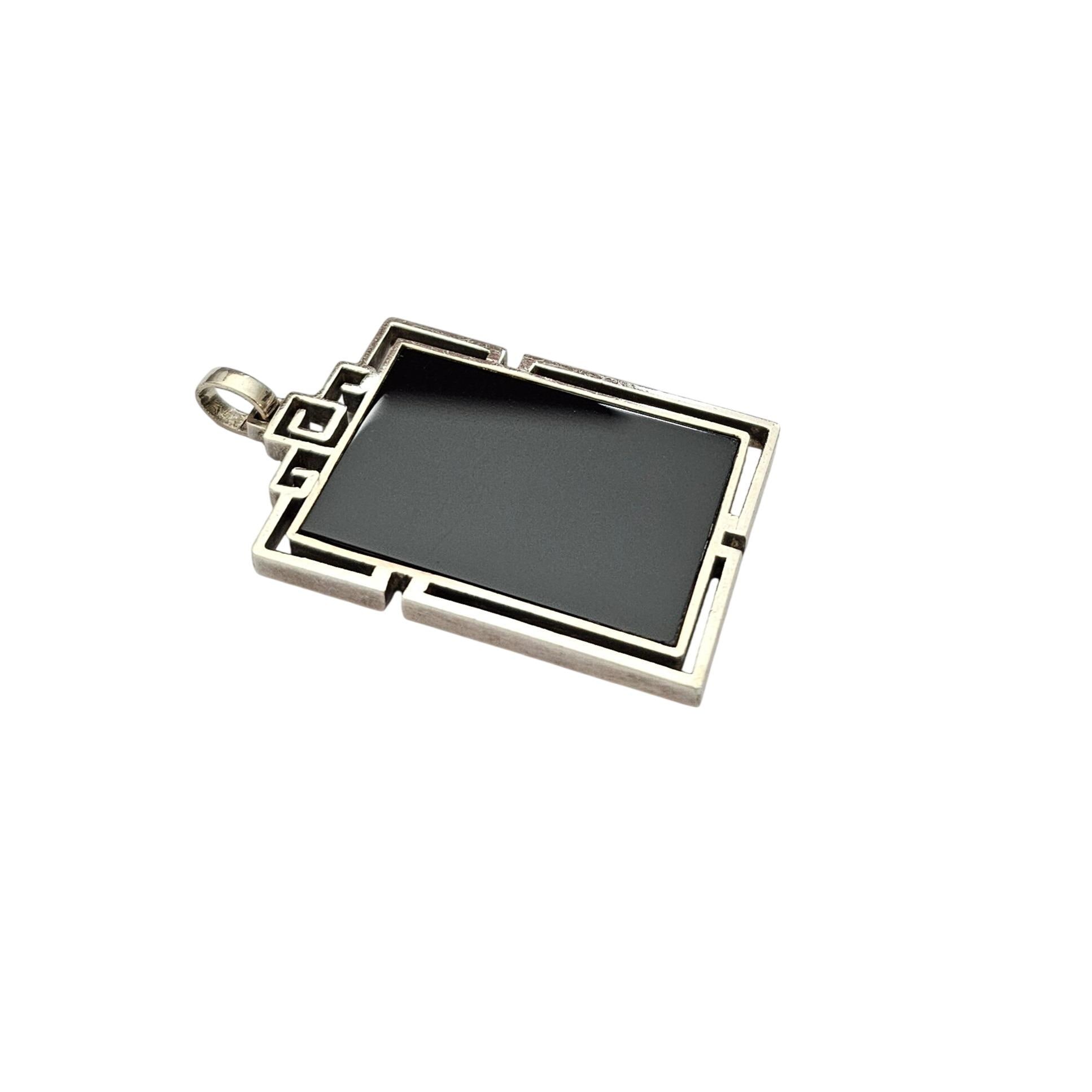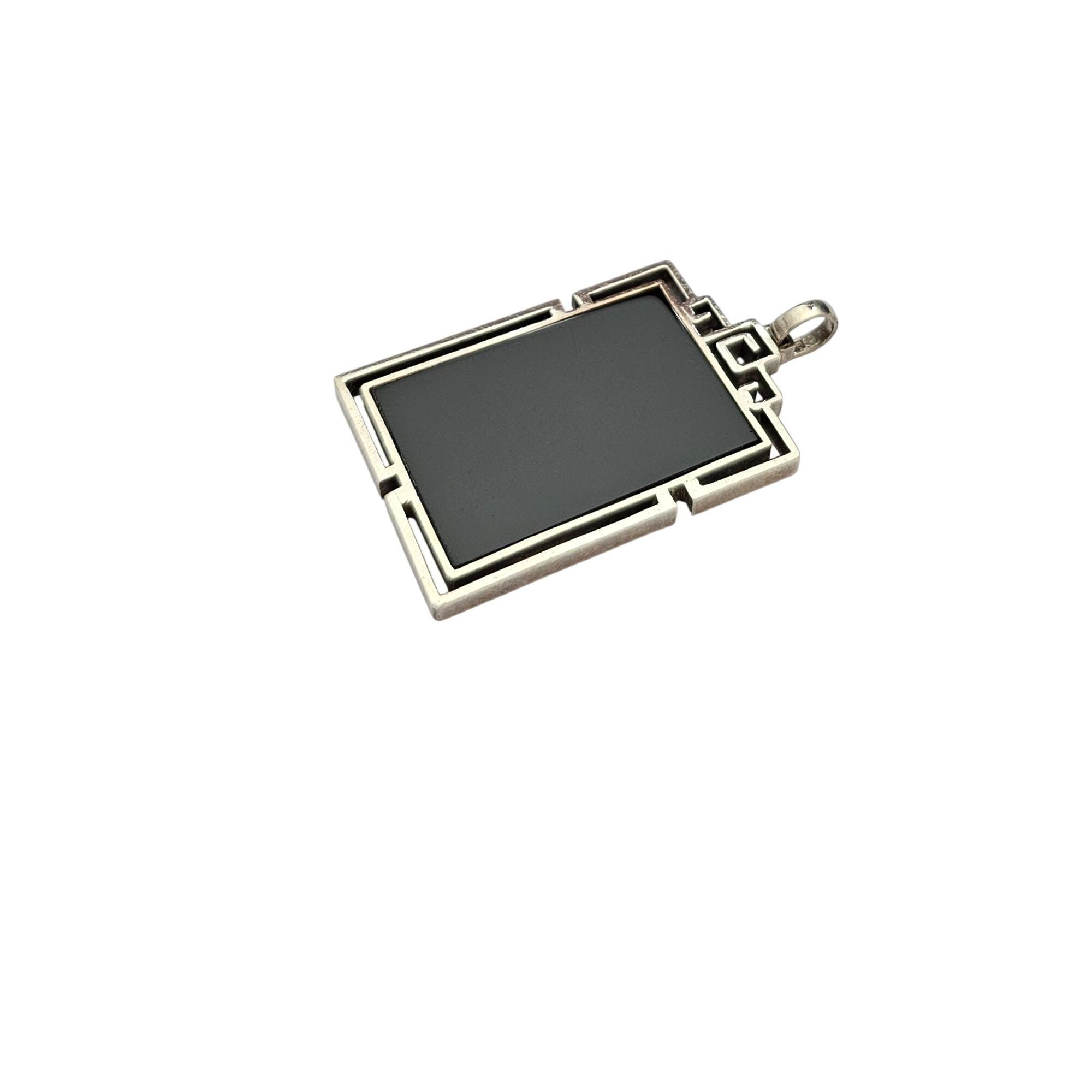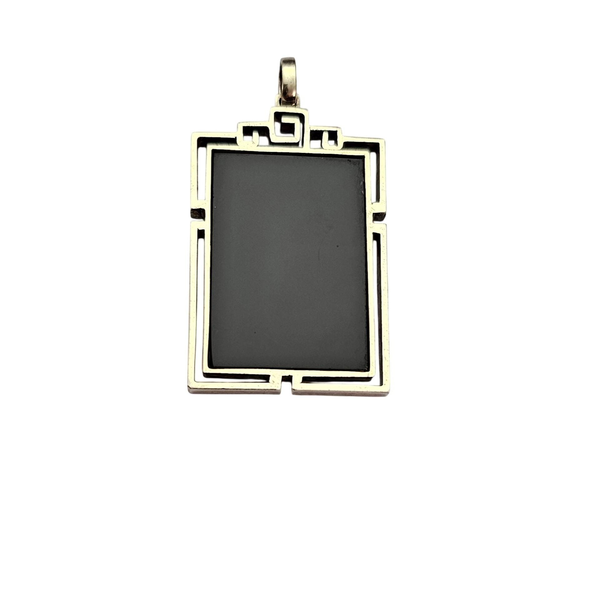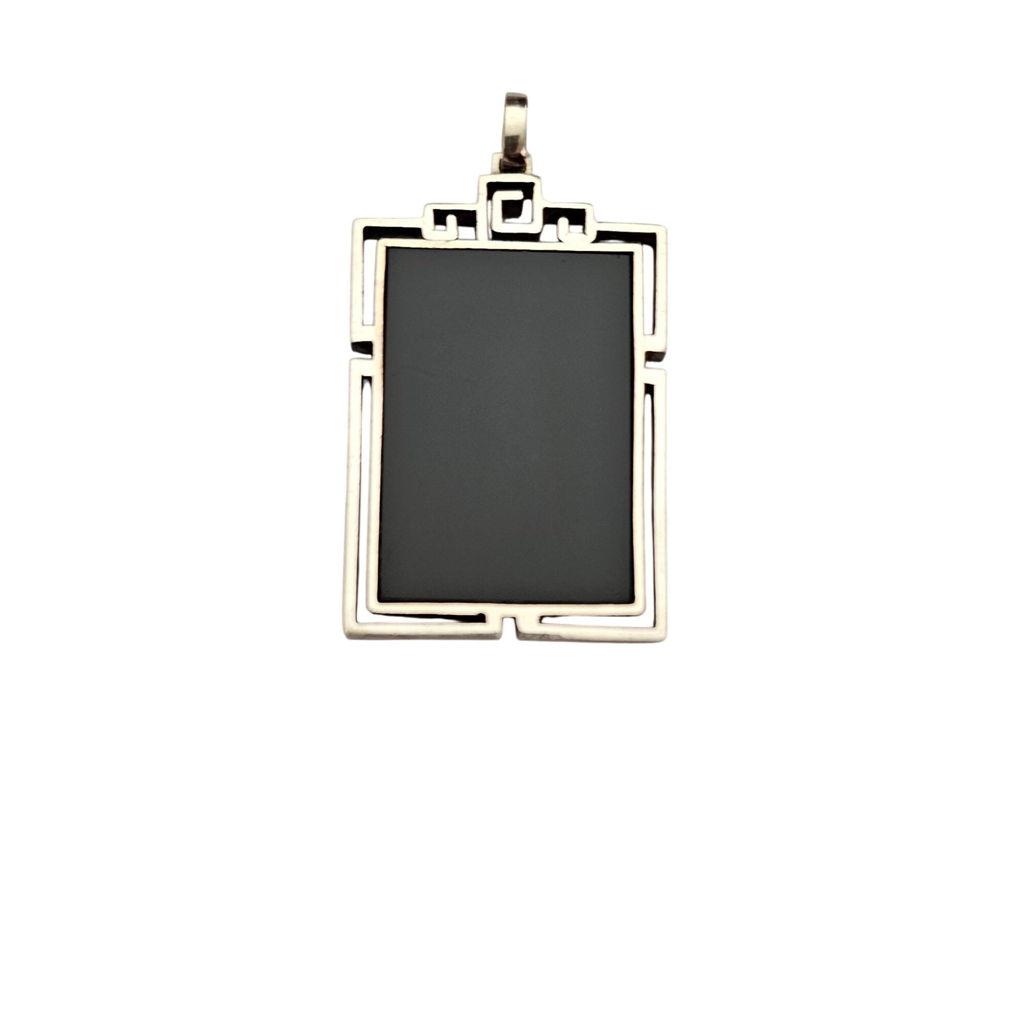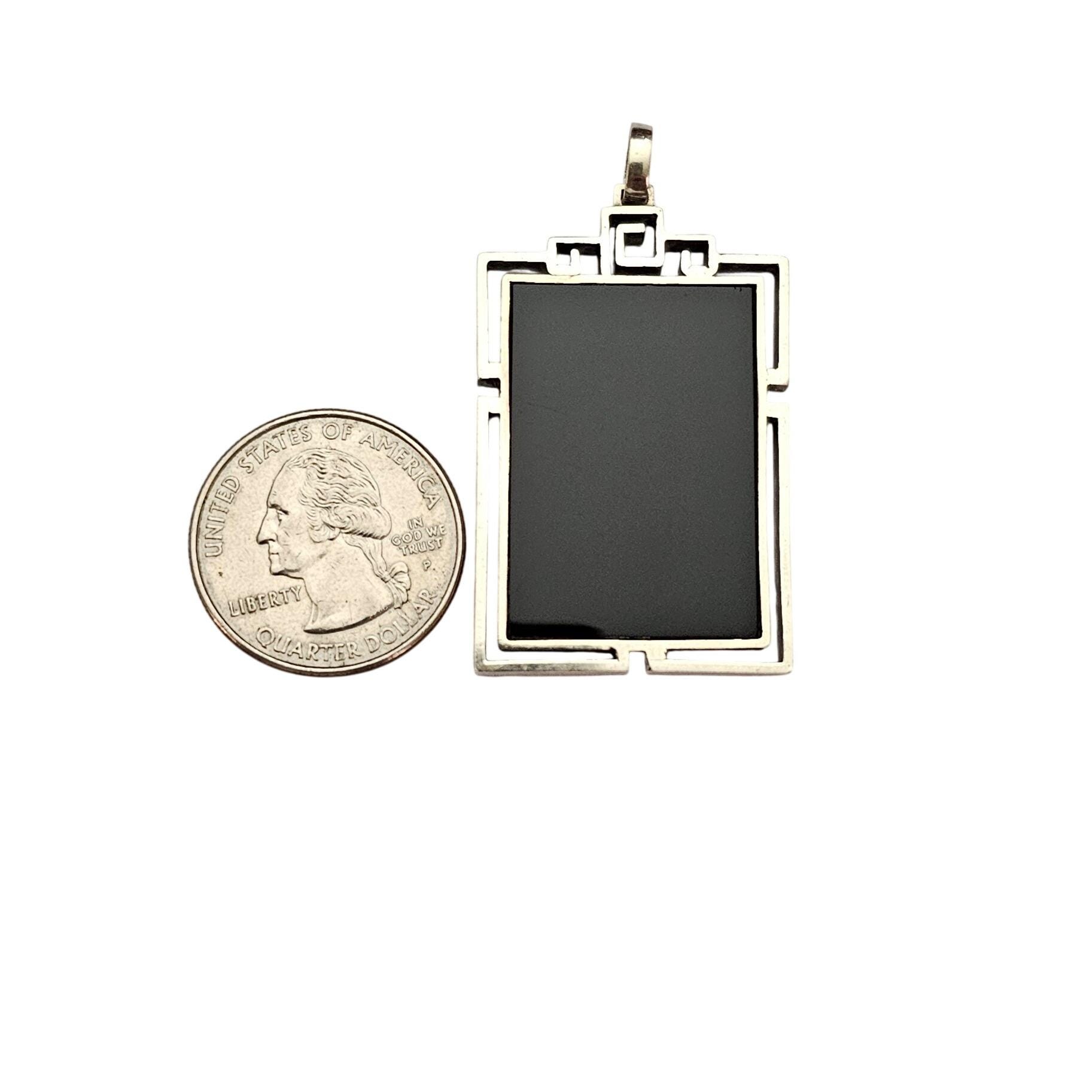 Sterling Silver Square Rectangle Caged Onyx Pendant C676