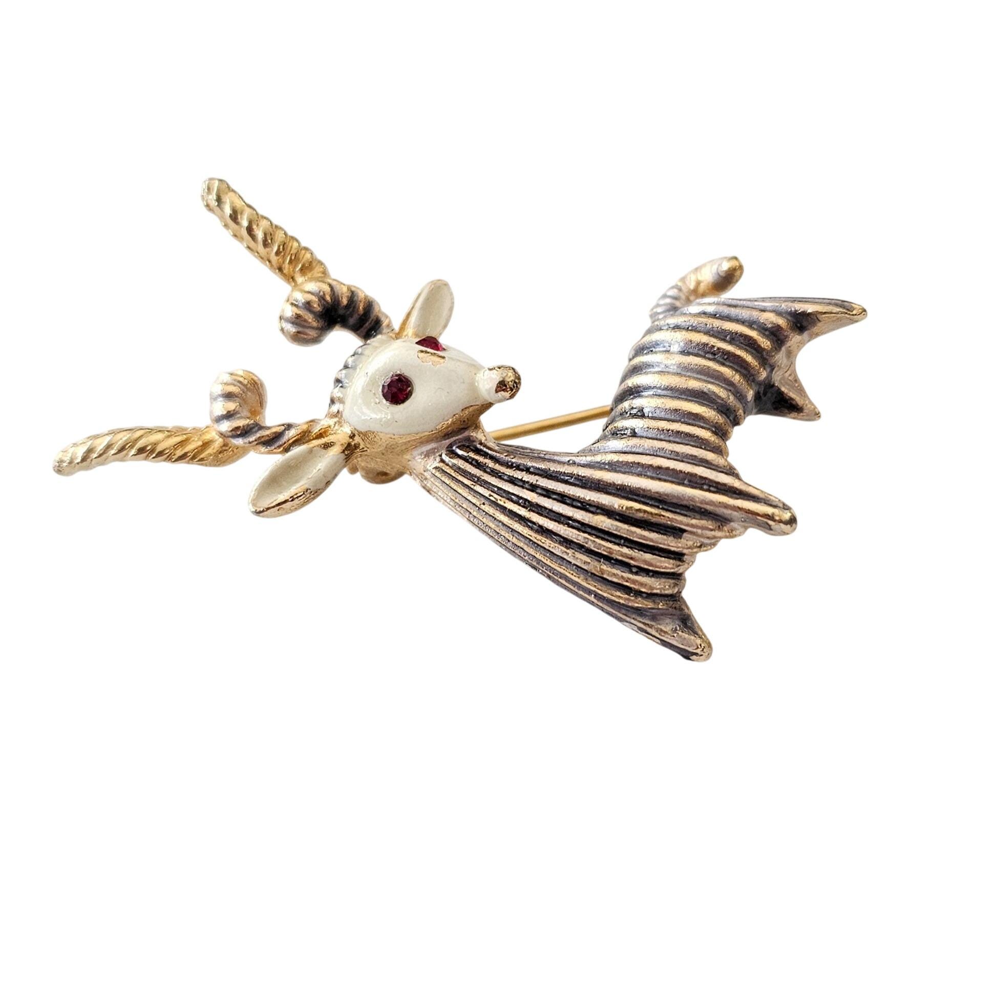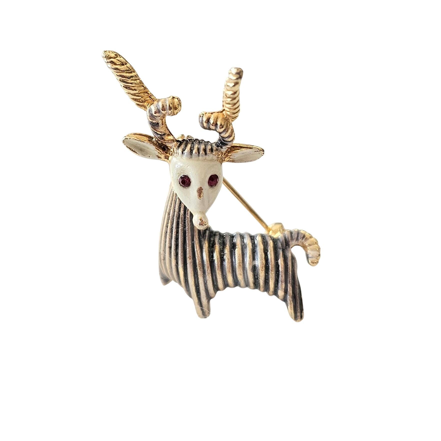 BSK Rare Goat Brooch, Horned Striped Pin Signed C950