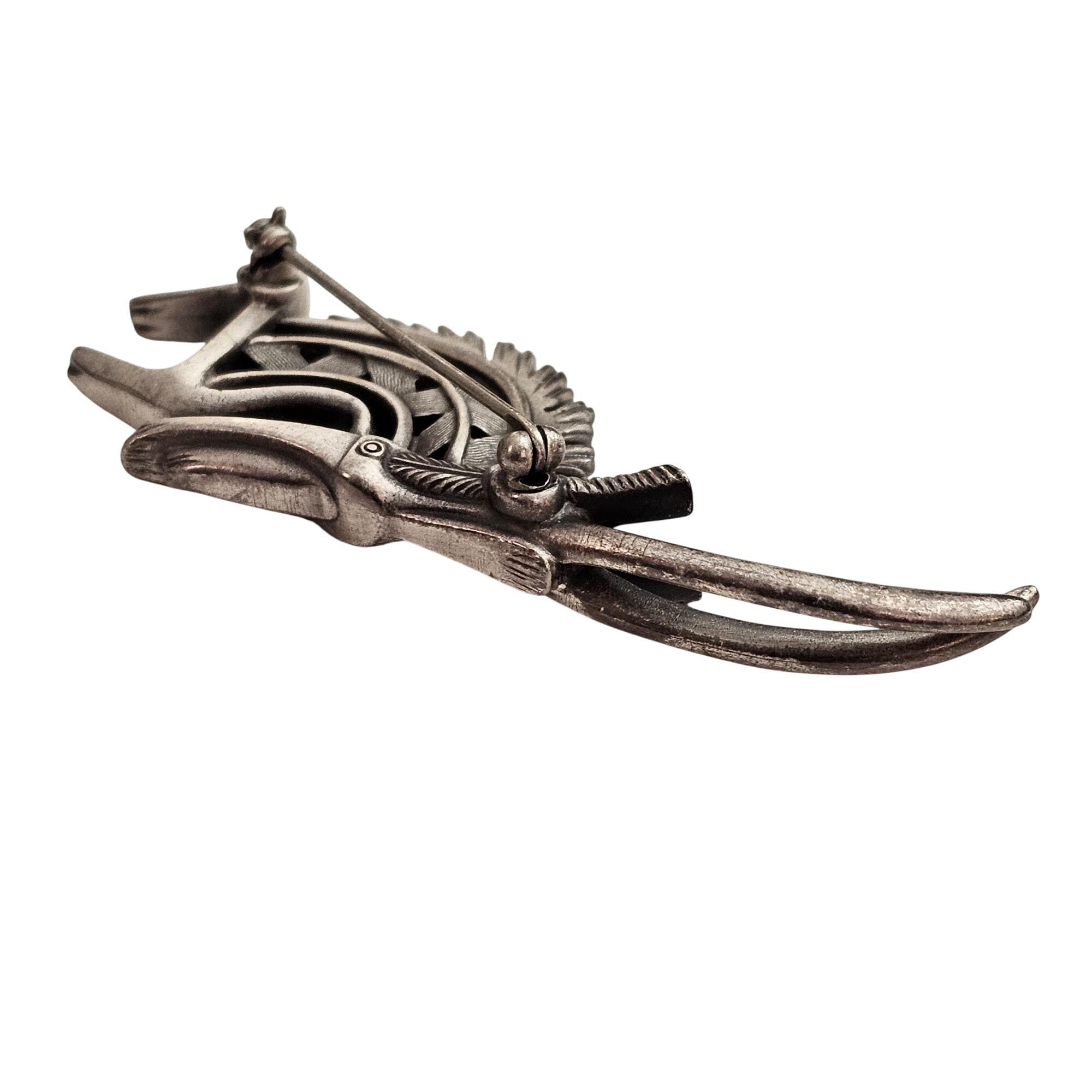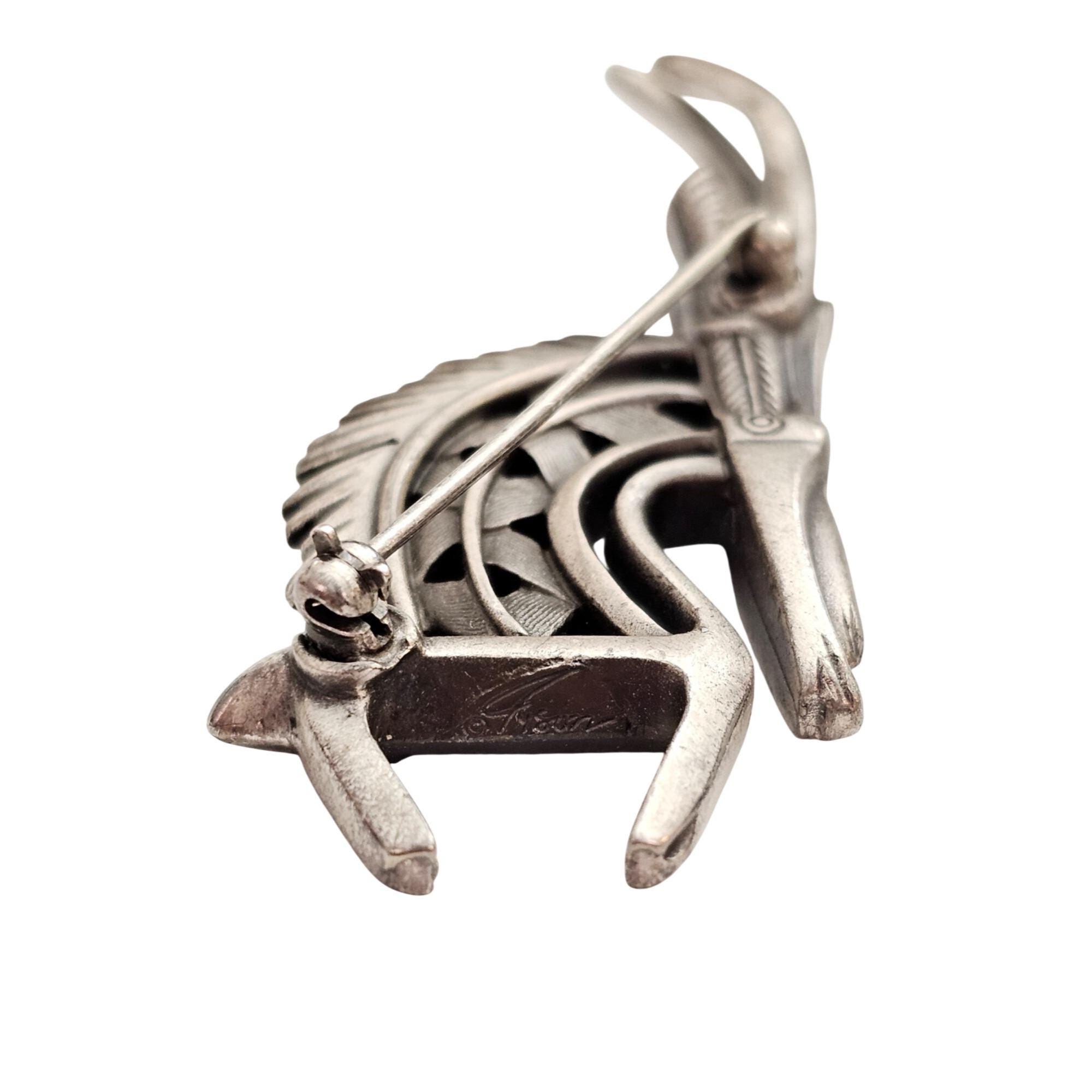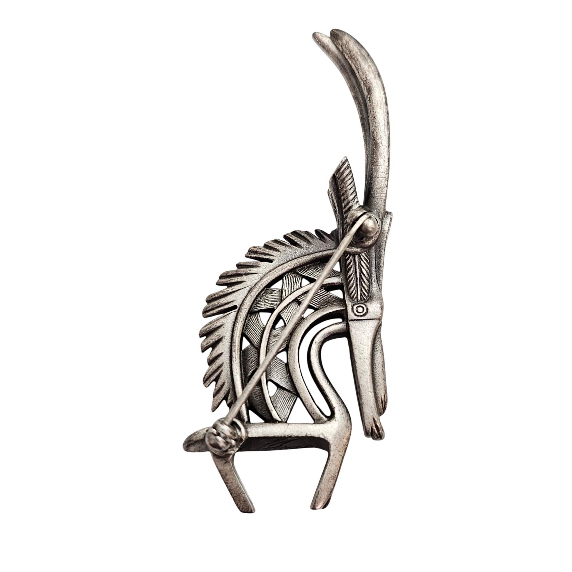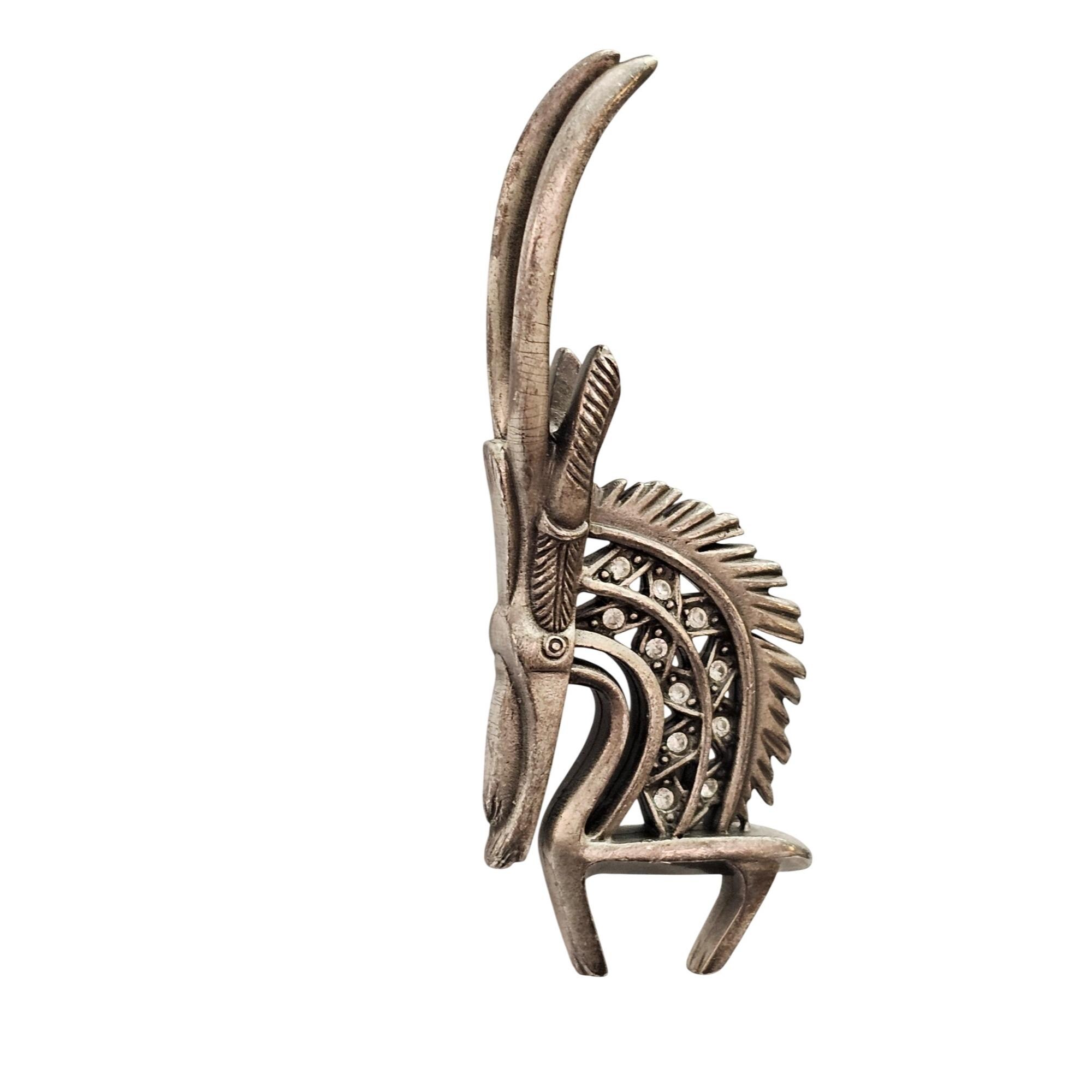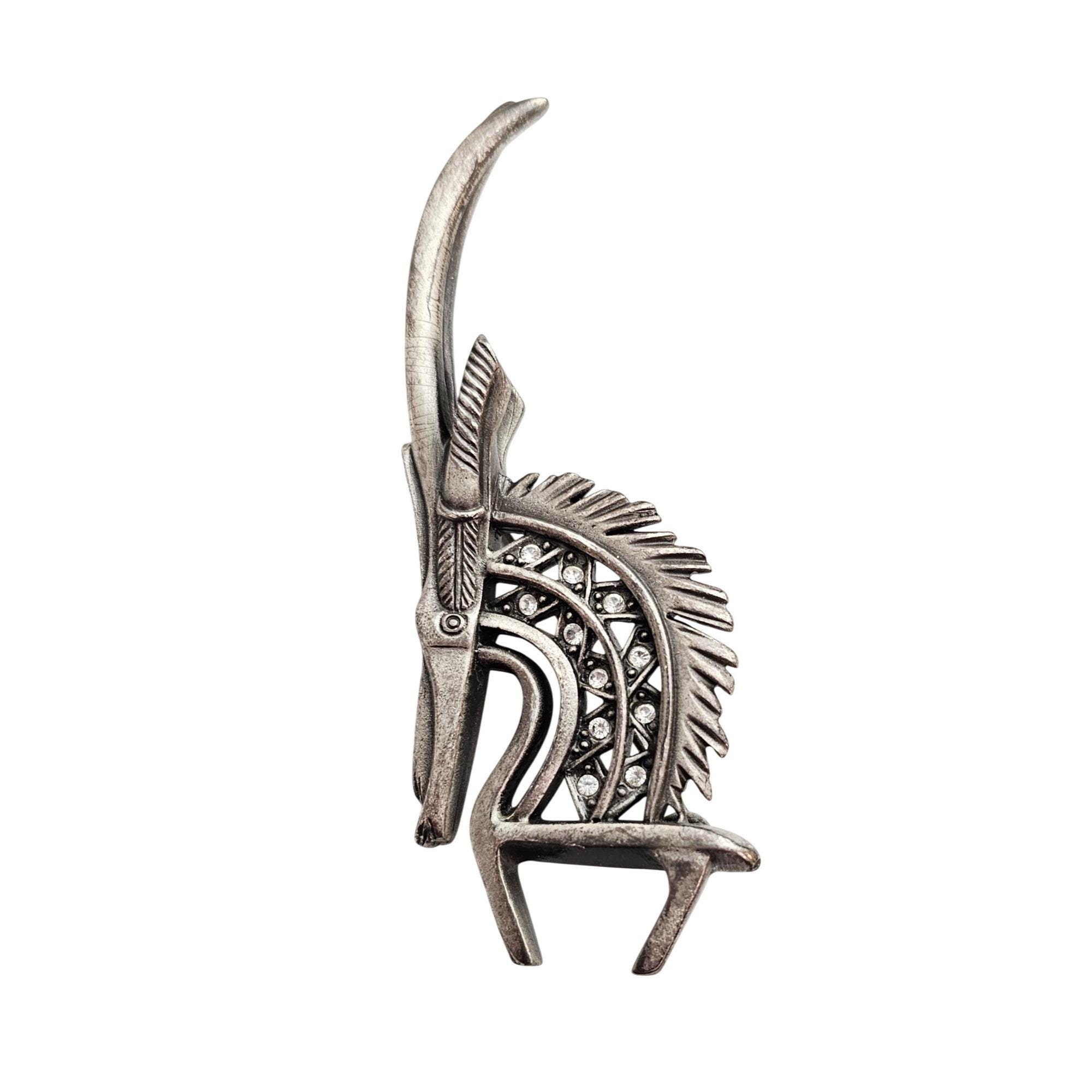 Cicely Tyson Gazelle Pewter Style Rhinestone Brooch Tribal Pin Signed C982
