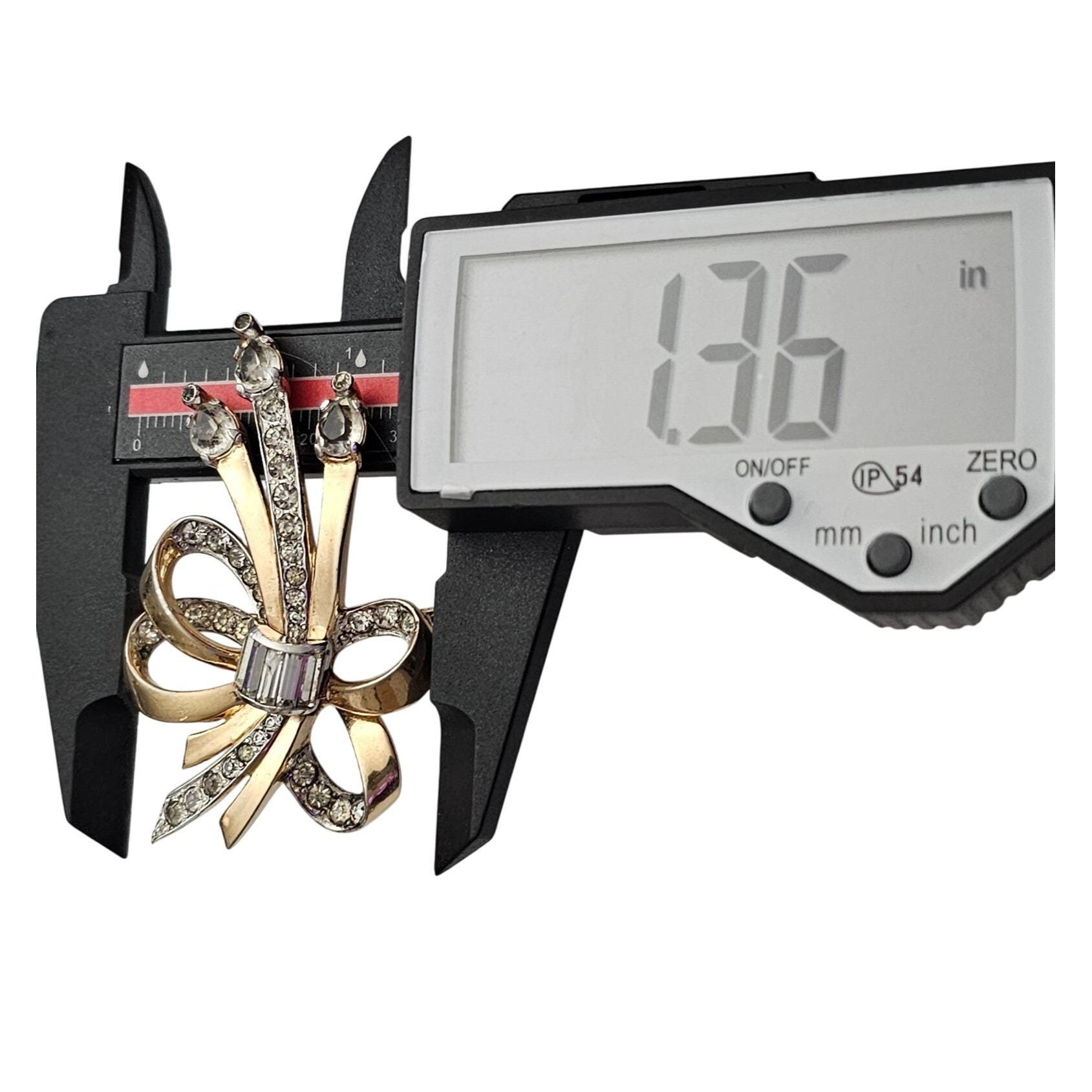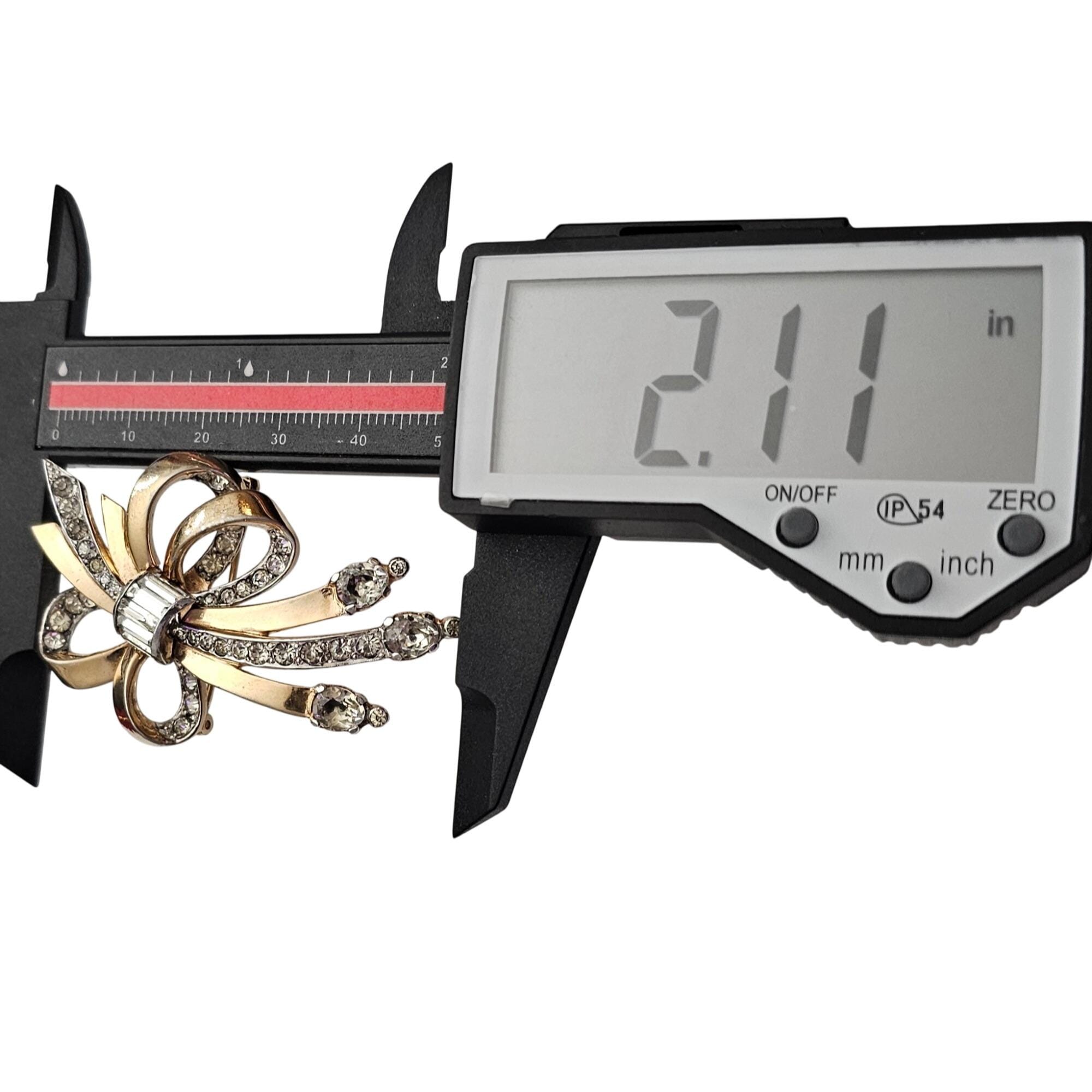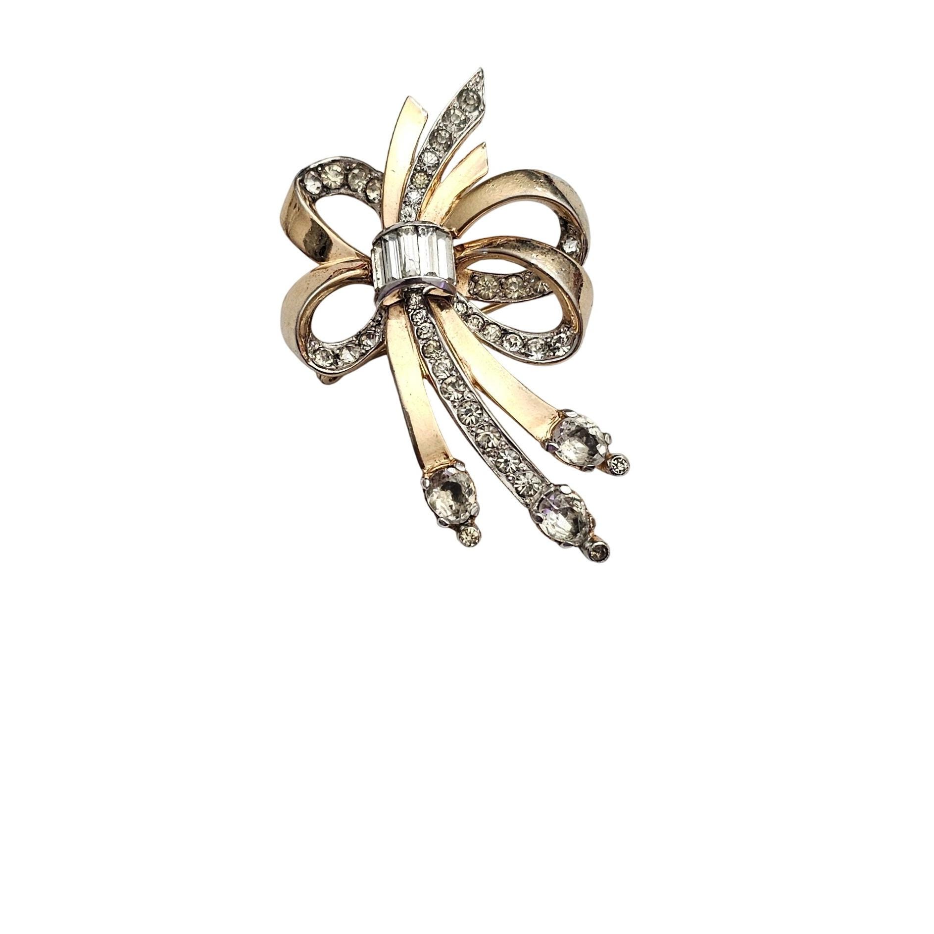 Gold Tone Rhinestone Bow Brooch Screw Construction H Vintage Designer Pin C963