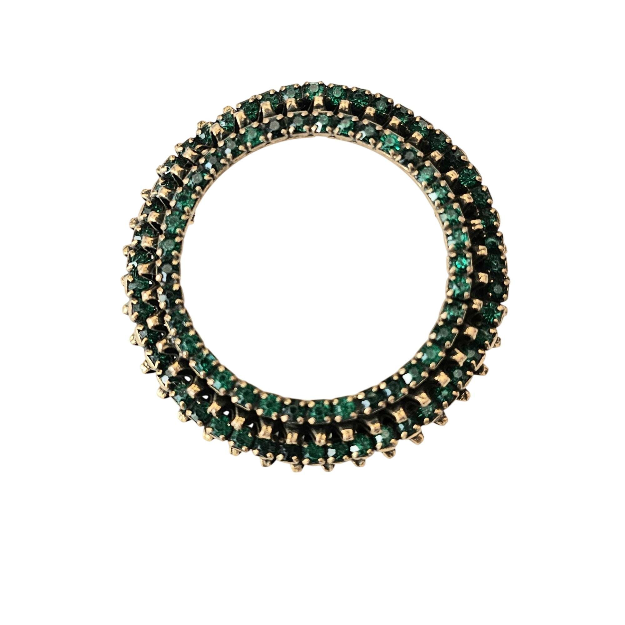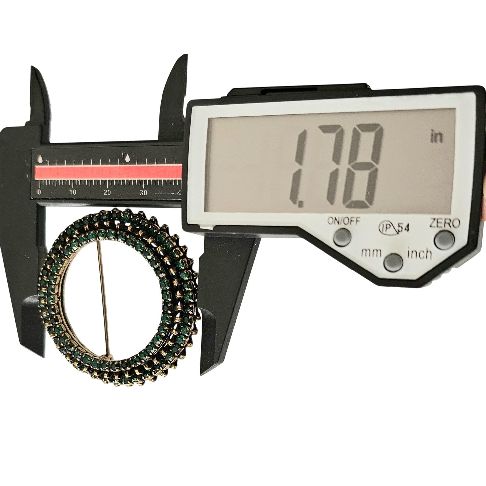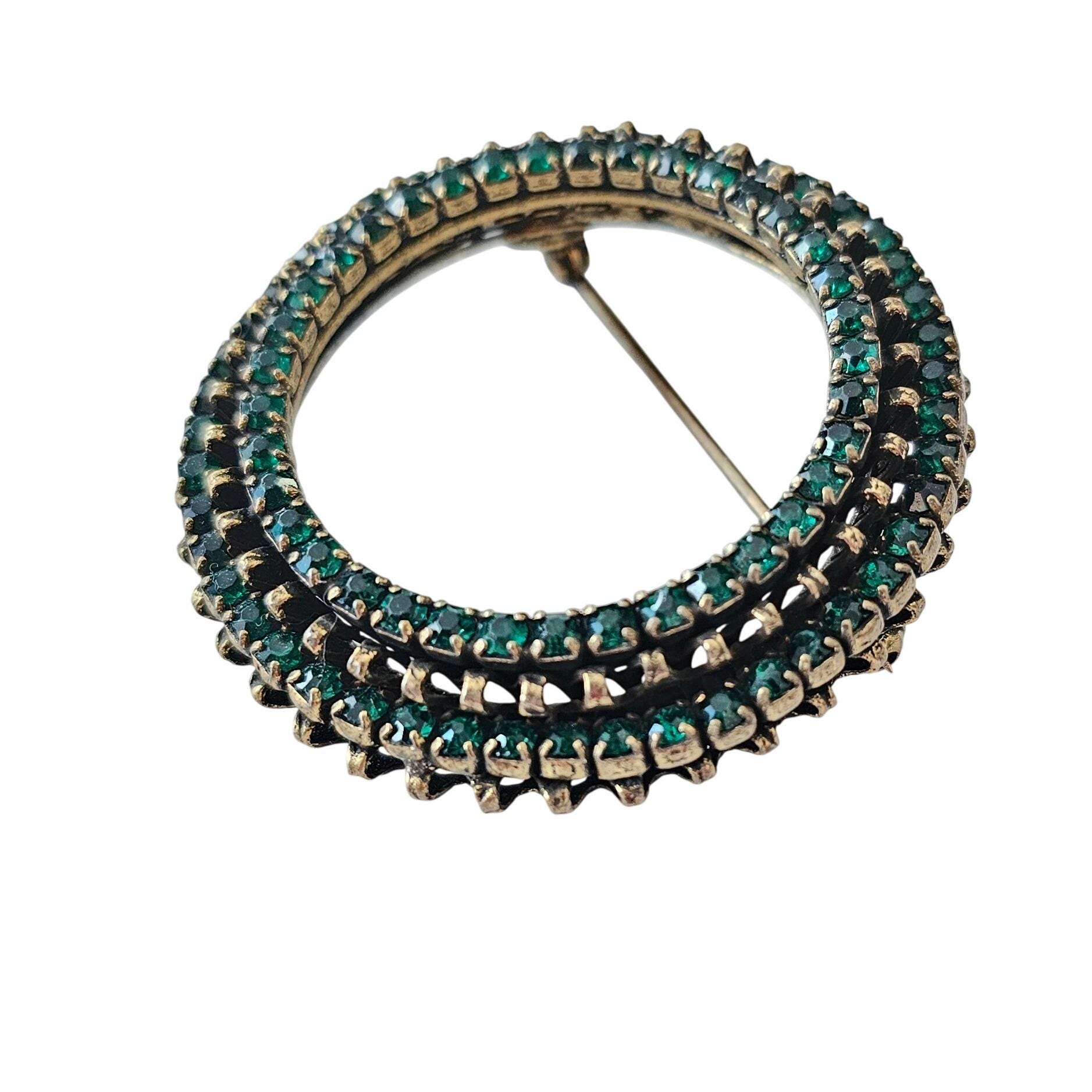 Green Rhinestone Gold Tone Open Tiered Brooch Filigree Style Pin C947
