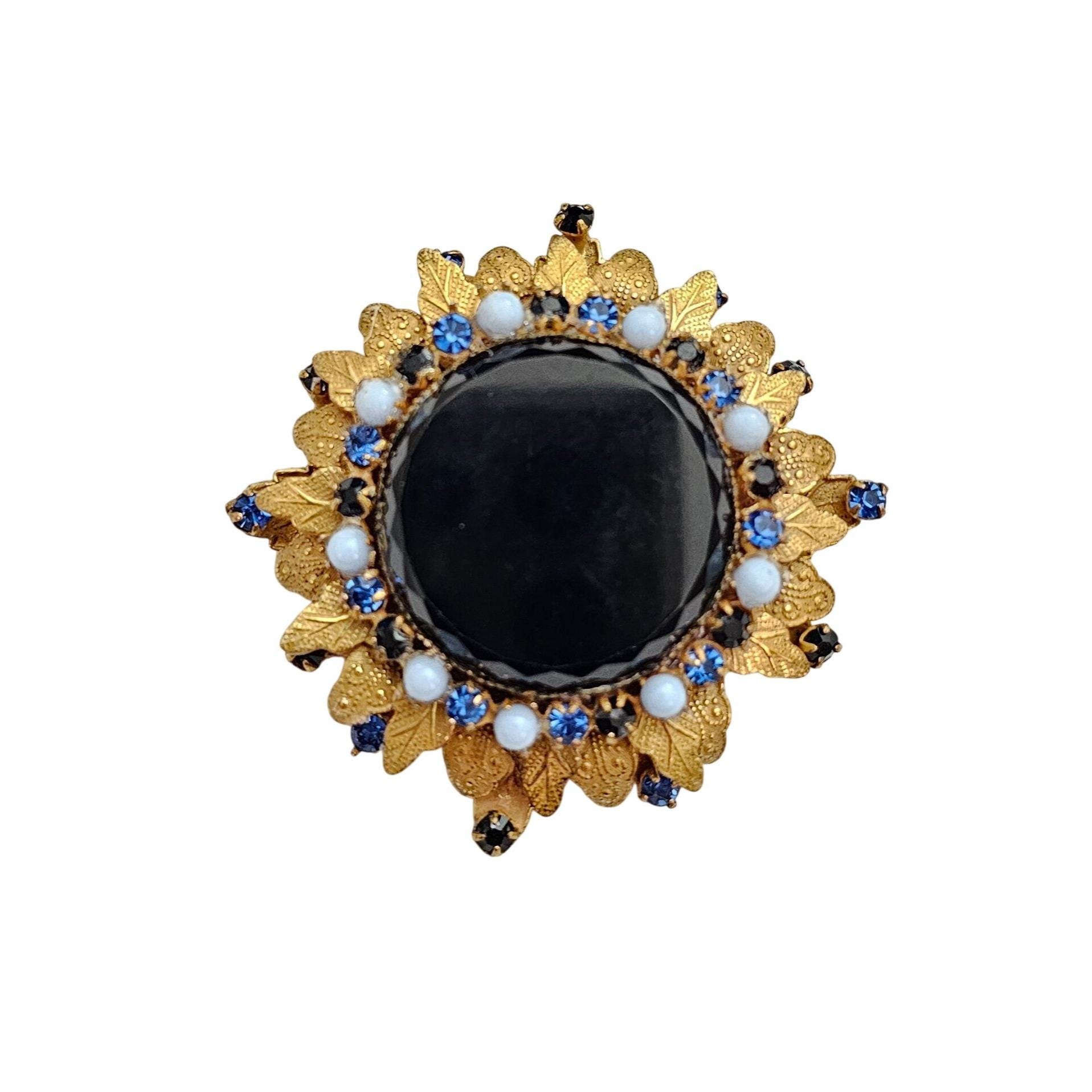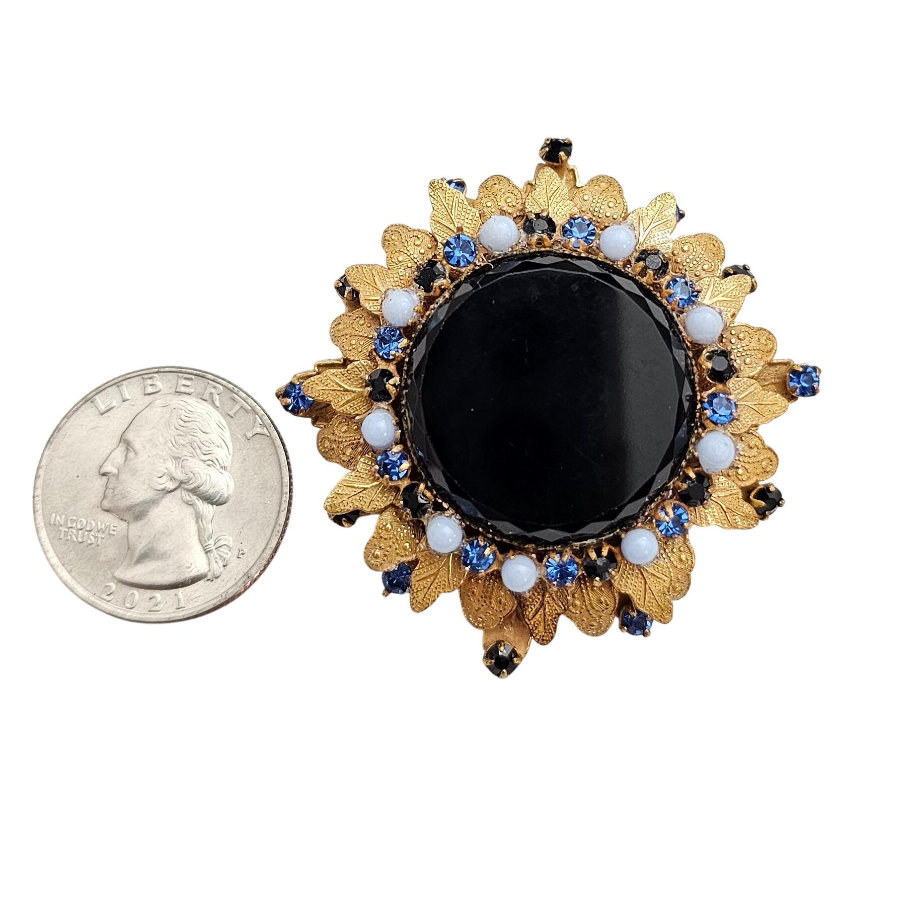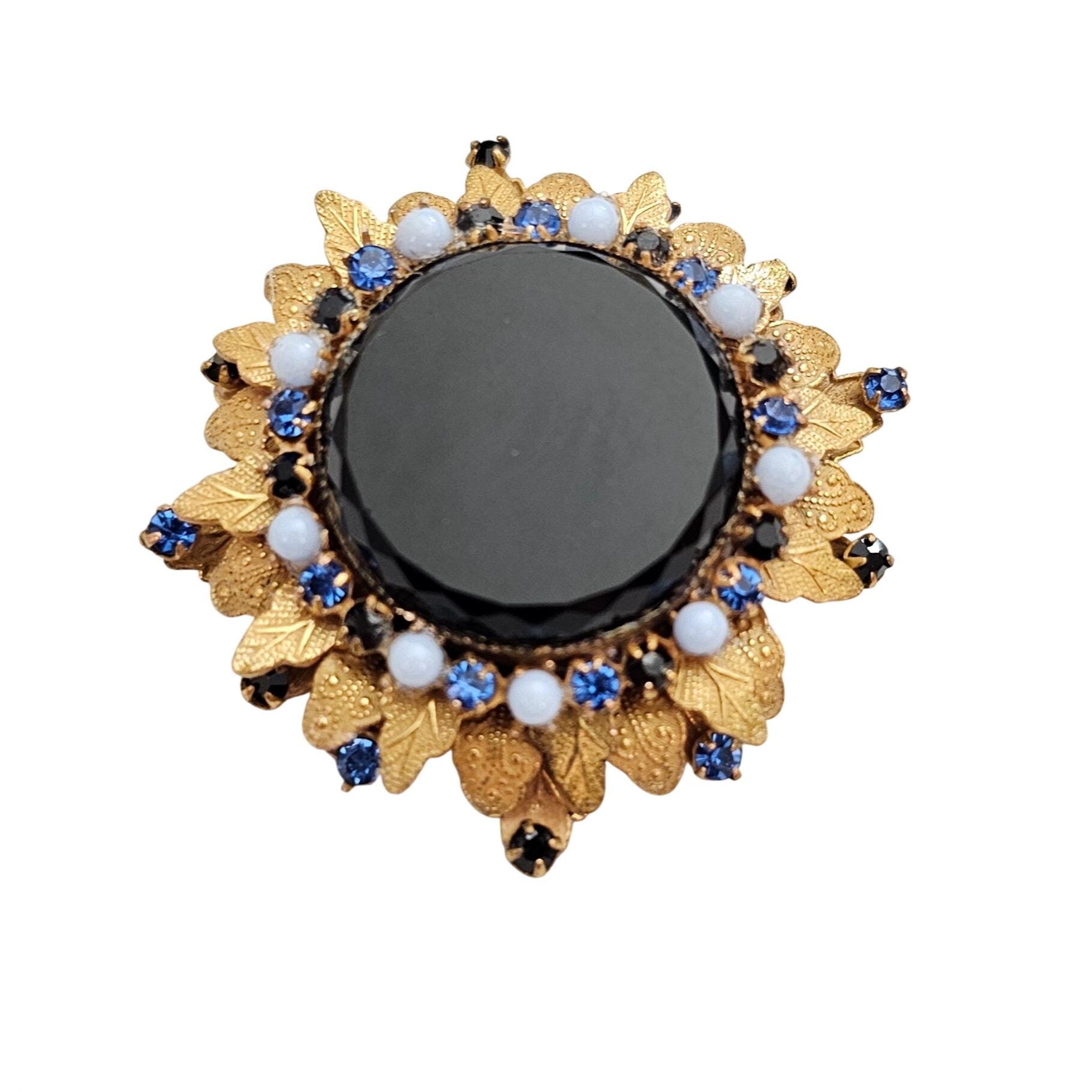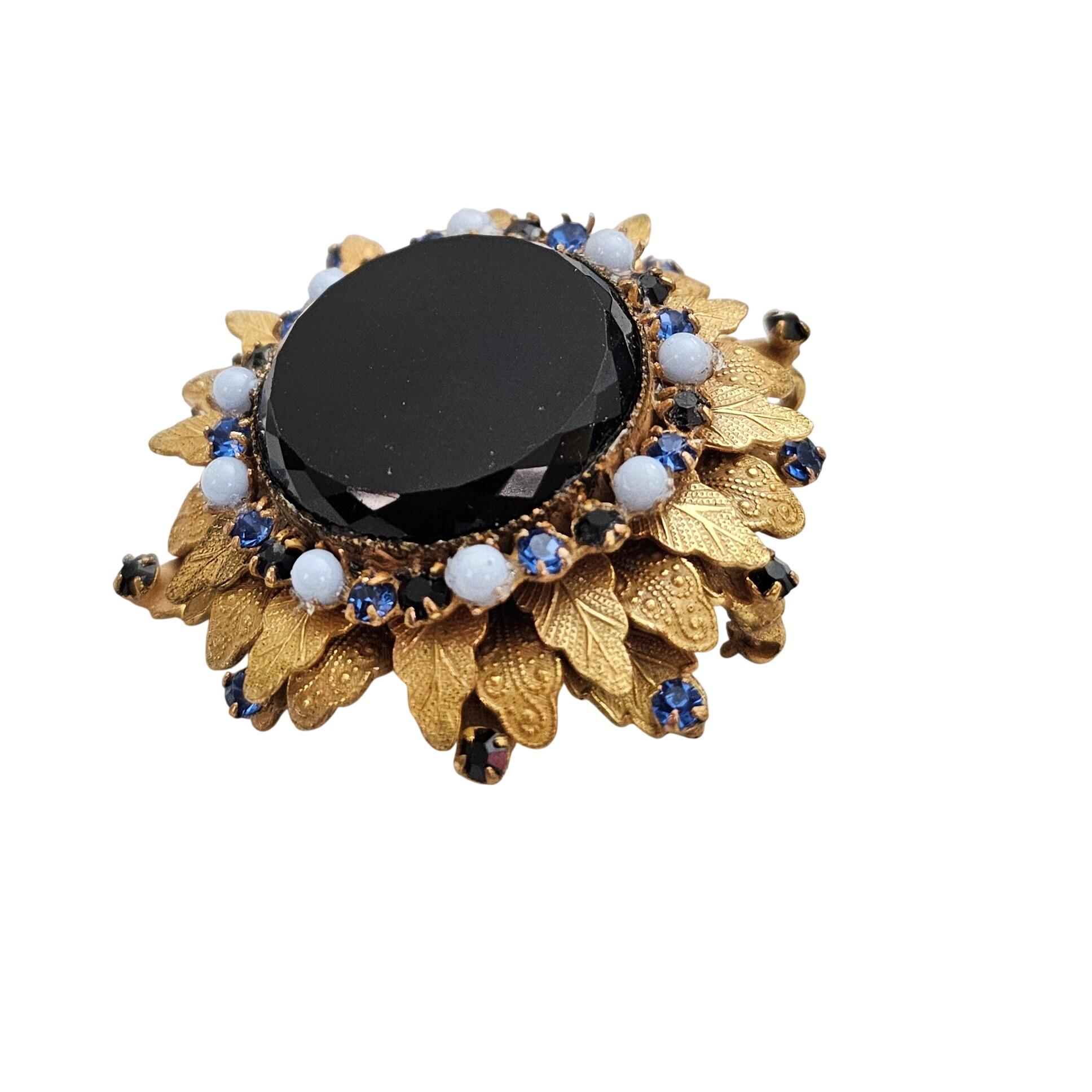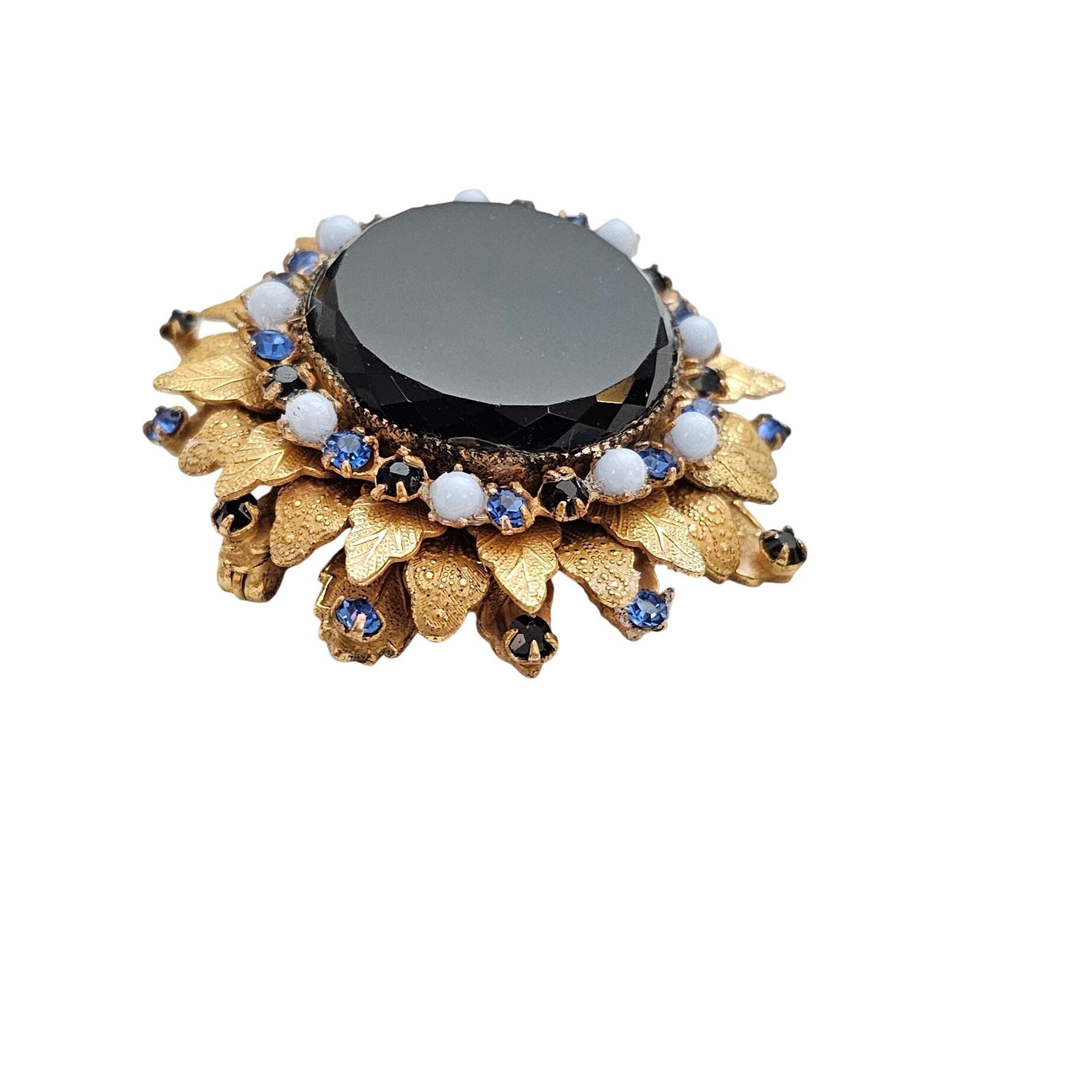 Original By Robert Blue Black Rhinestone Brooch Laurel Leaf Layer Cluster Pin Pendant Signed C972
