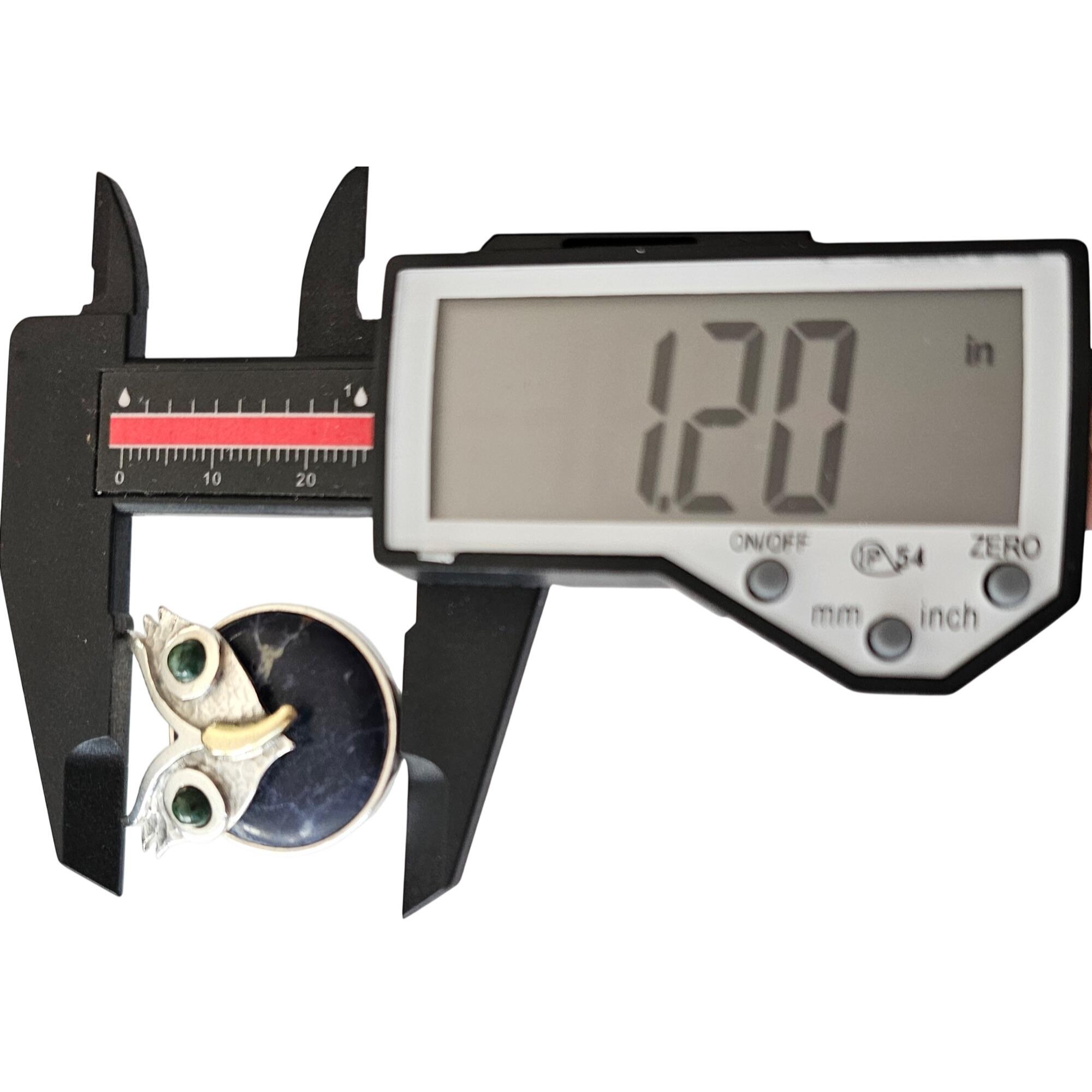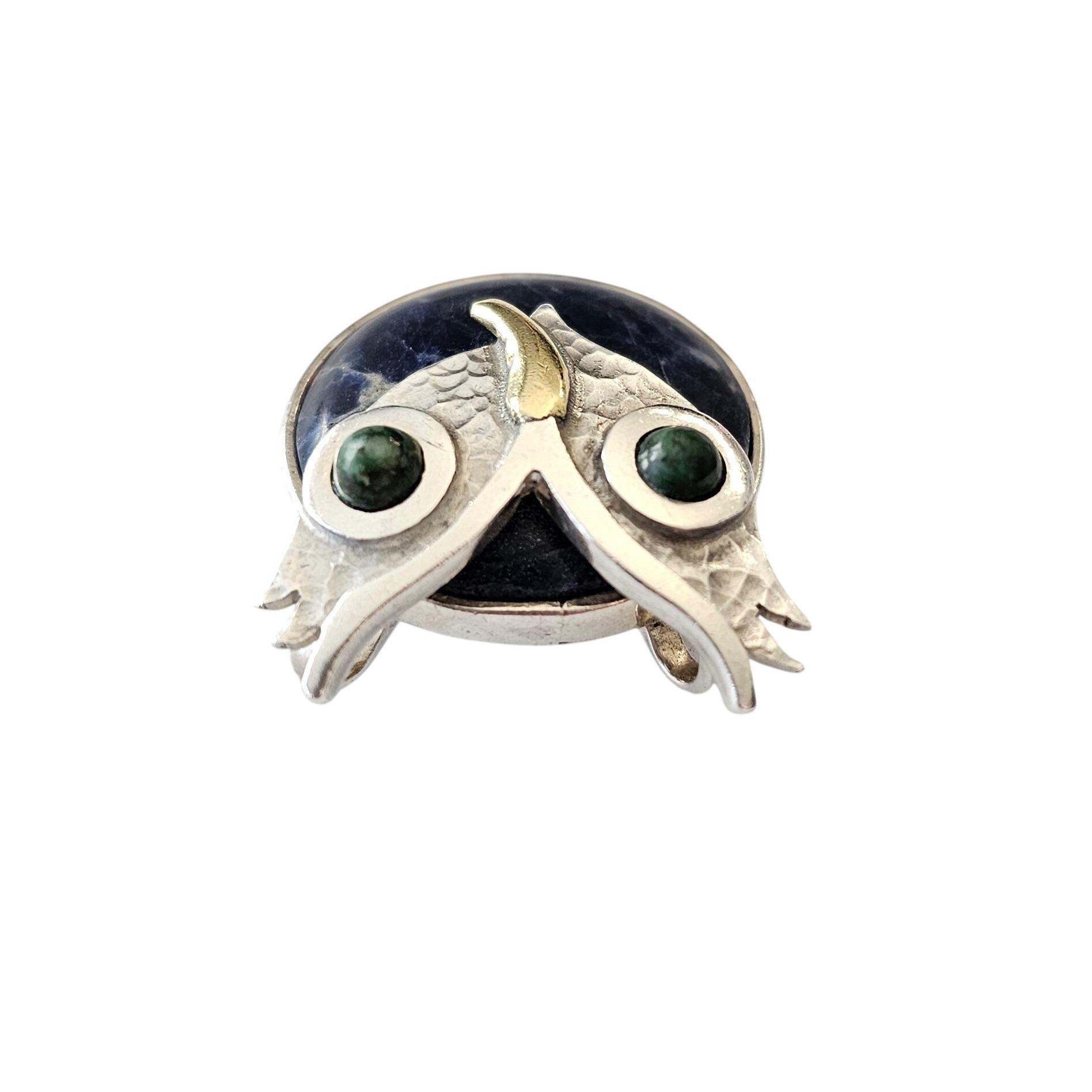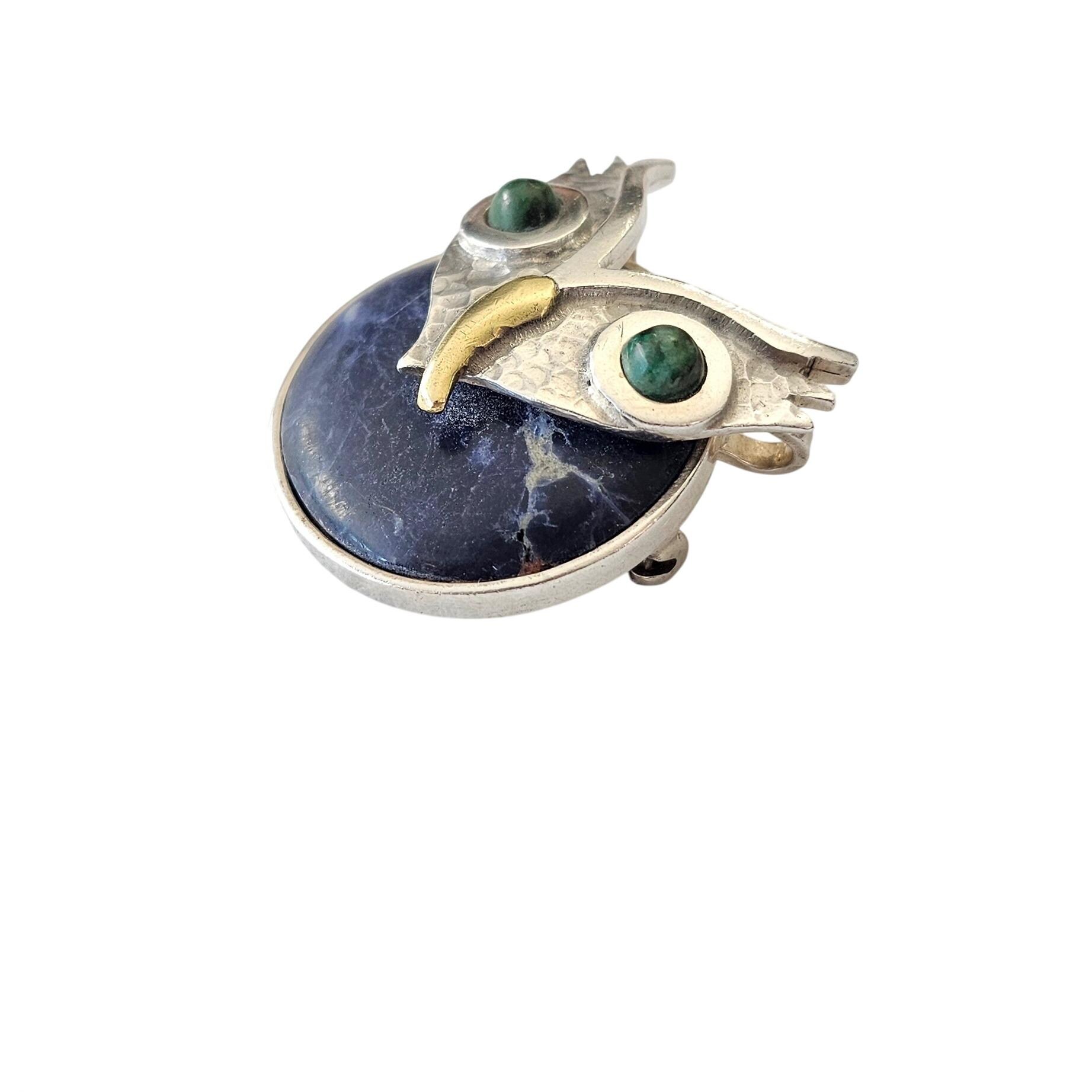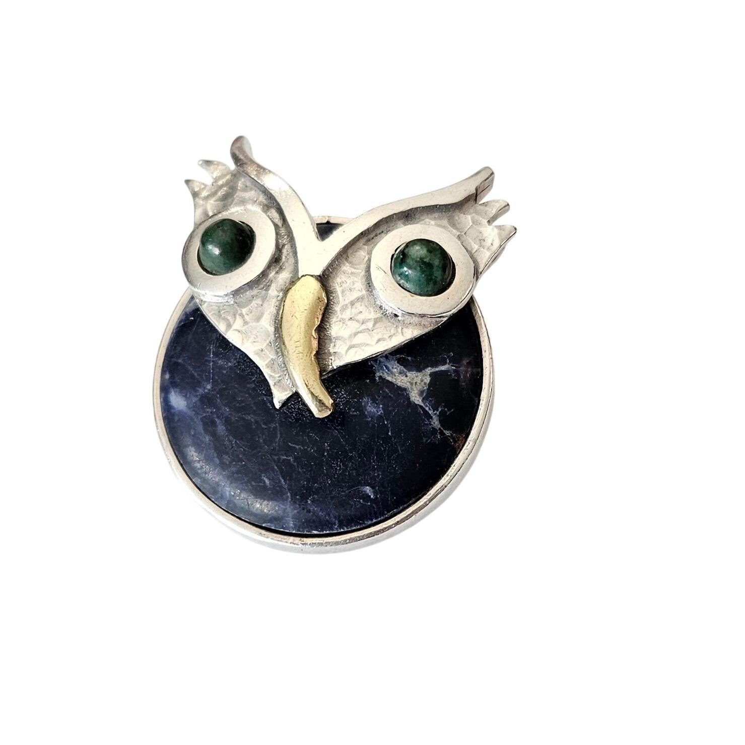 Tane Sterling Silver Owl Brooch Round Blue, Green Stone Pin Pendant C949