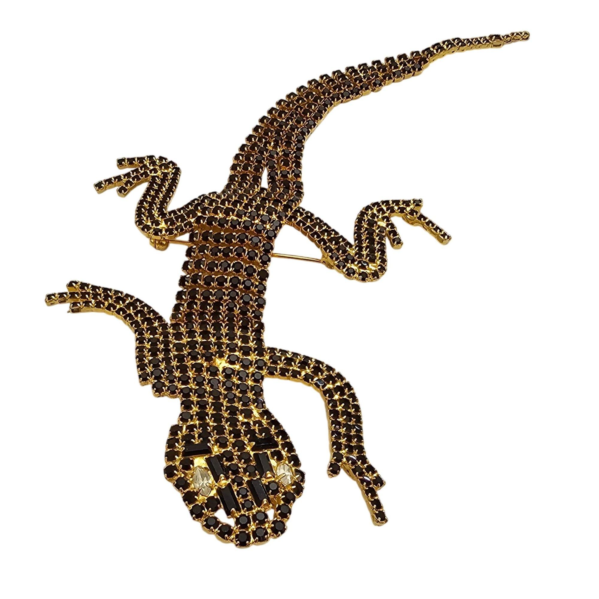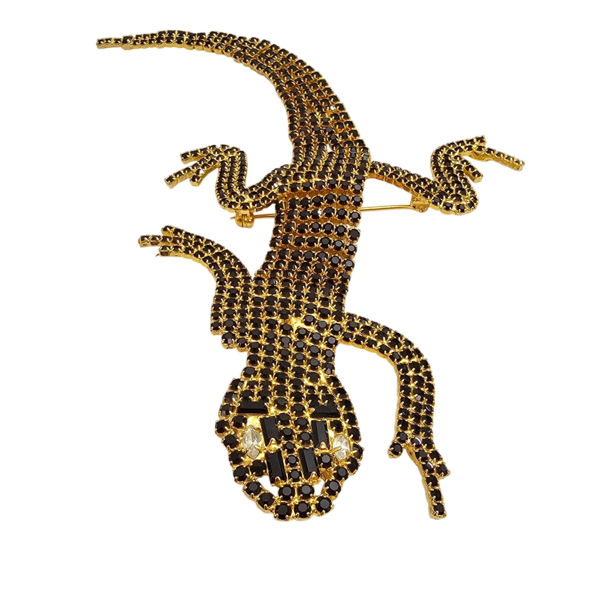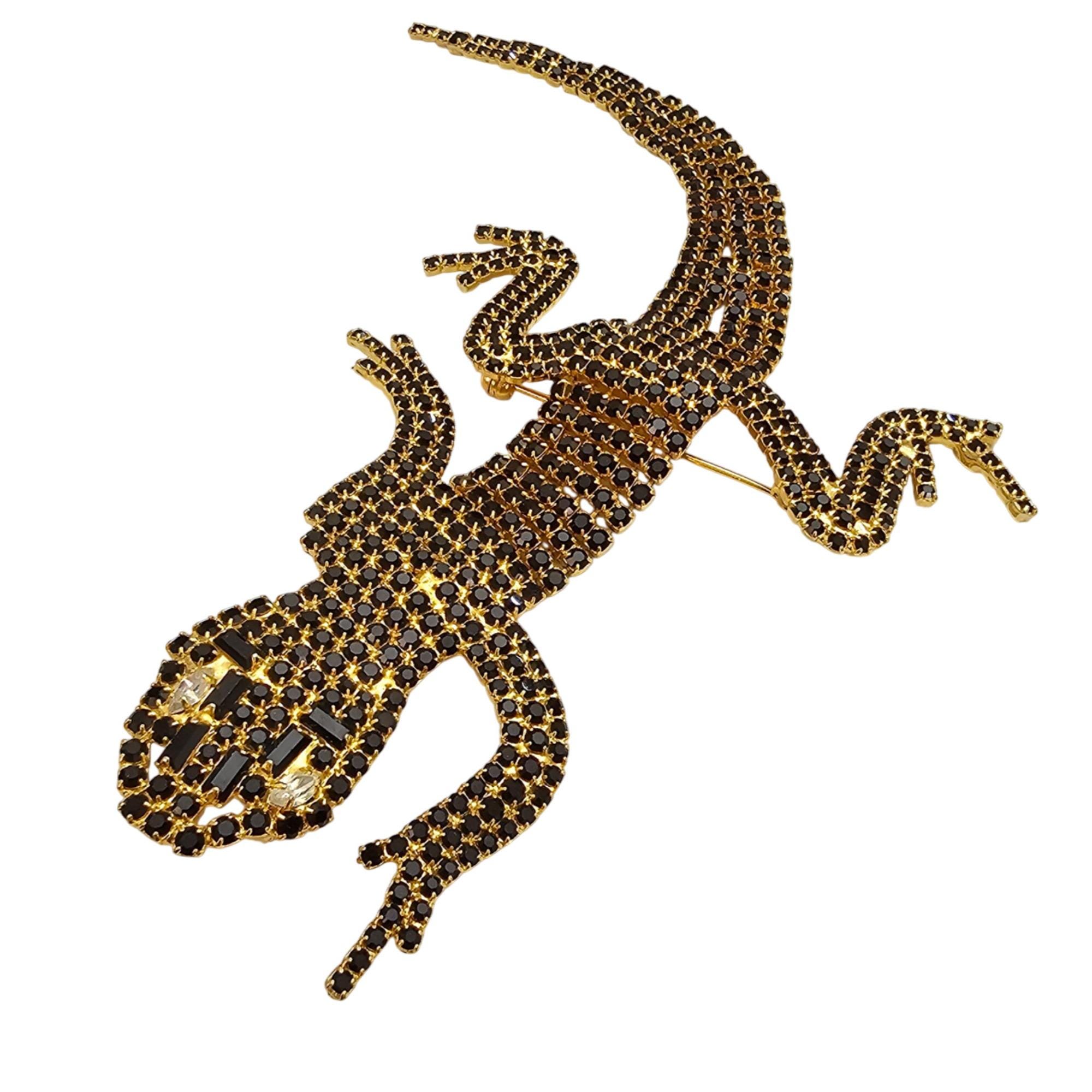 Black Rhinestone Lizard Reptile Brooch Prong Set Gecko Croc Shoulder Pin C996