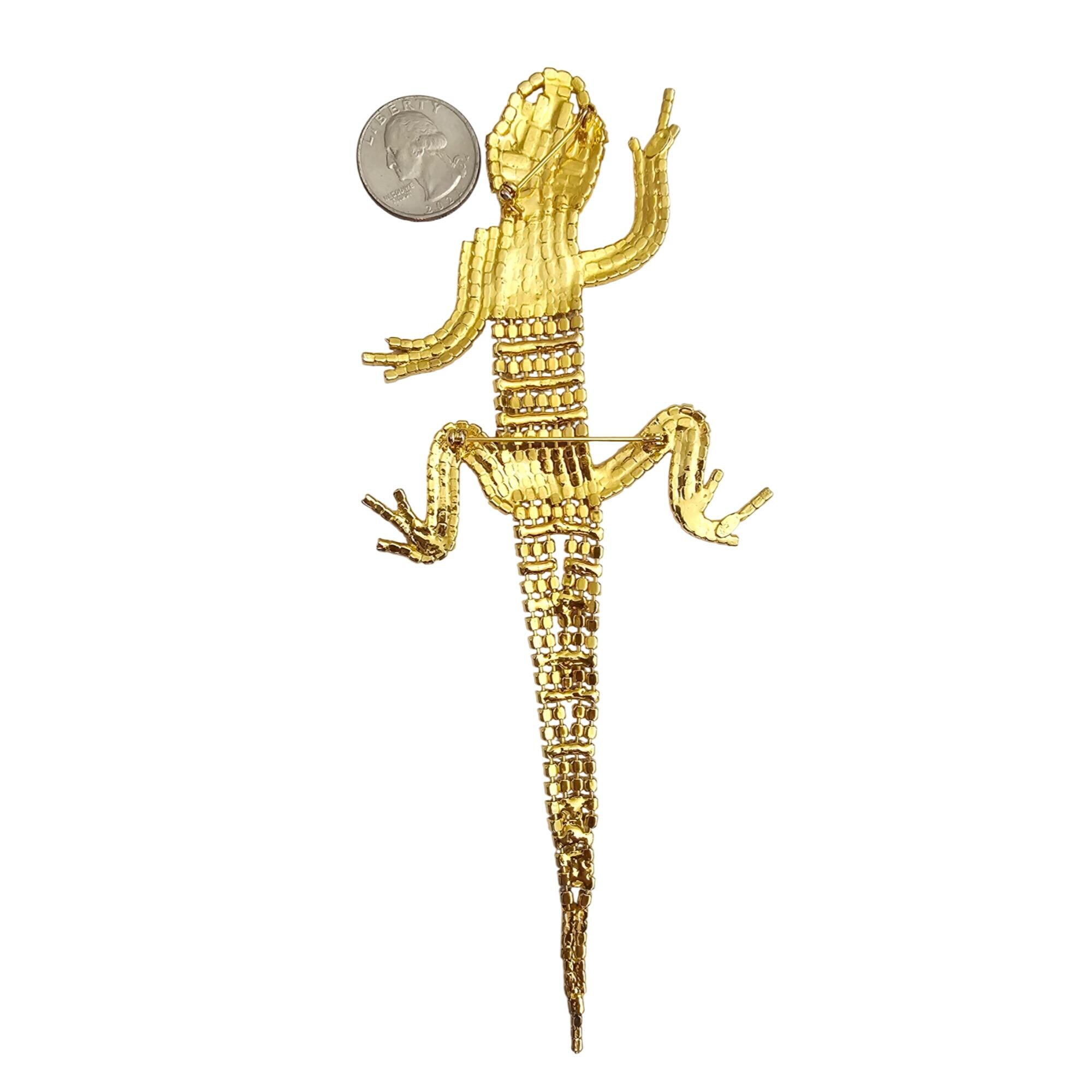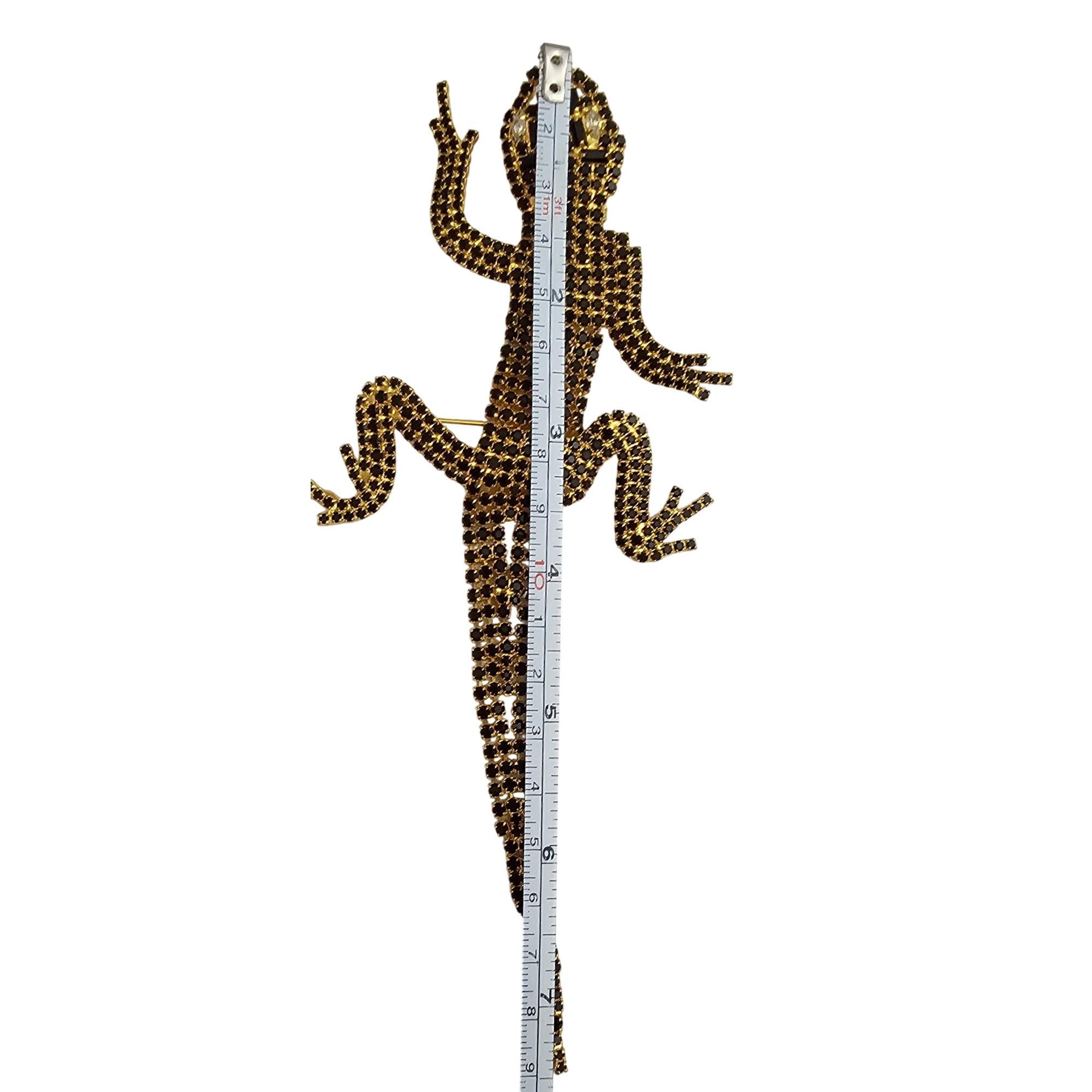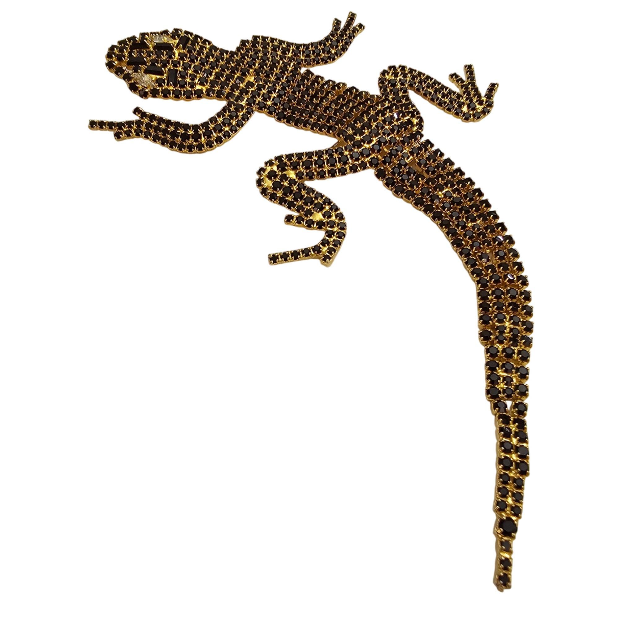 Black Rhinestone Lizard Reptile Brooch Prong Set Gecko Croc Shoulder Pin C996