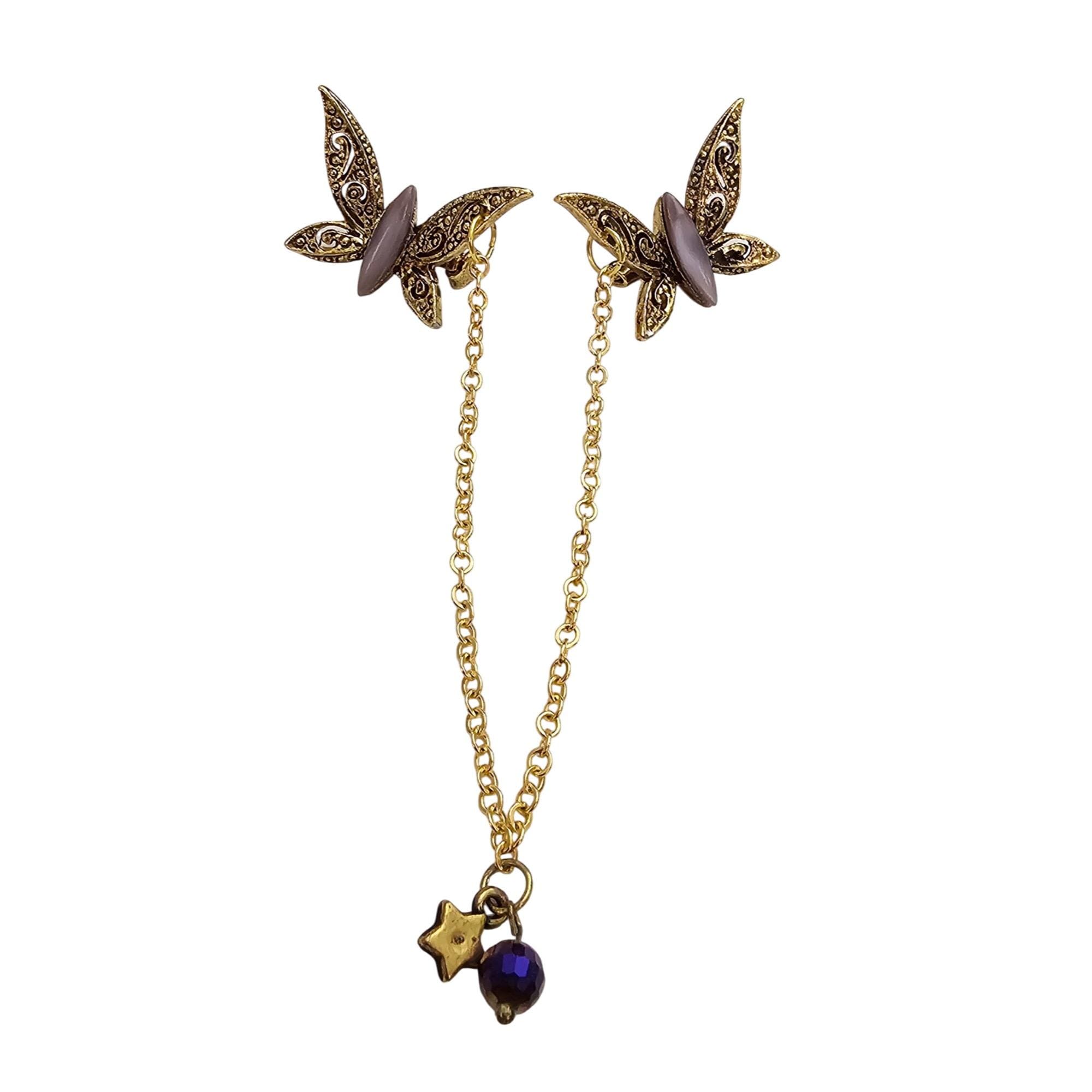 • Gold tone star charm and blue bead dangles