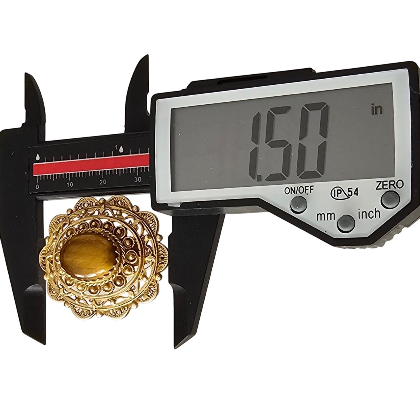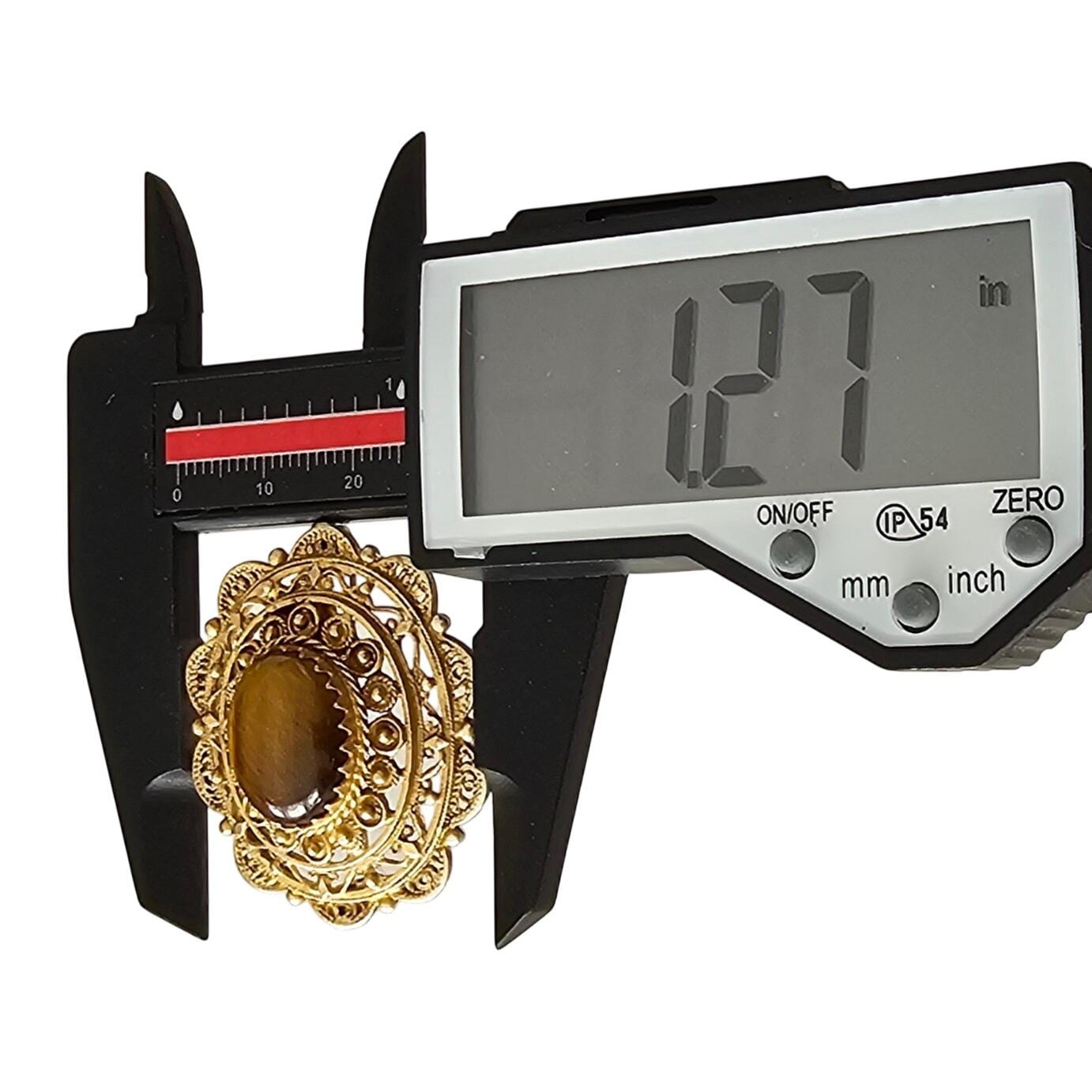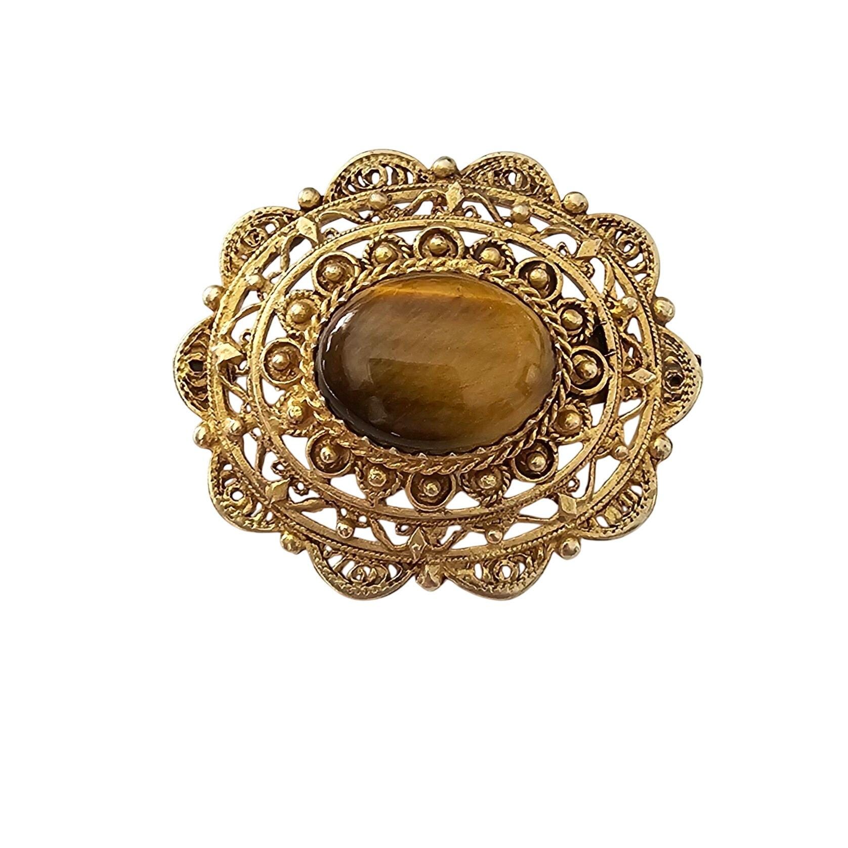 Israel 925 Gold Filigree Oval Brooch Tiger Eye Pin Signed J322