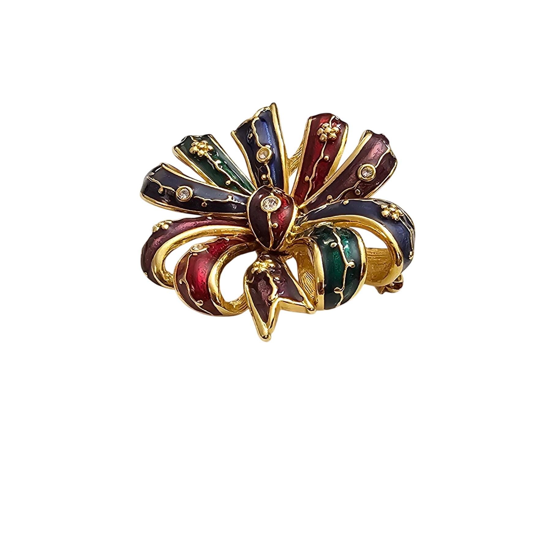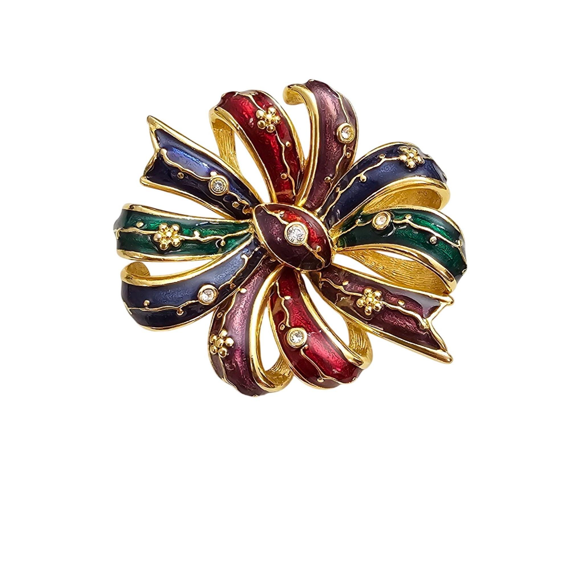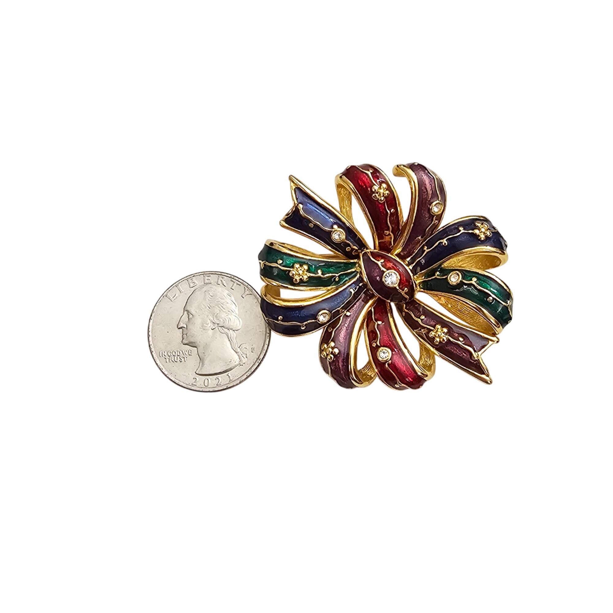 Joan Rivers Bow Brooch Clear Rhinestone Red Blue Green Purple Enamel Cluster Pin Signed J355
