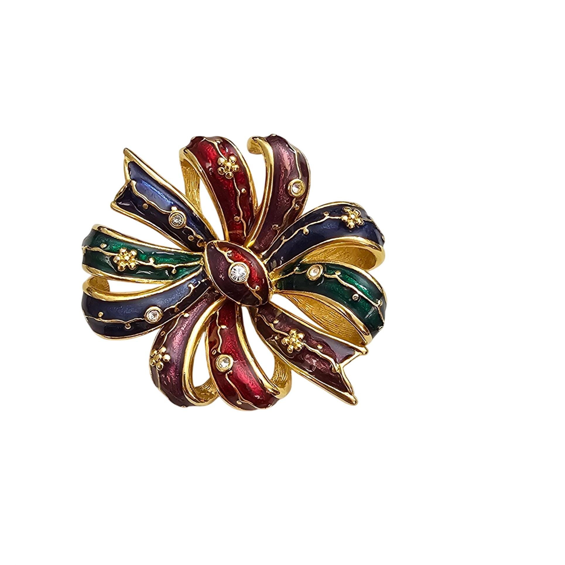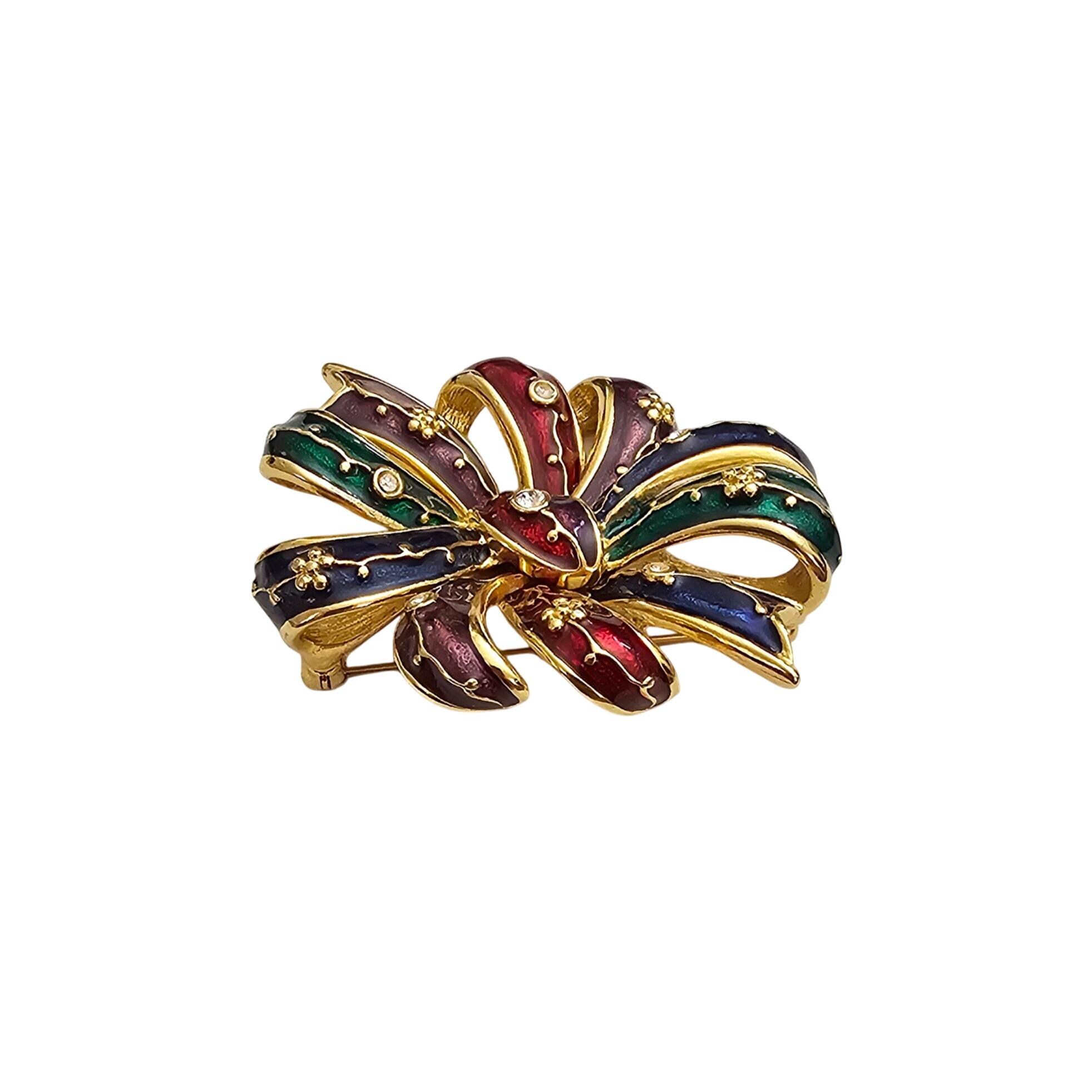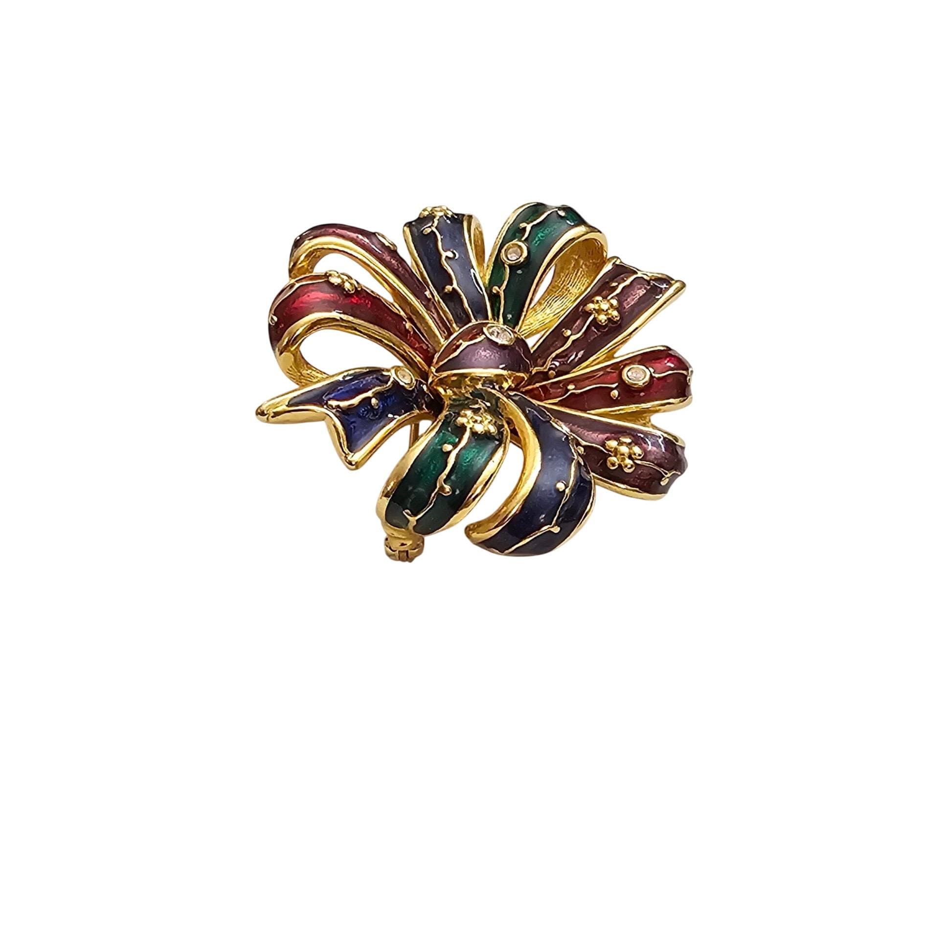 Joan Rivers Bow Brooch Clear Rhinestone Red Blue Green Purple Enamel Cluster Pin Signed J355
