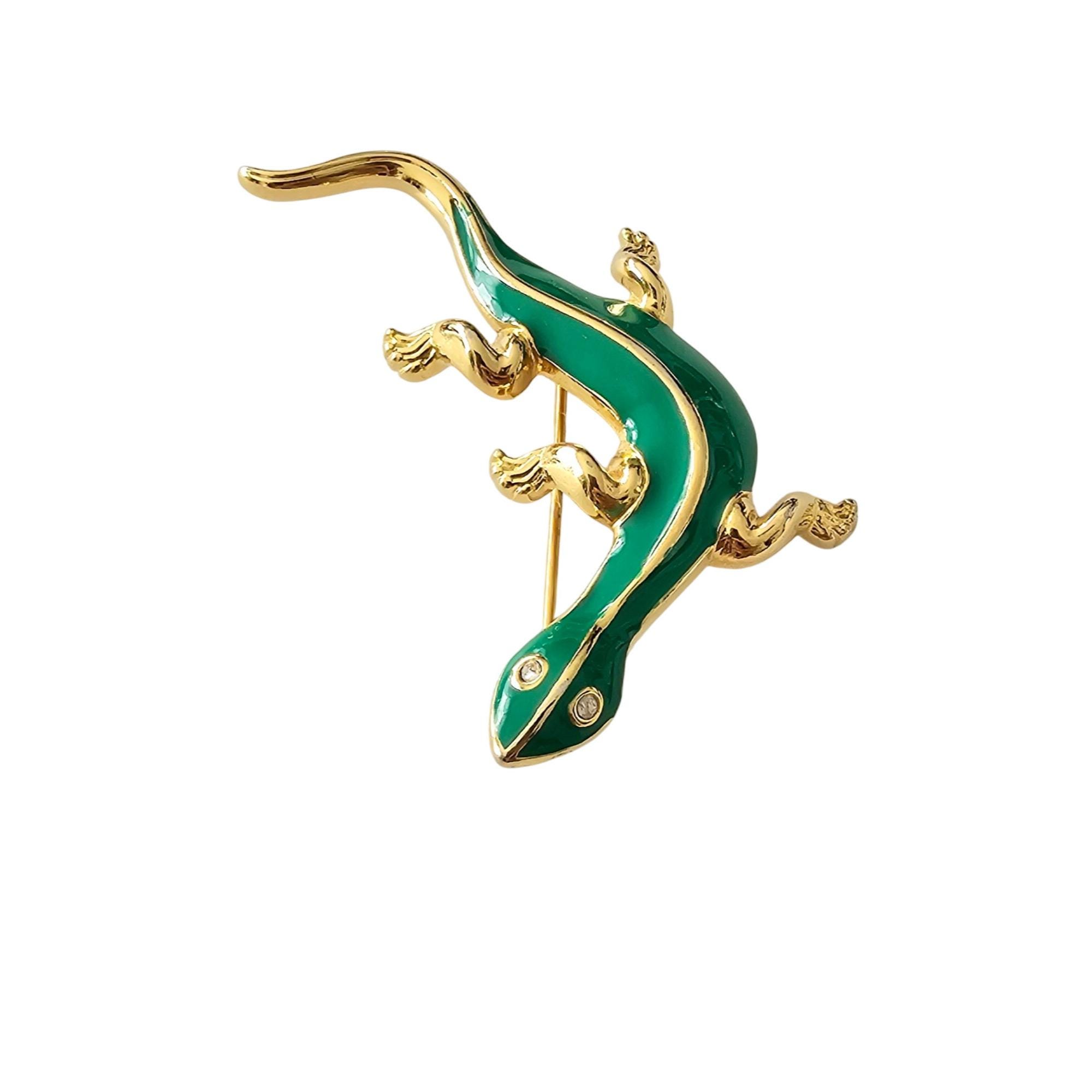 Monet Kelly Green Gecko Brooch, Clear Rhinestone Lizard Reptile Pin Signed J321