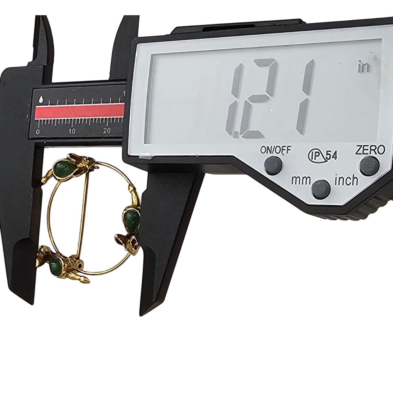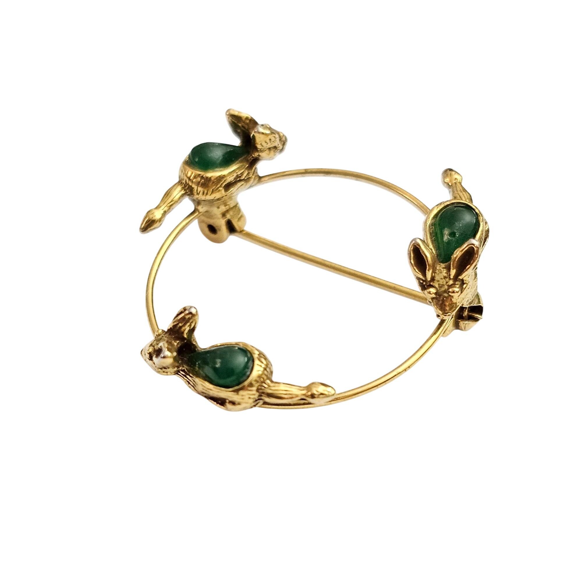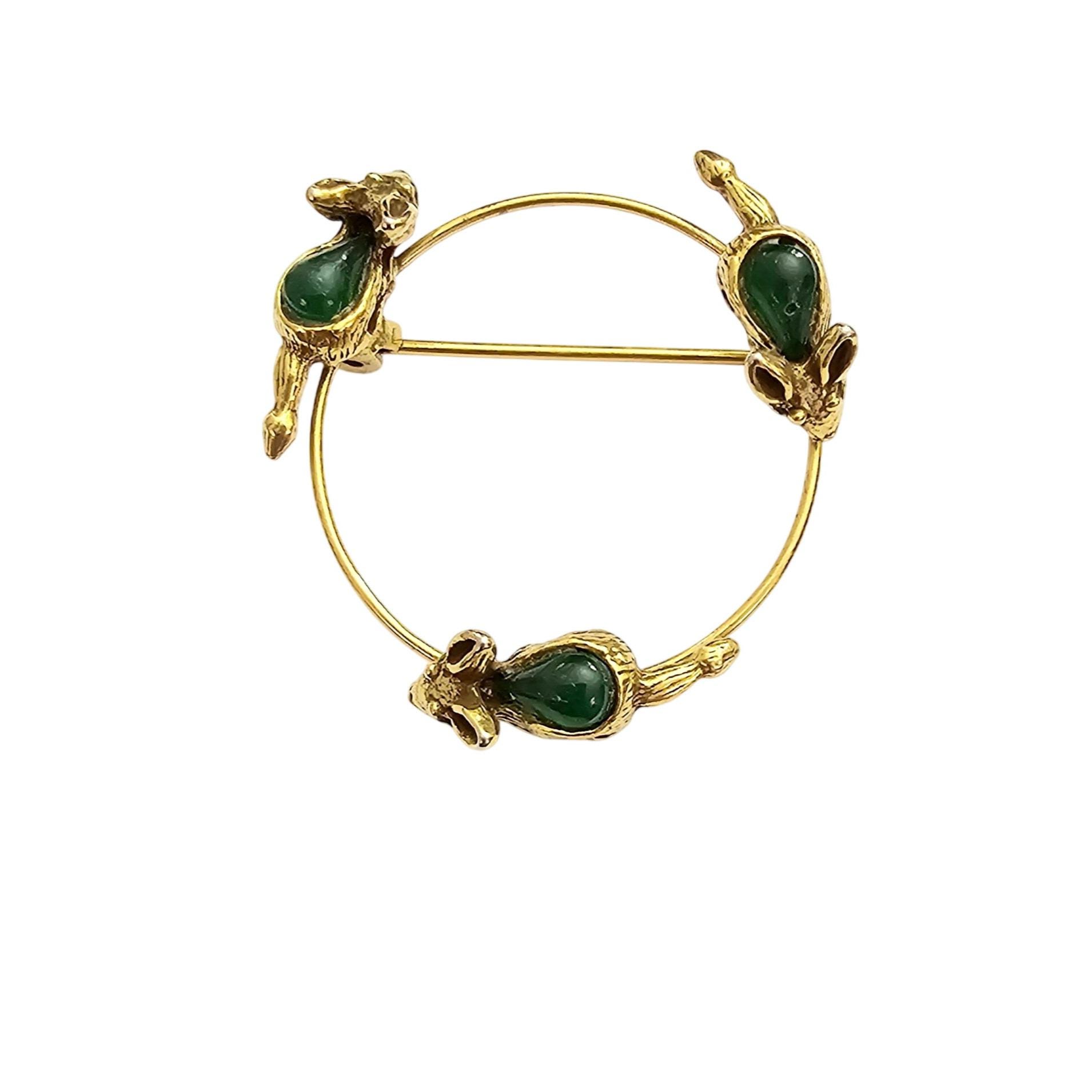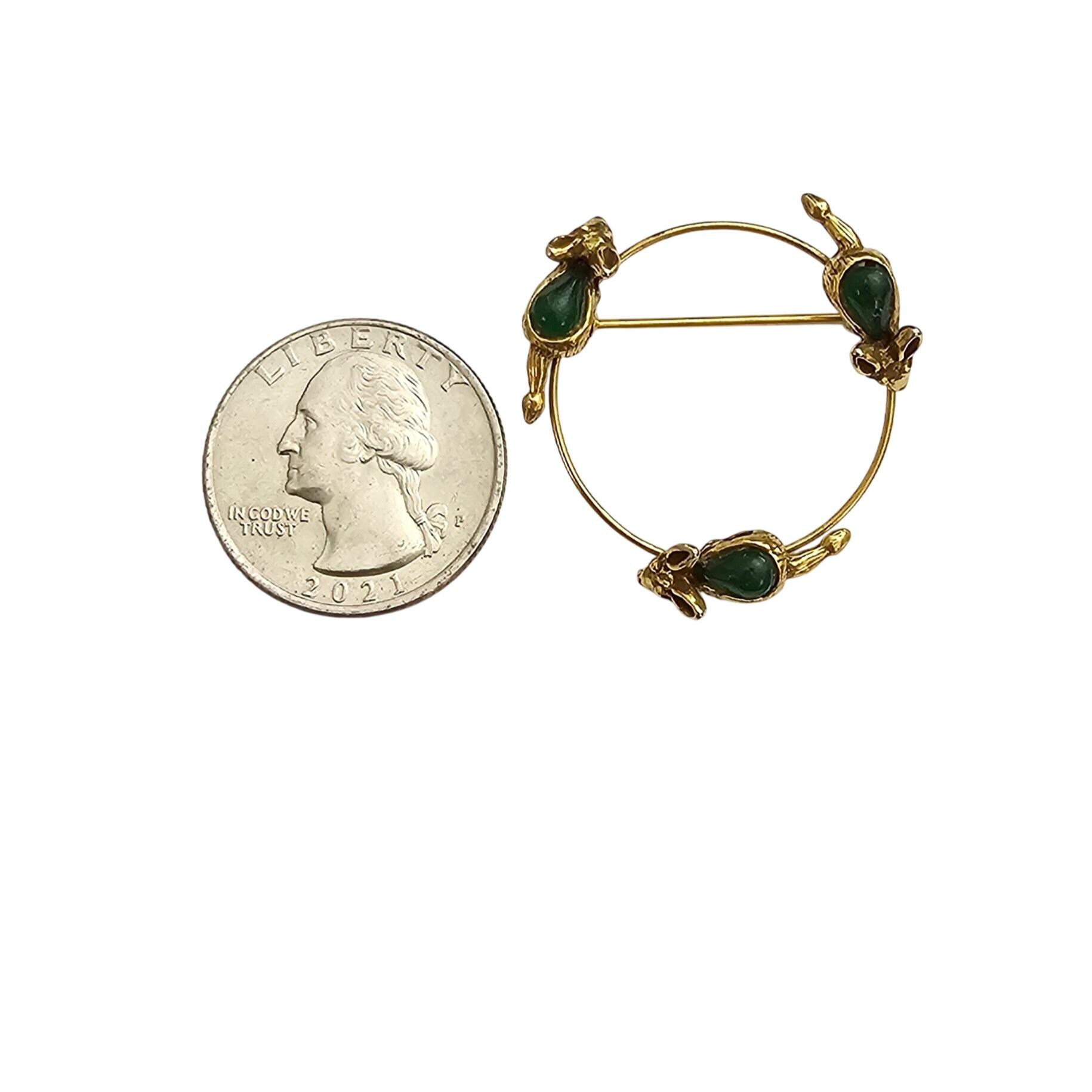Mouse Open Brooch Green Glass Cab Round Open Eternity Mice Chasing Tails Pin J350