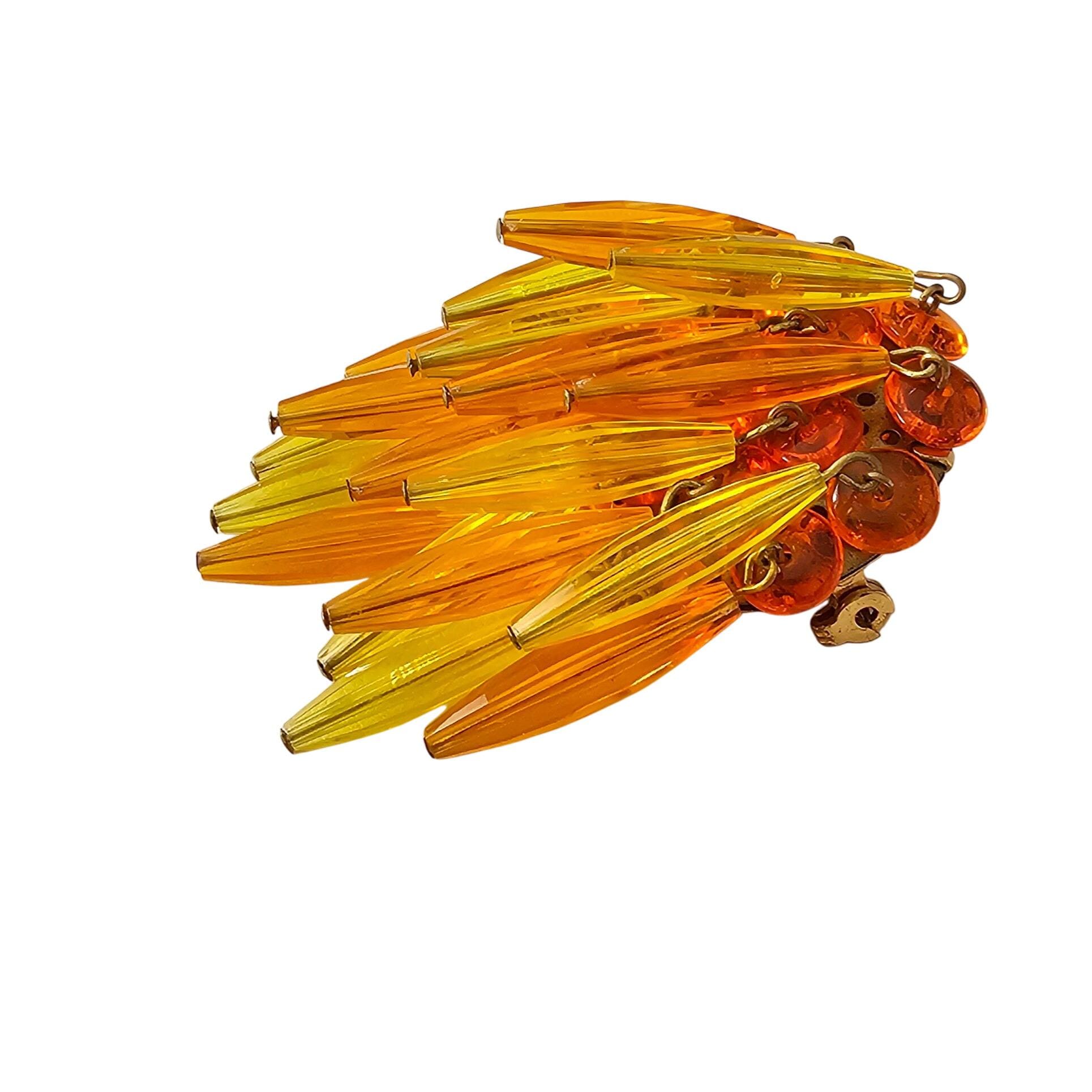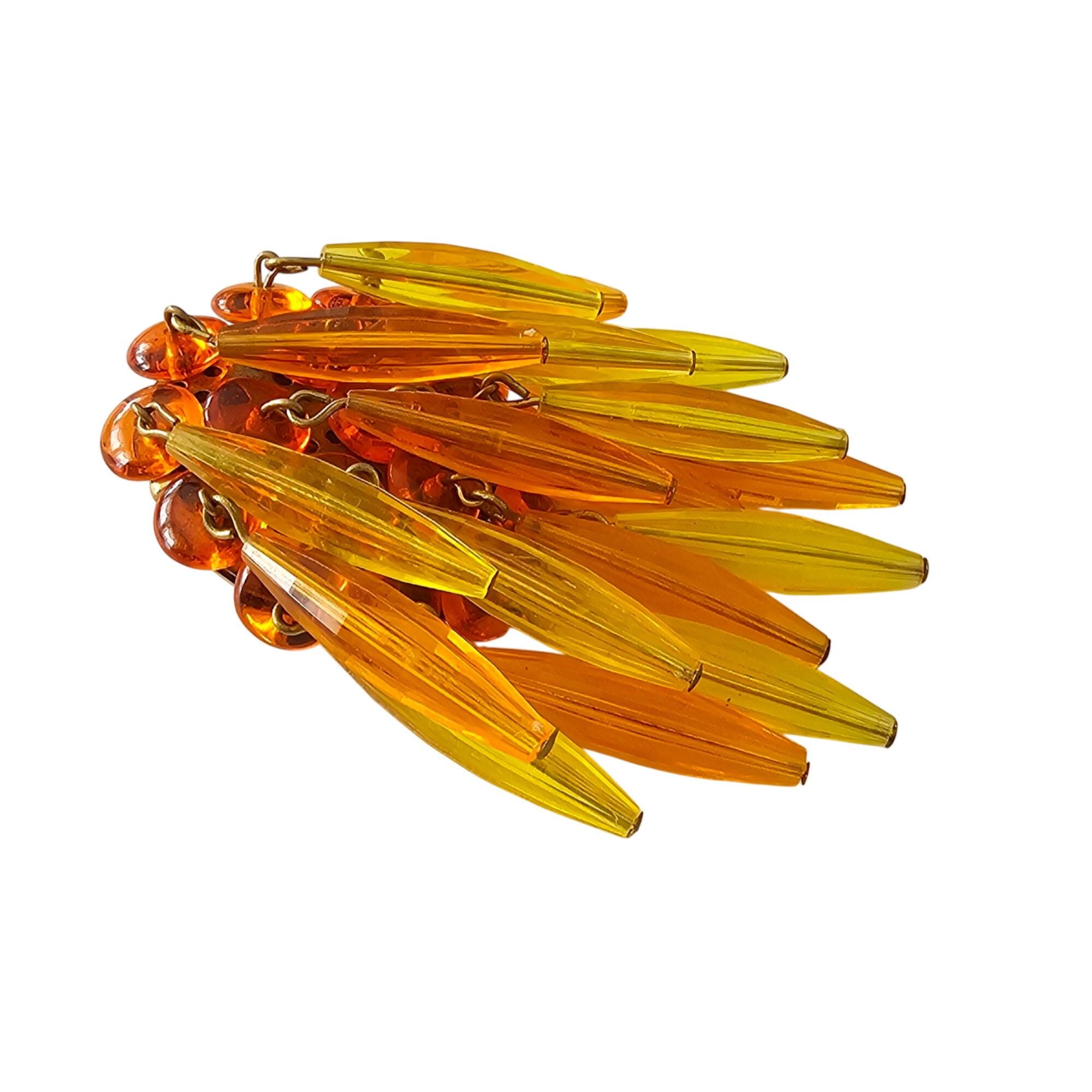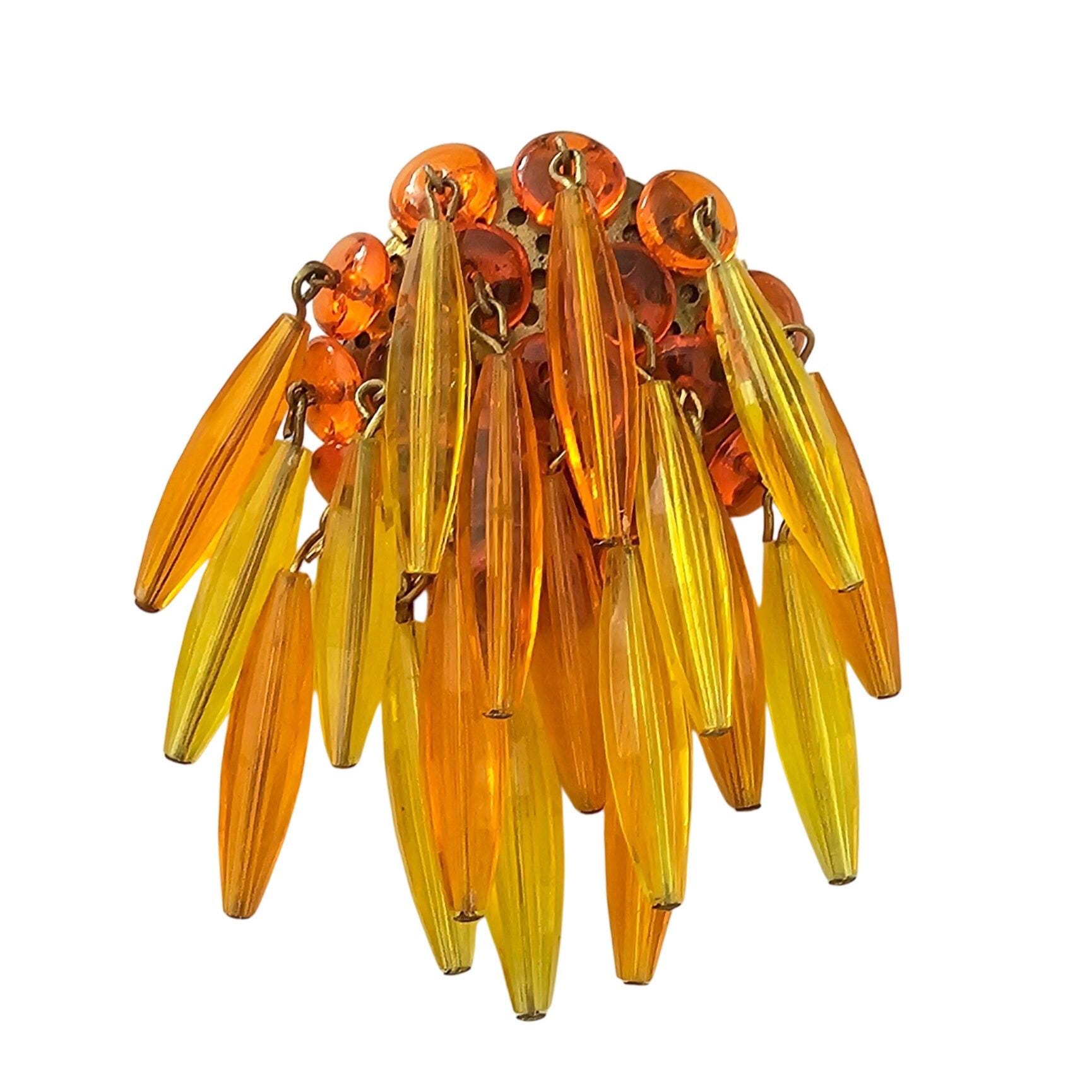 Orange Yellow Waterfall Brooch Plastic Bead Vintage Pin J320