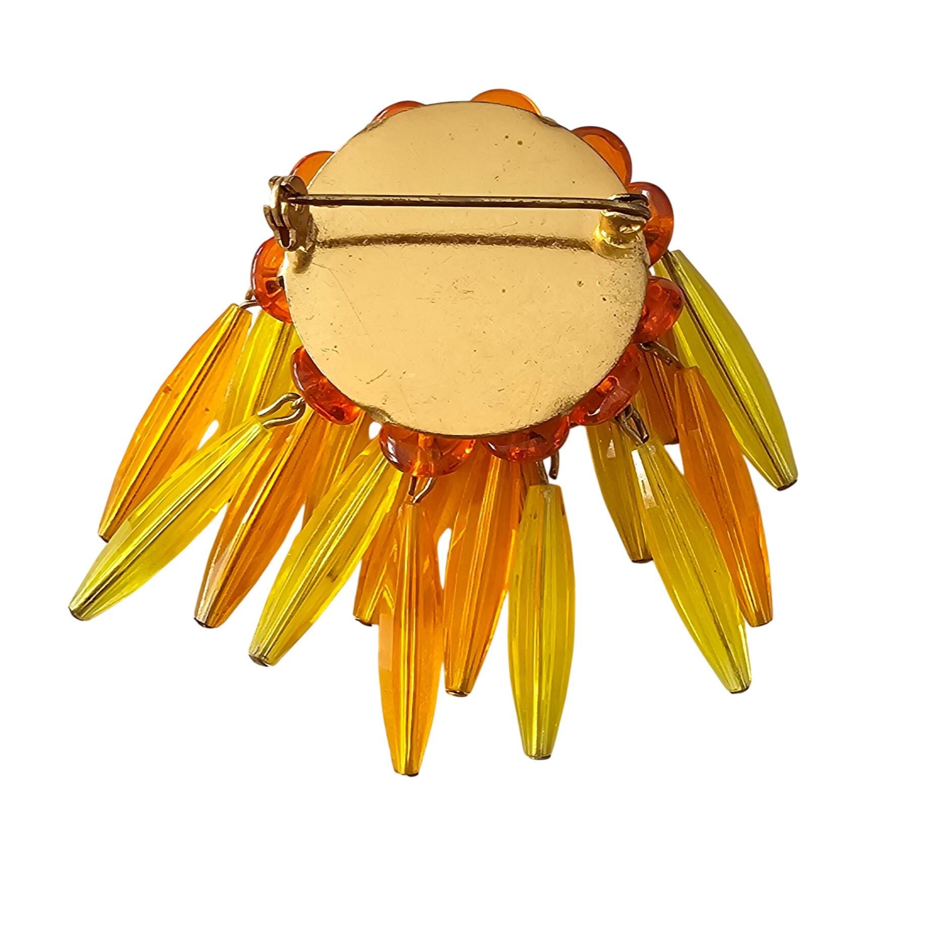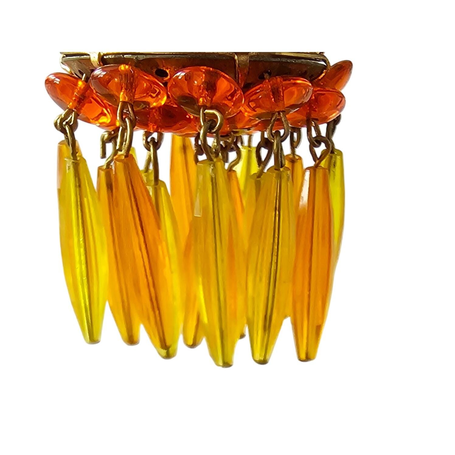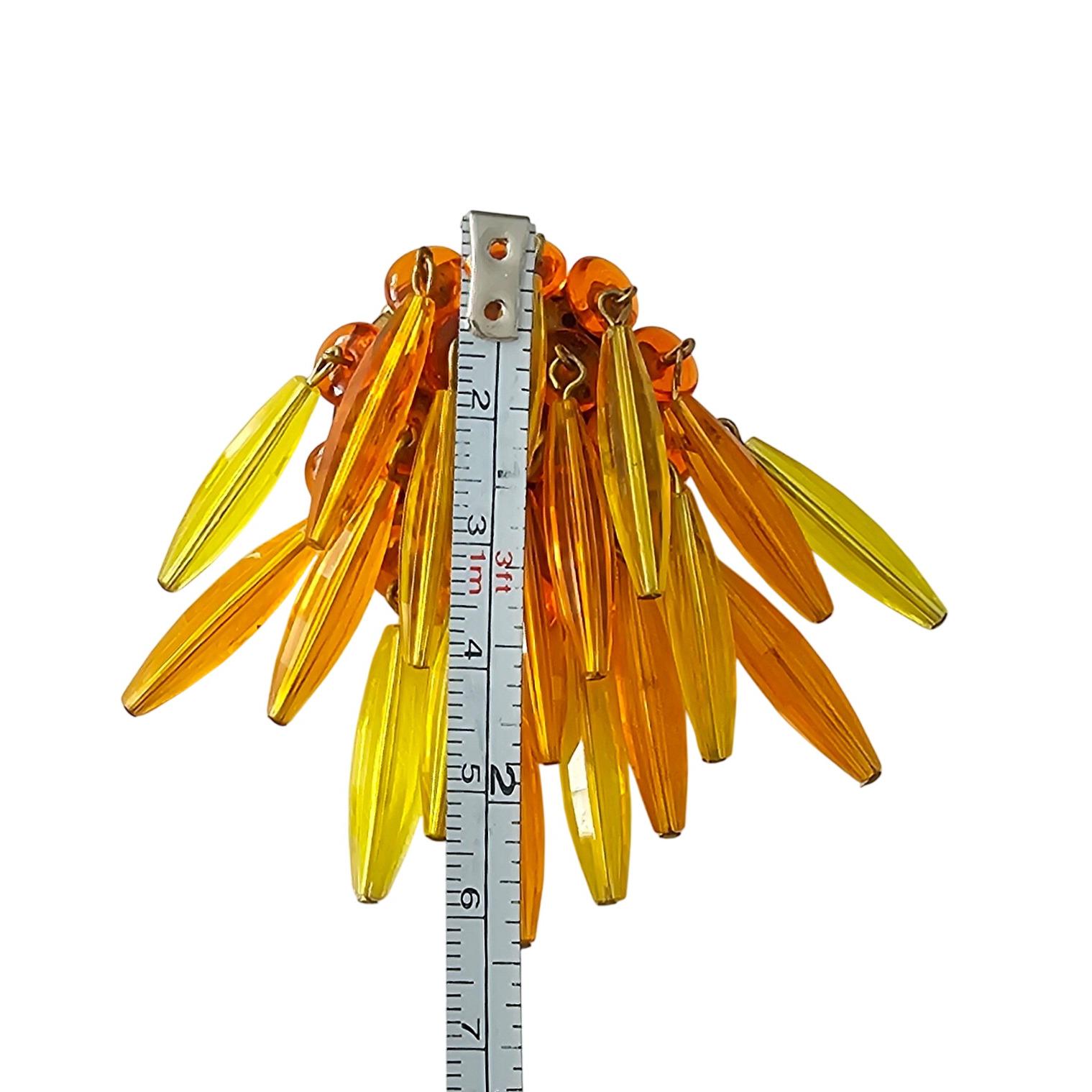 Orange Yellow Waterfall Brooch Plastic Bead Vintage Pin J320