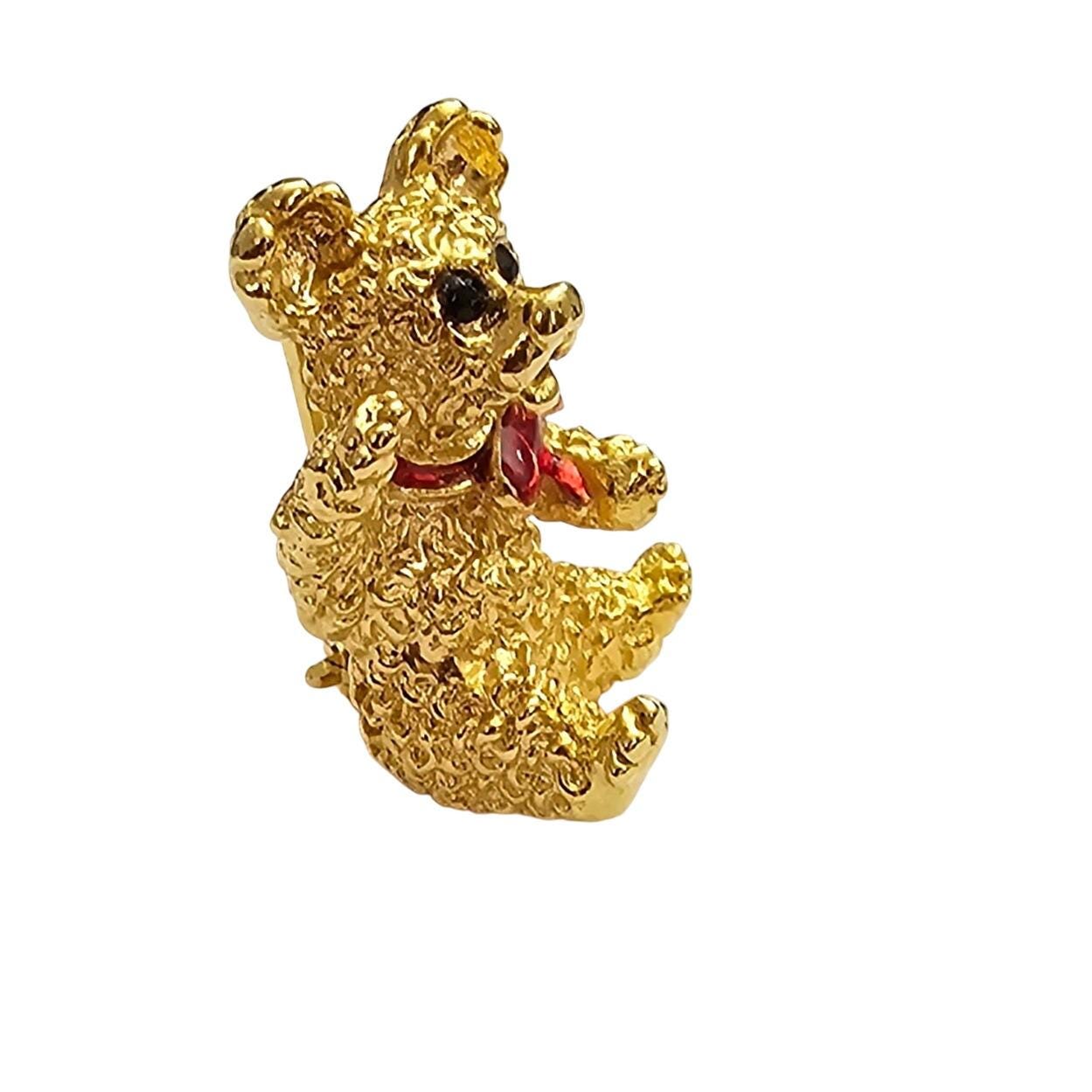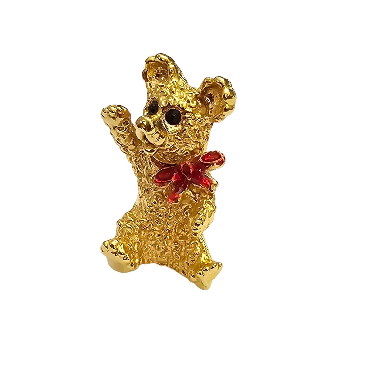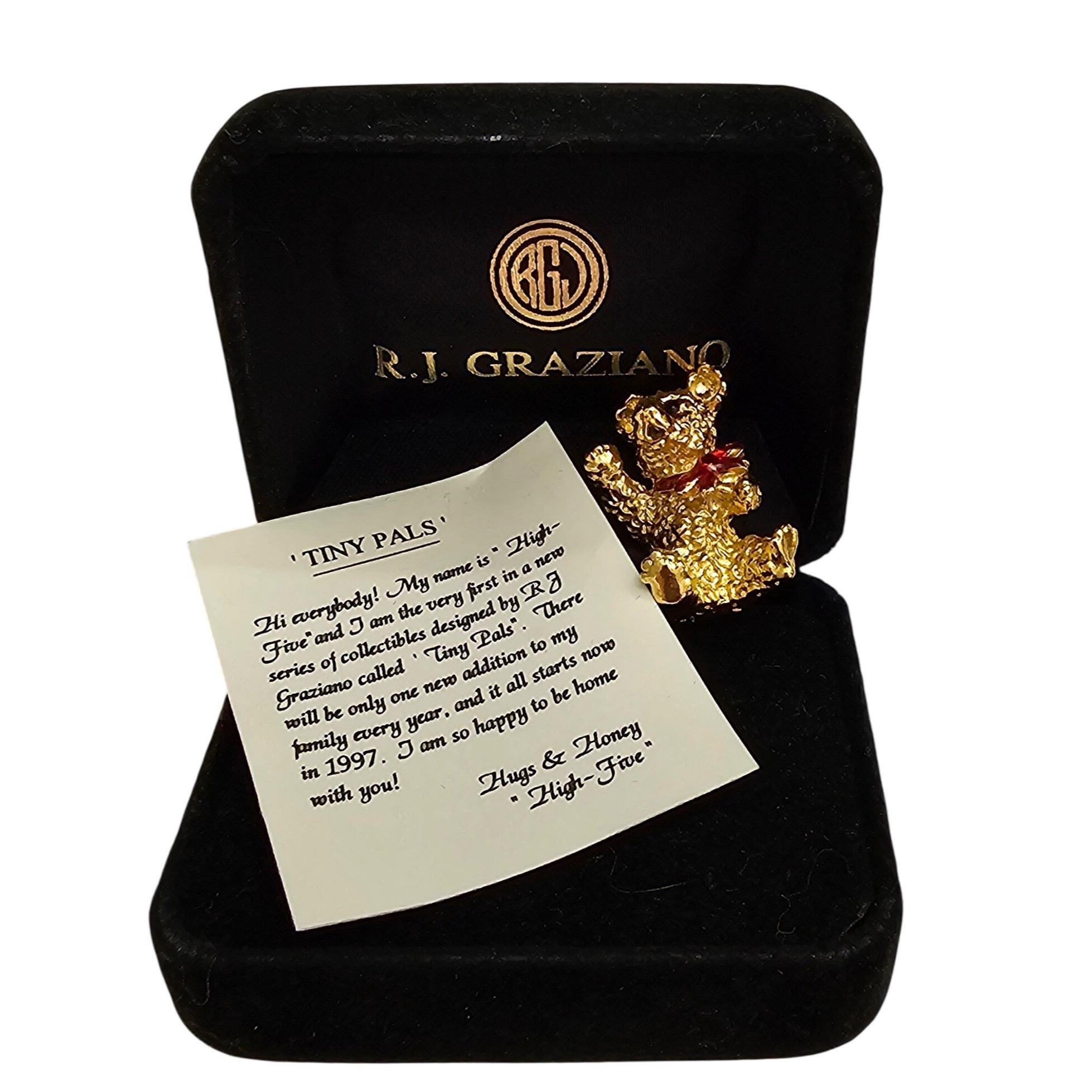 RJ Graziano Teddy Bear Brooch Gold Tone Pin With Box And Card Signed J296