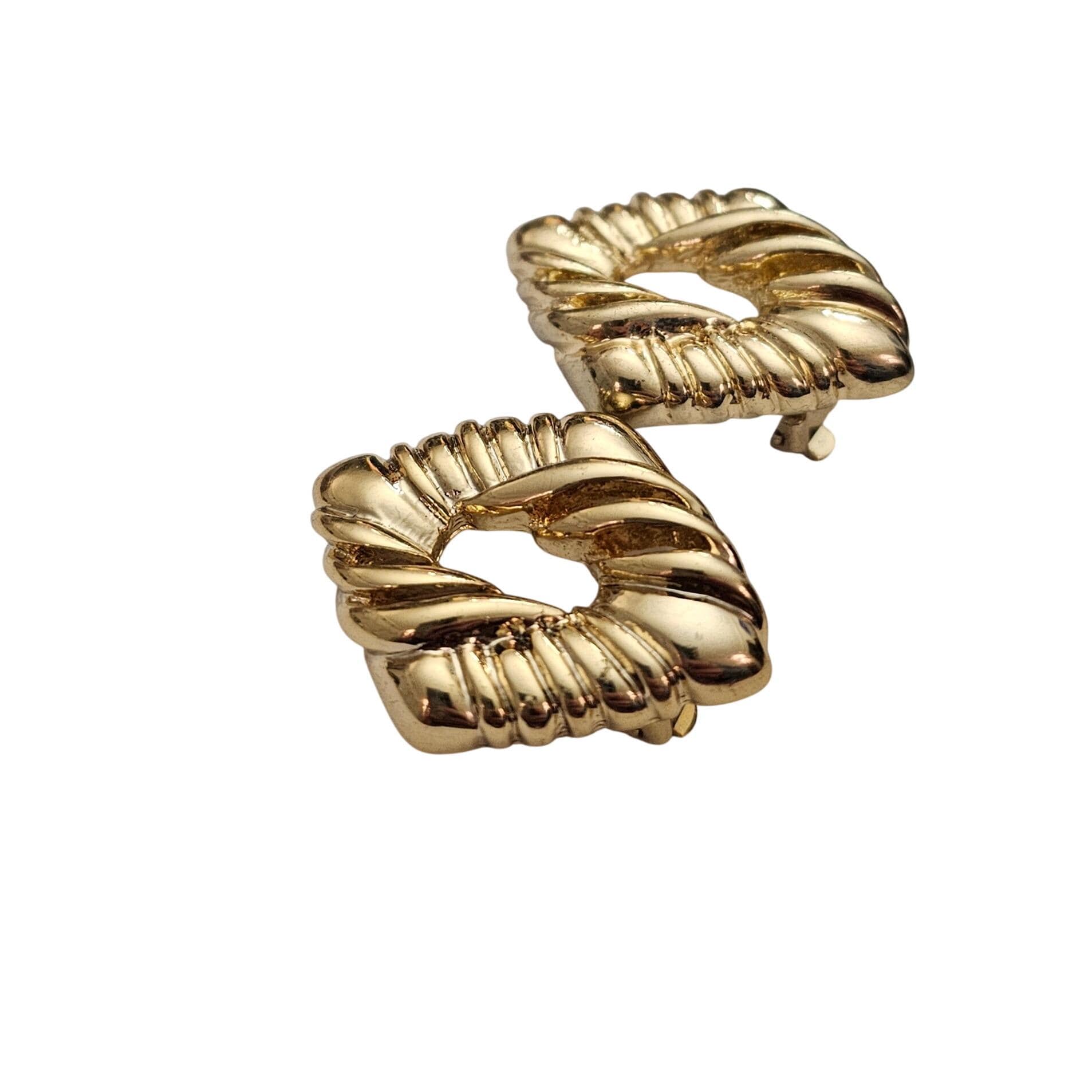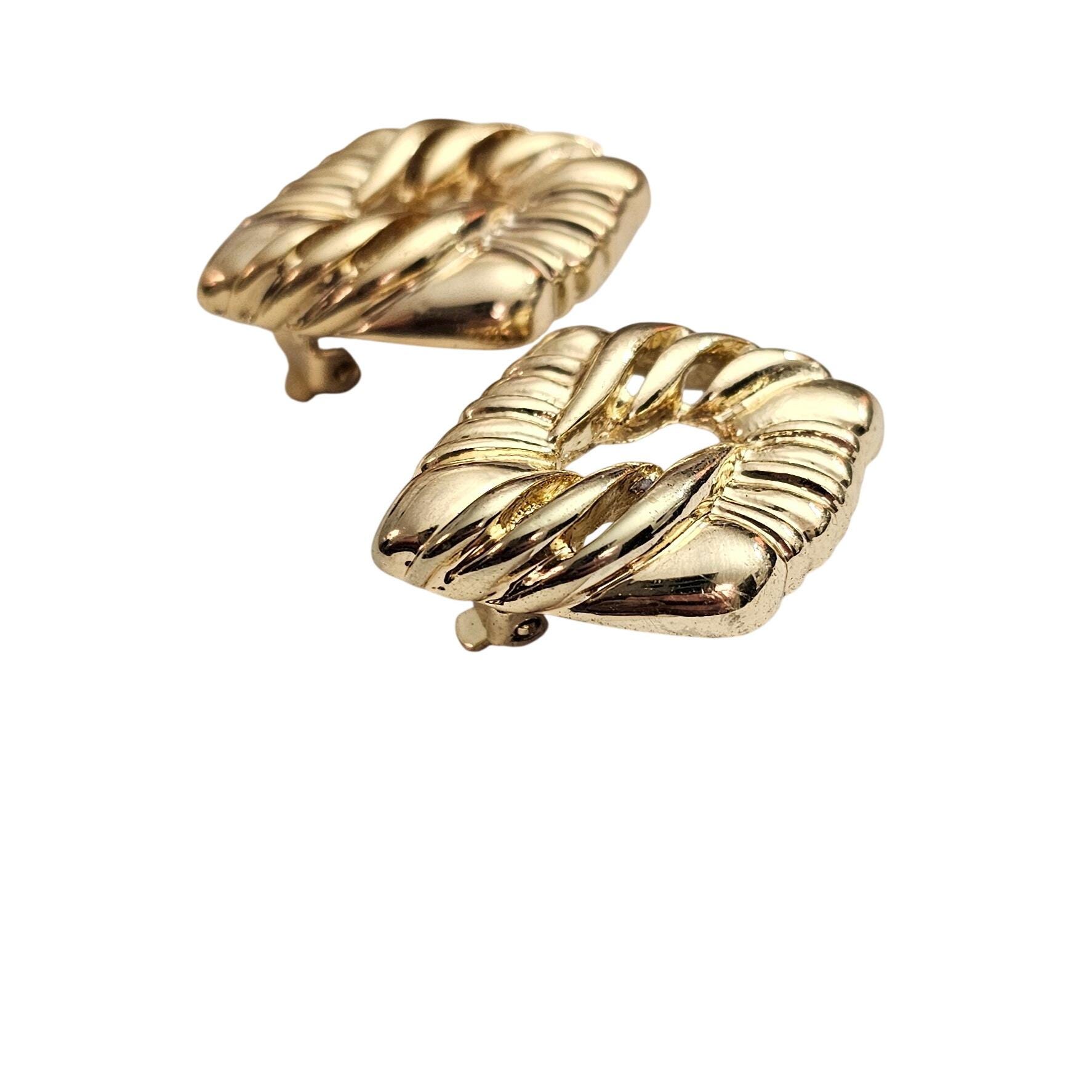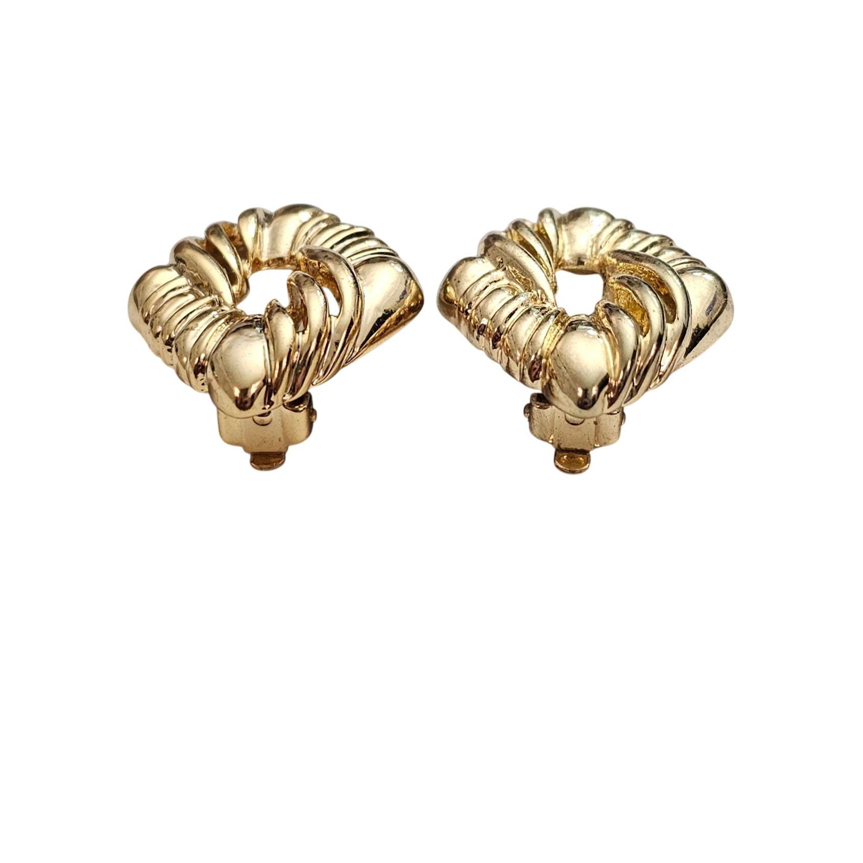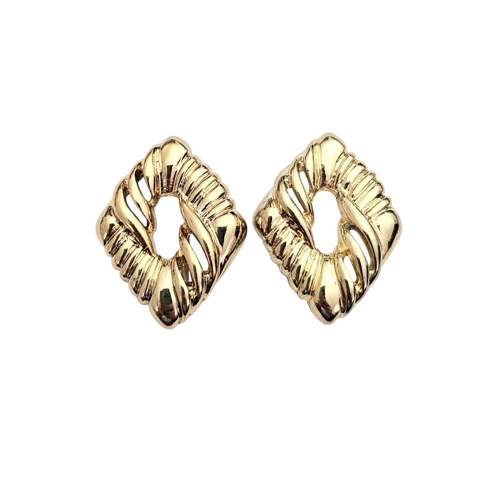 Anne Klein Gold Tone Diamond Shape Open Center Clip On Earrings Signed, J402