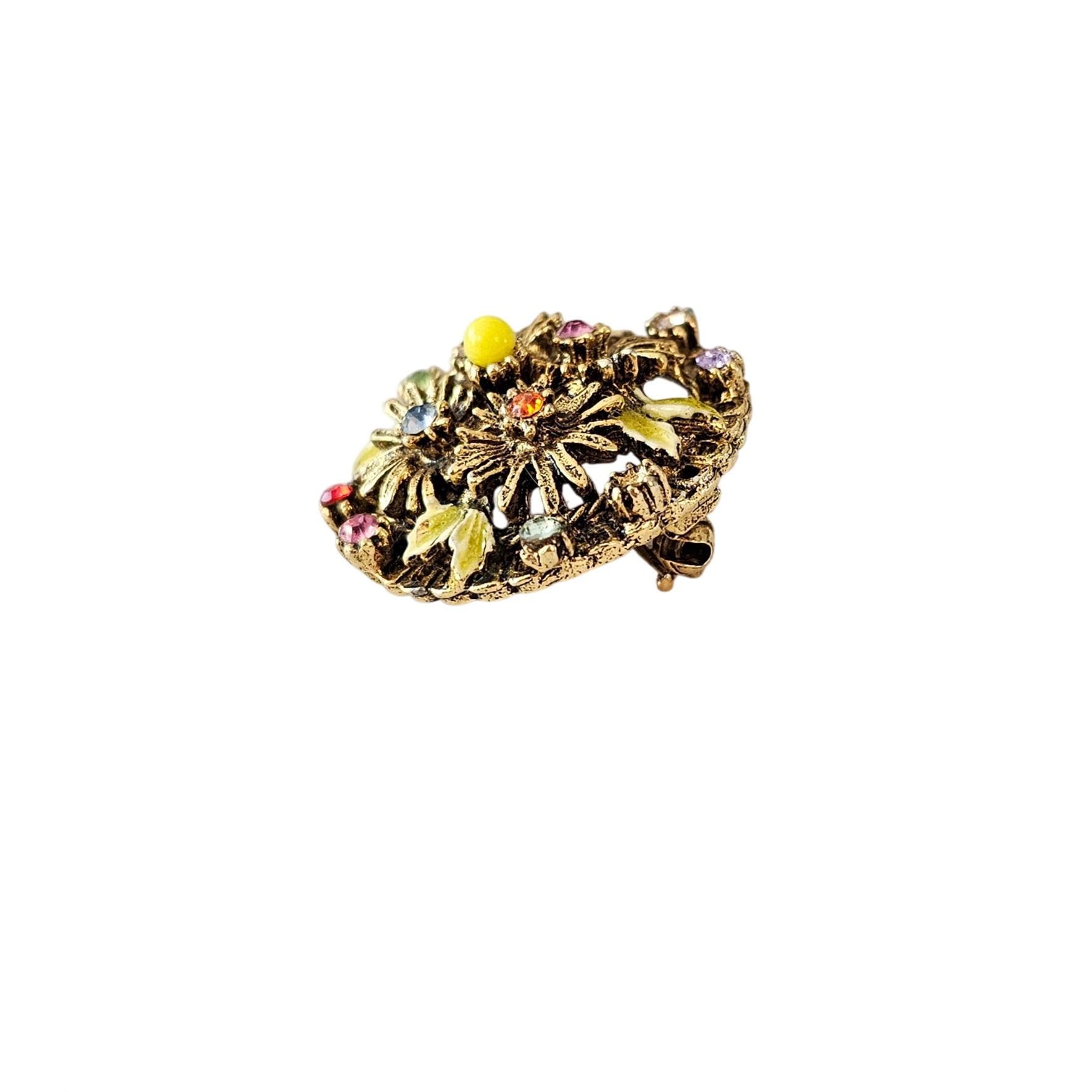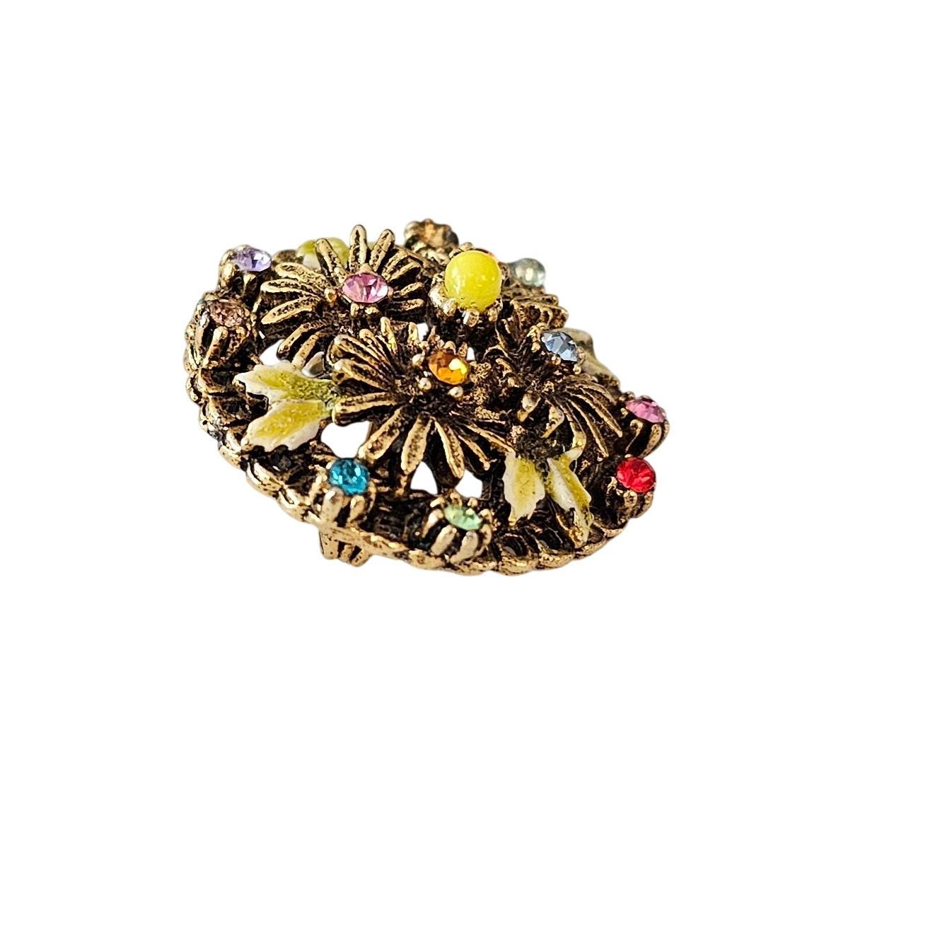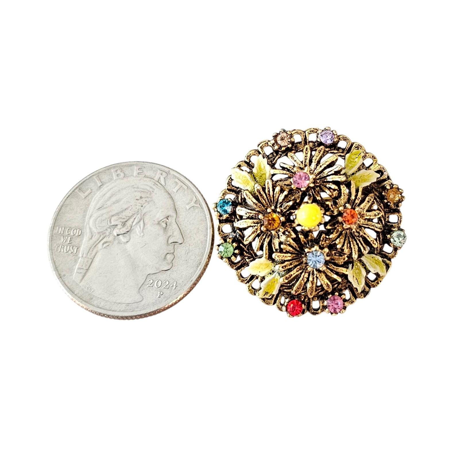Capri Round Flower Brooch Multi Color Rhinestone Pin Signed, J360