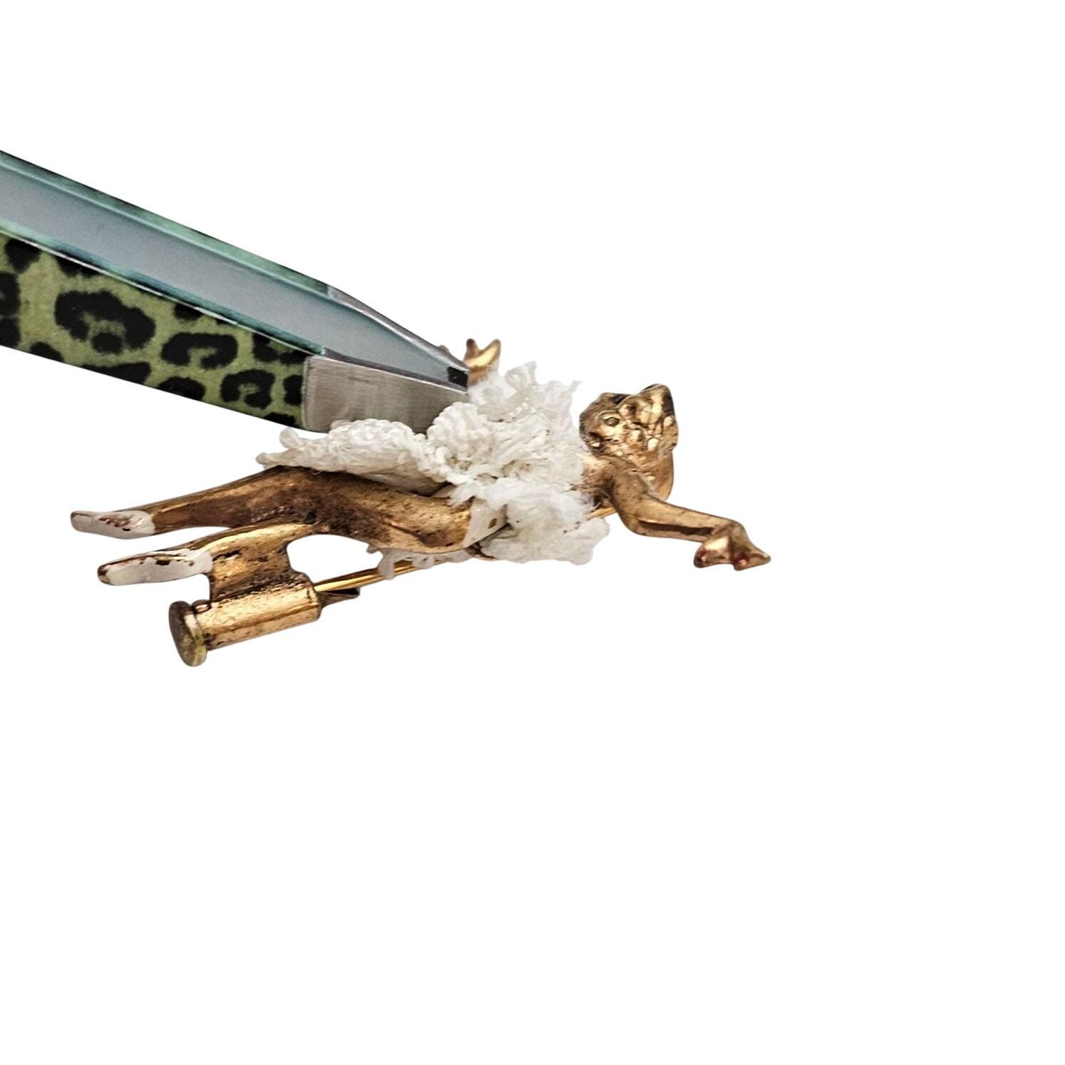 • It features a lady or a girl Ballerina figural pin