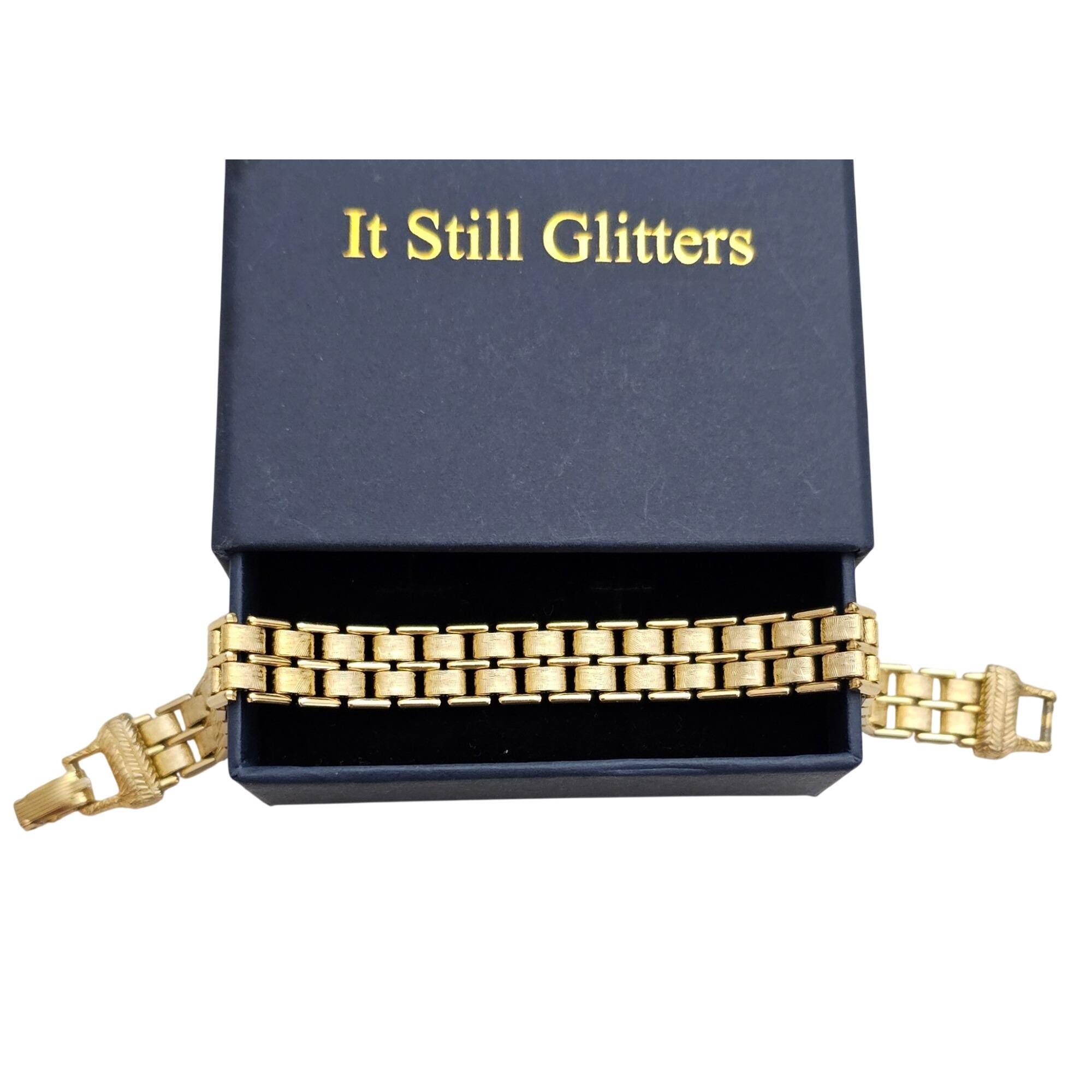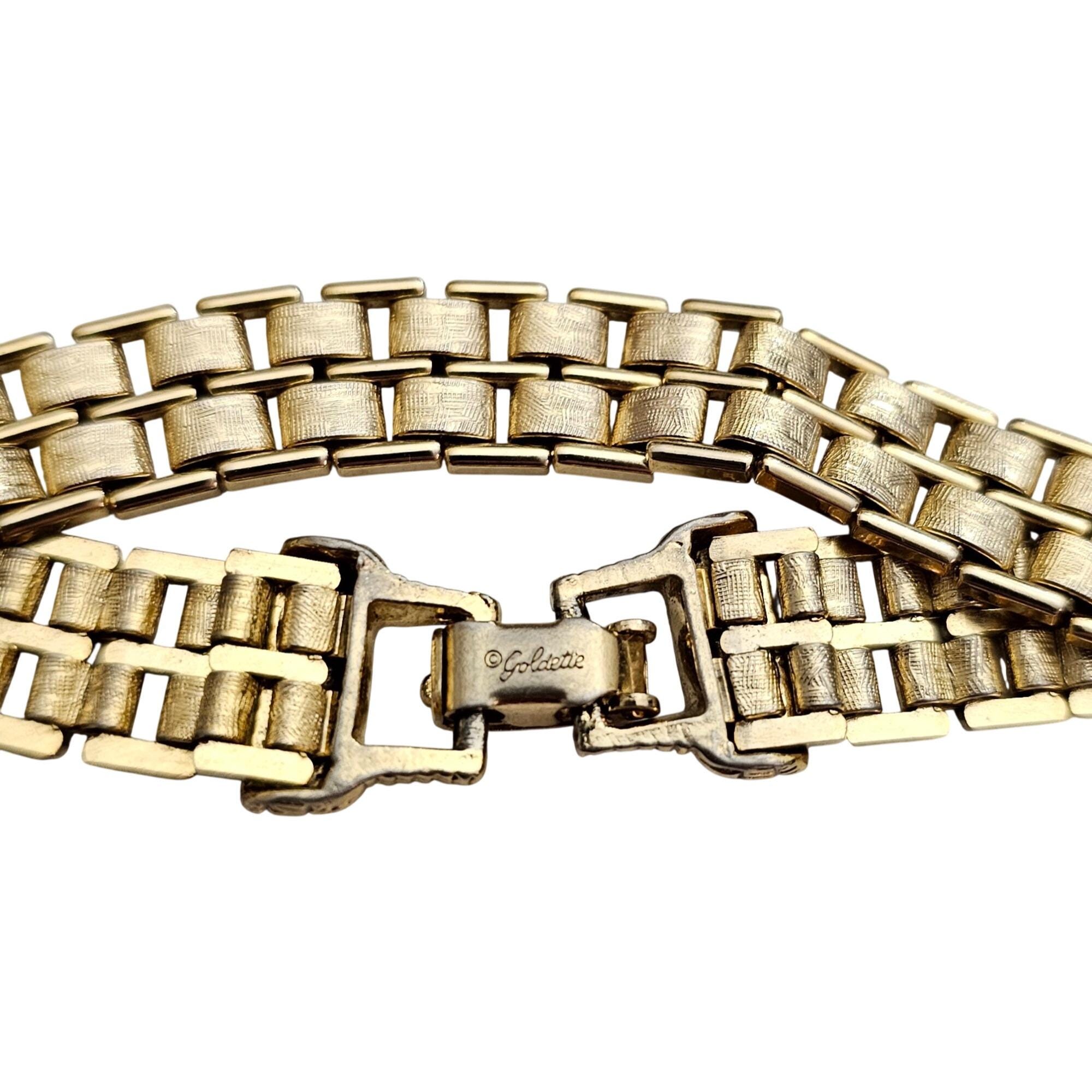 Goldette Gold Tone Linen Finish Book Chain Style Bracelet Signed J396