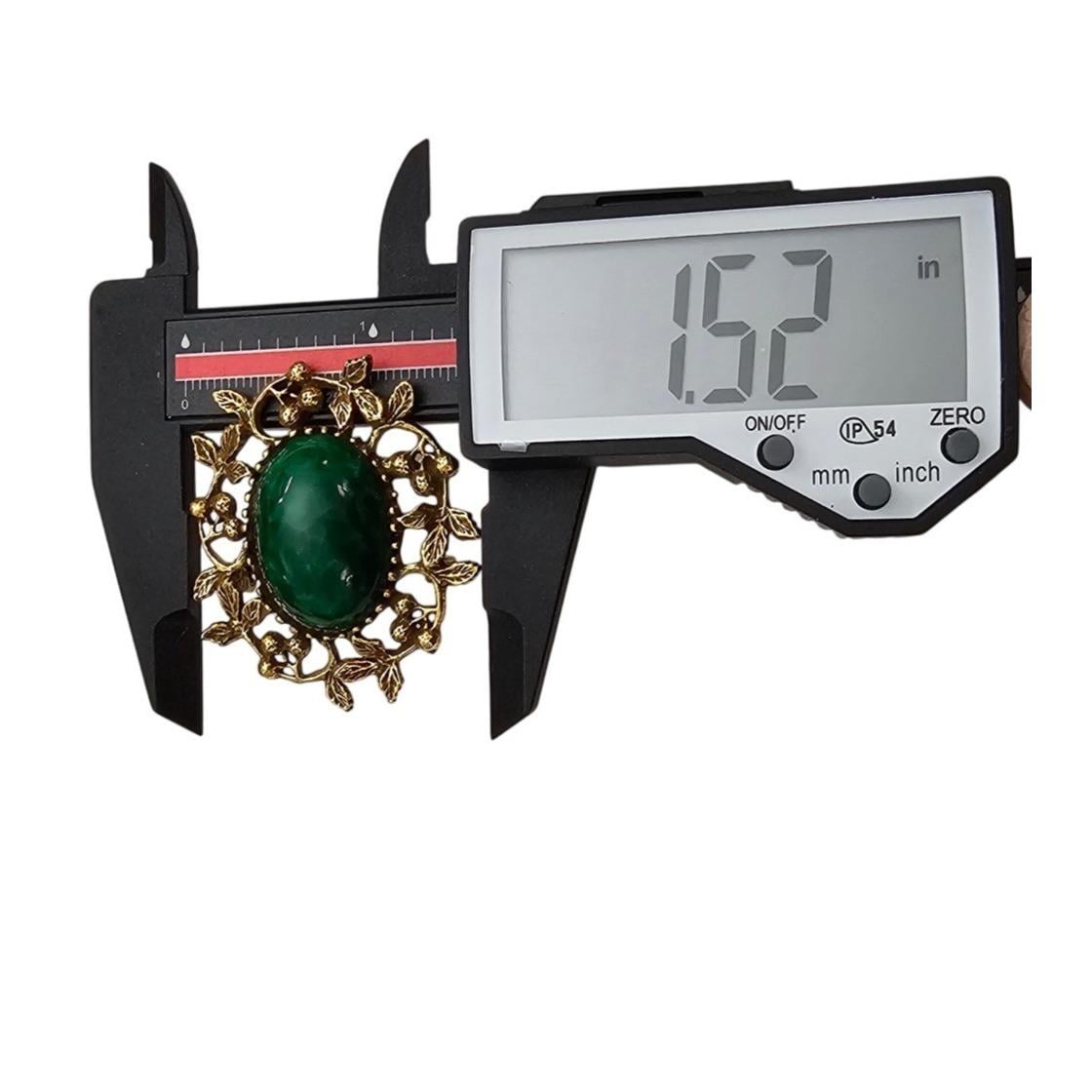• Goldette Green Oval Cab Brooch
