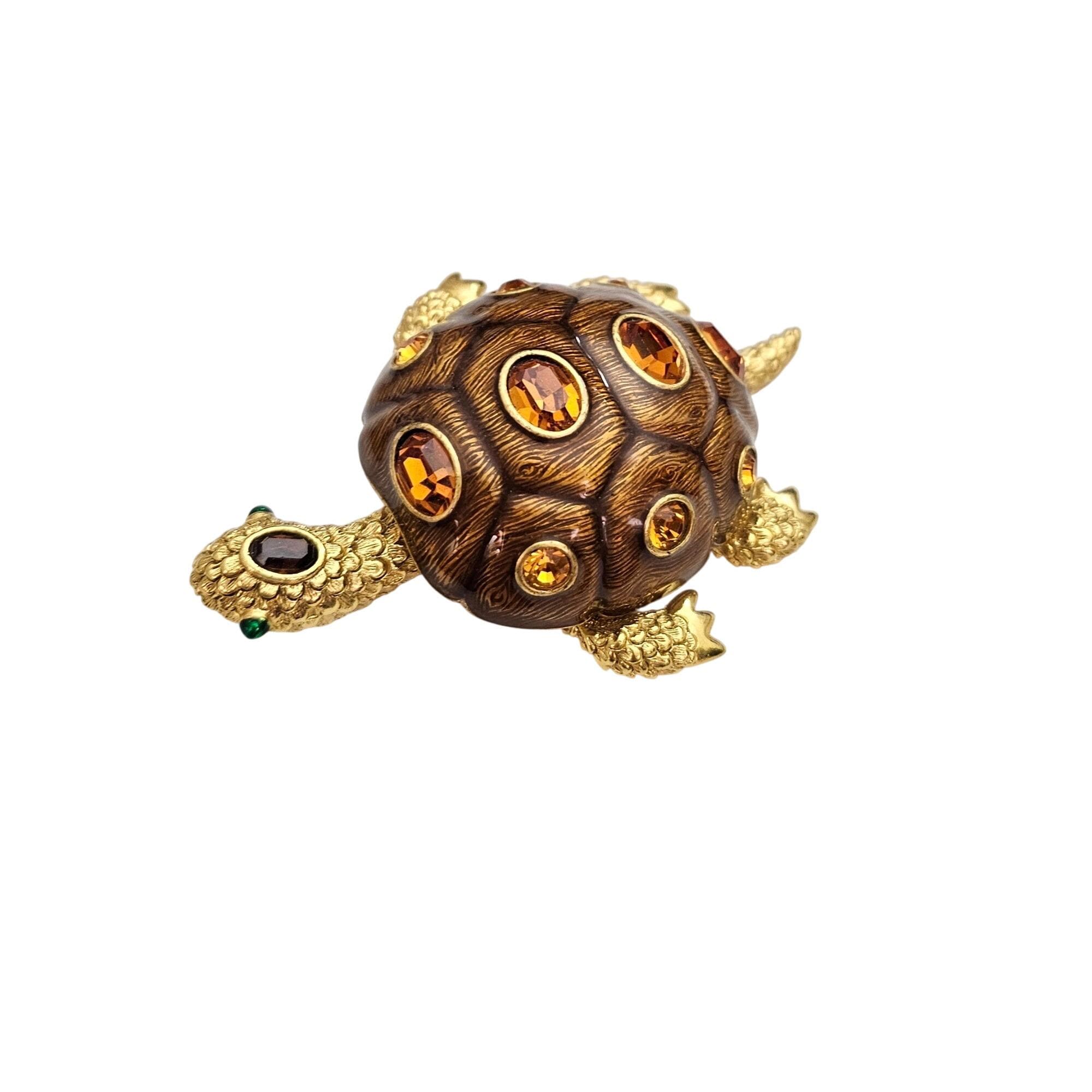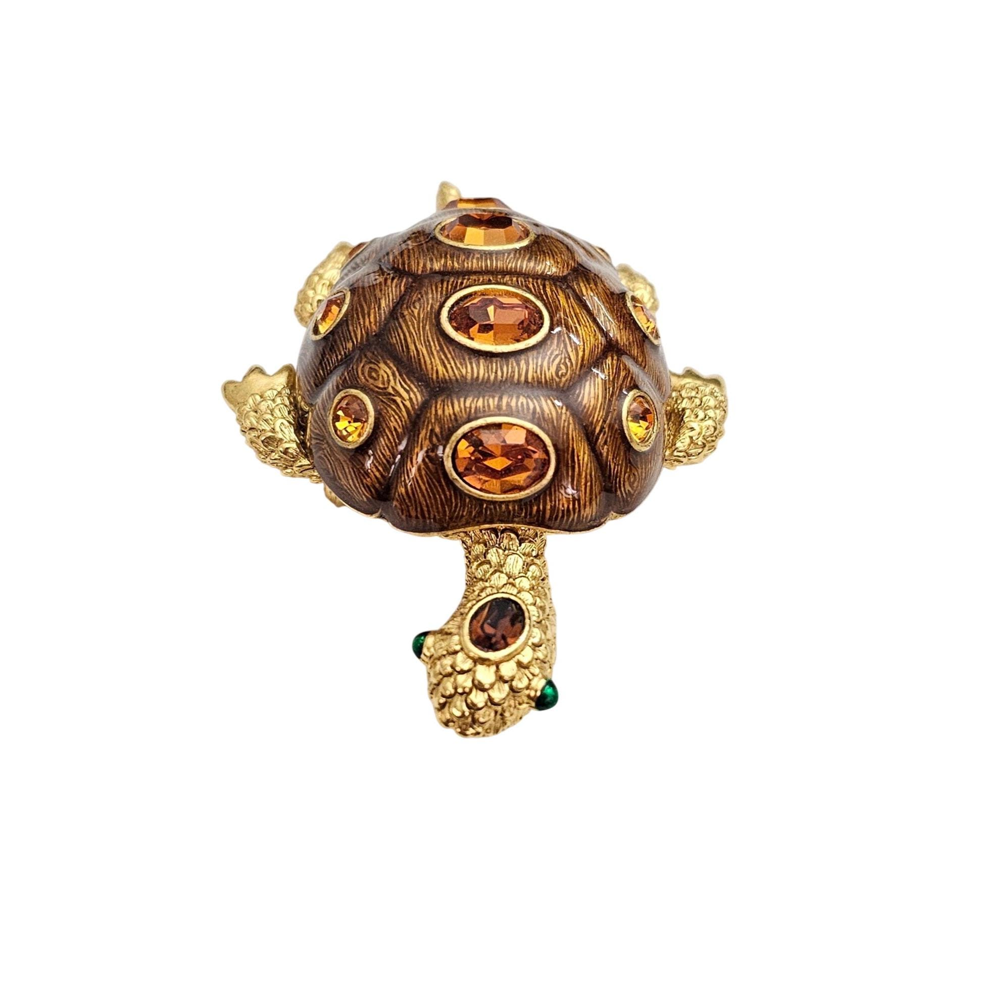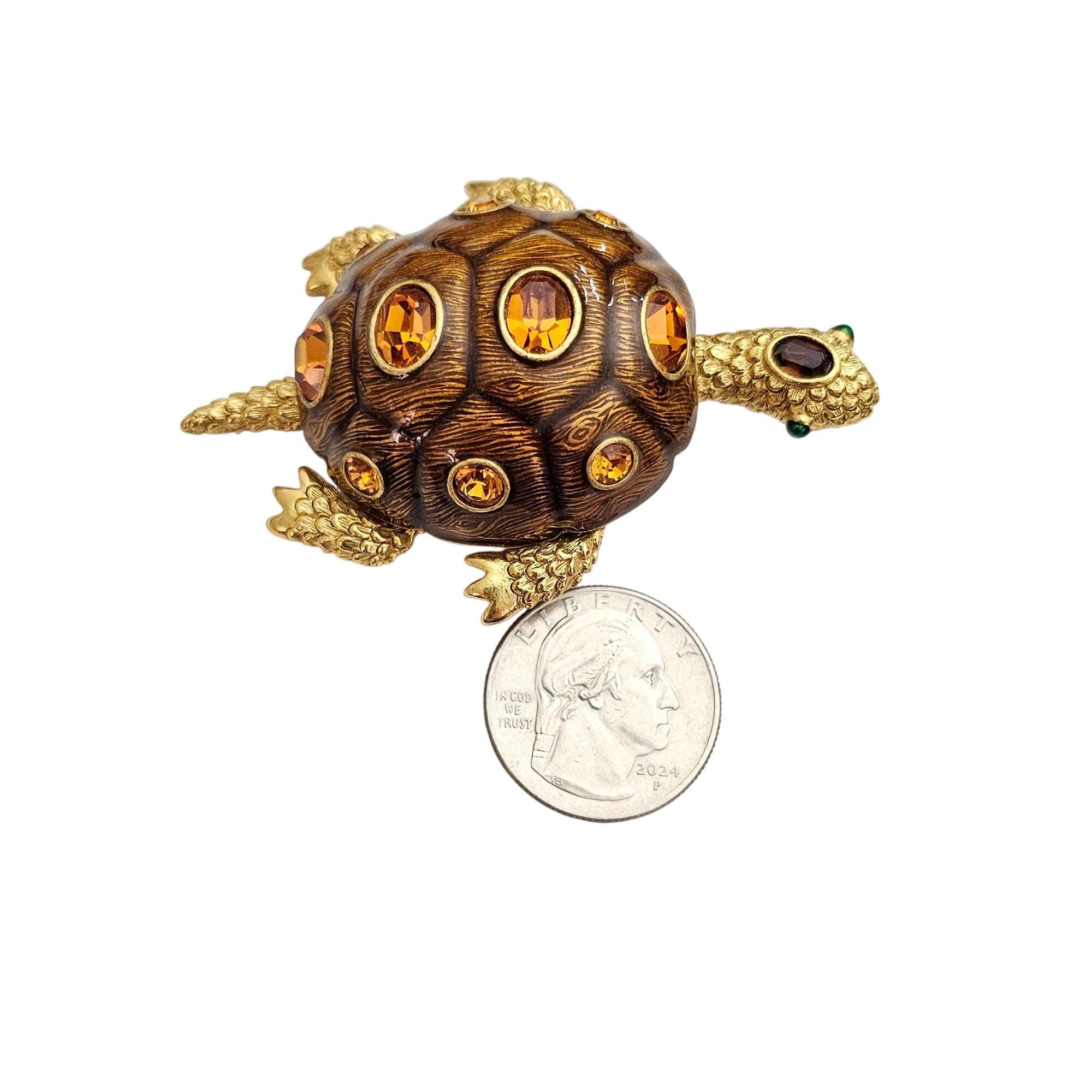 Joan Rivers Turtle Brooch Topaz Purple Rhinestone Pin Signed, J401