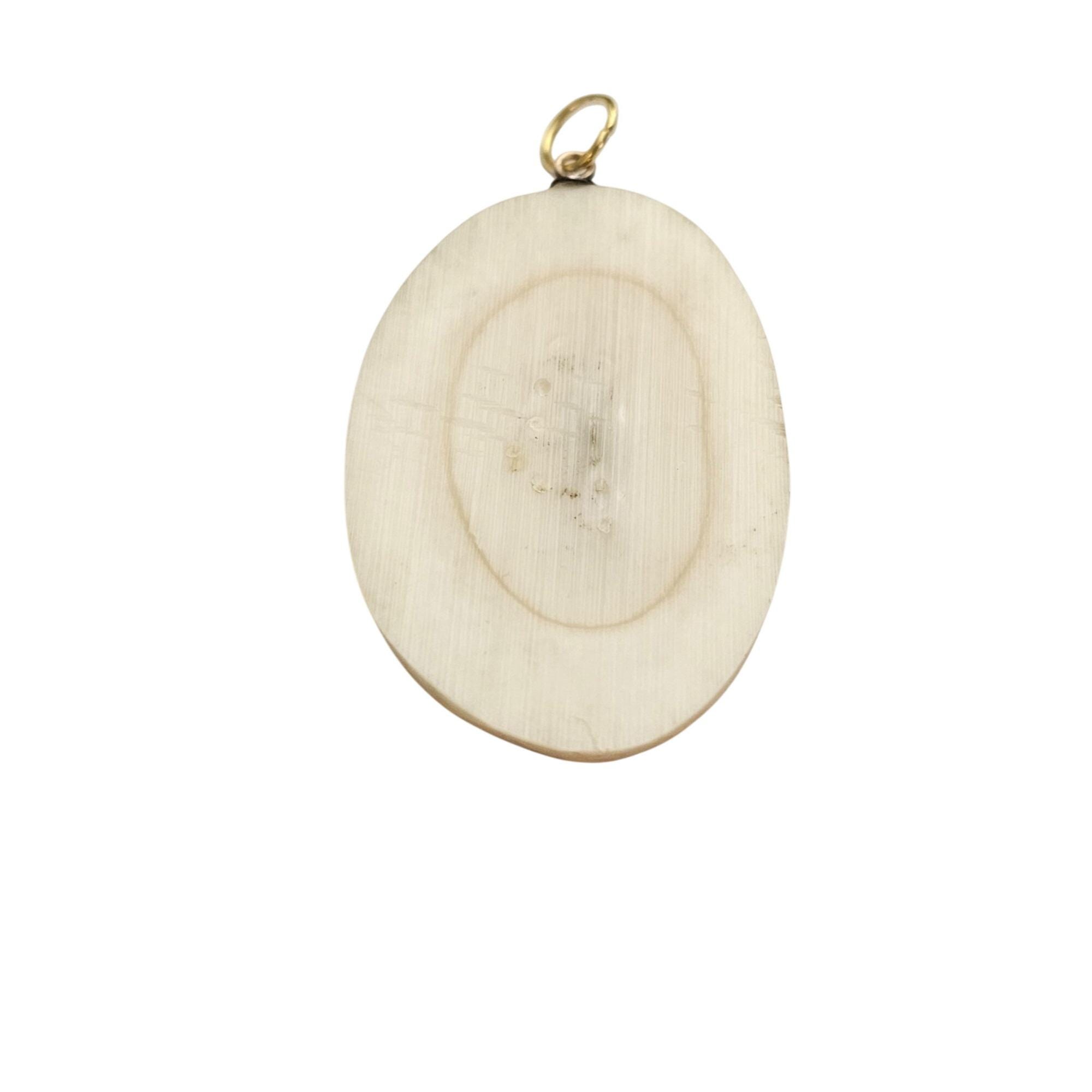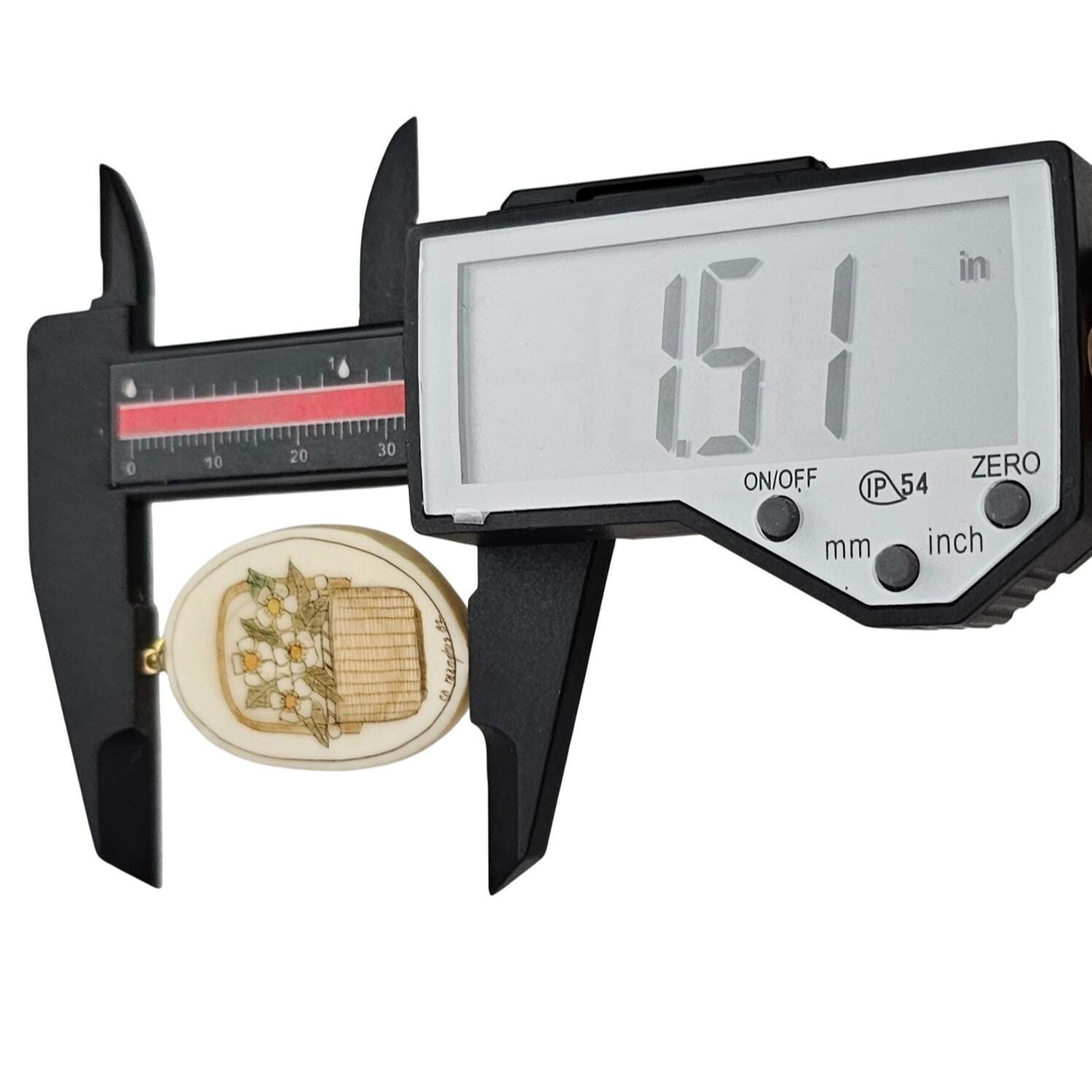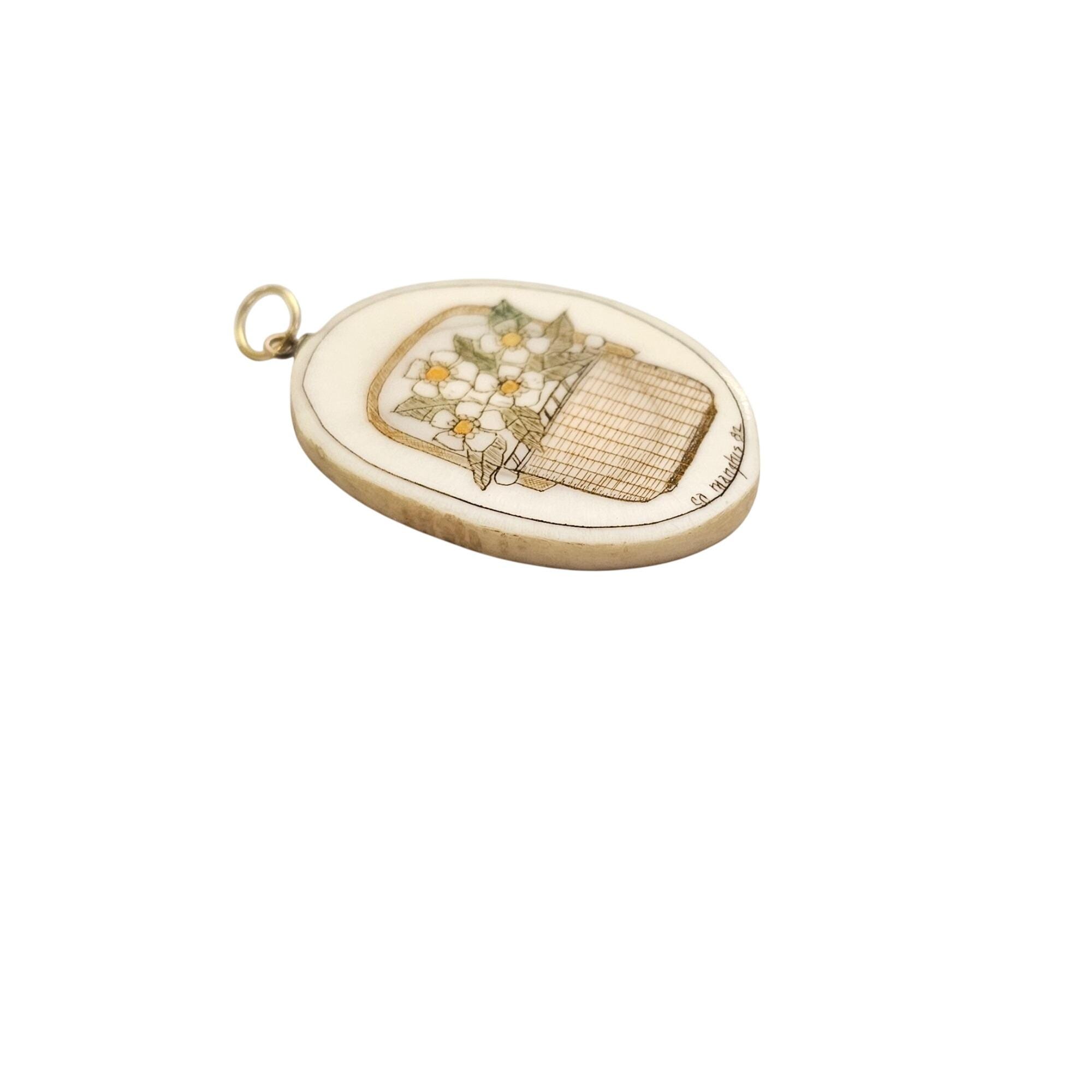 Antler Carved Pendant Basket of Flowers Signed By Artist J365