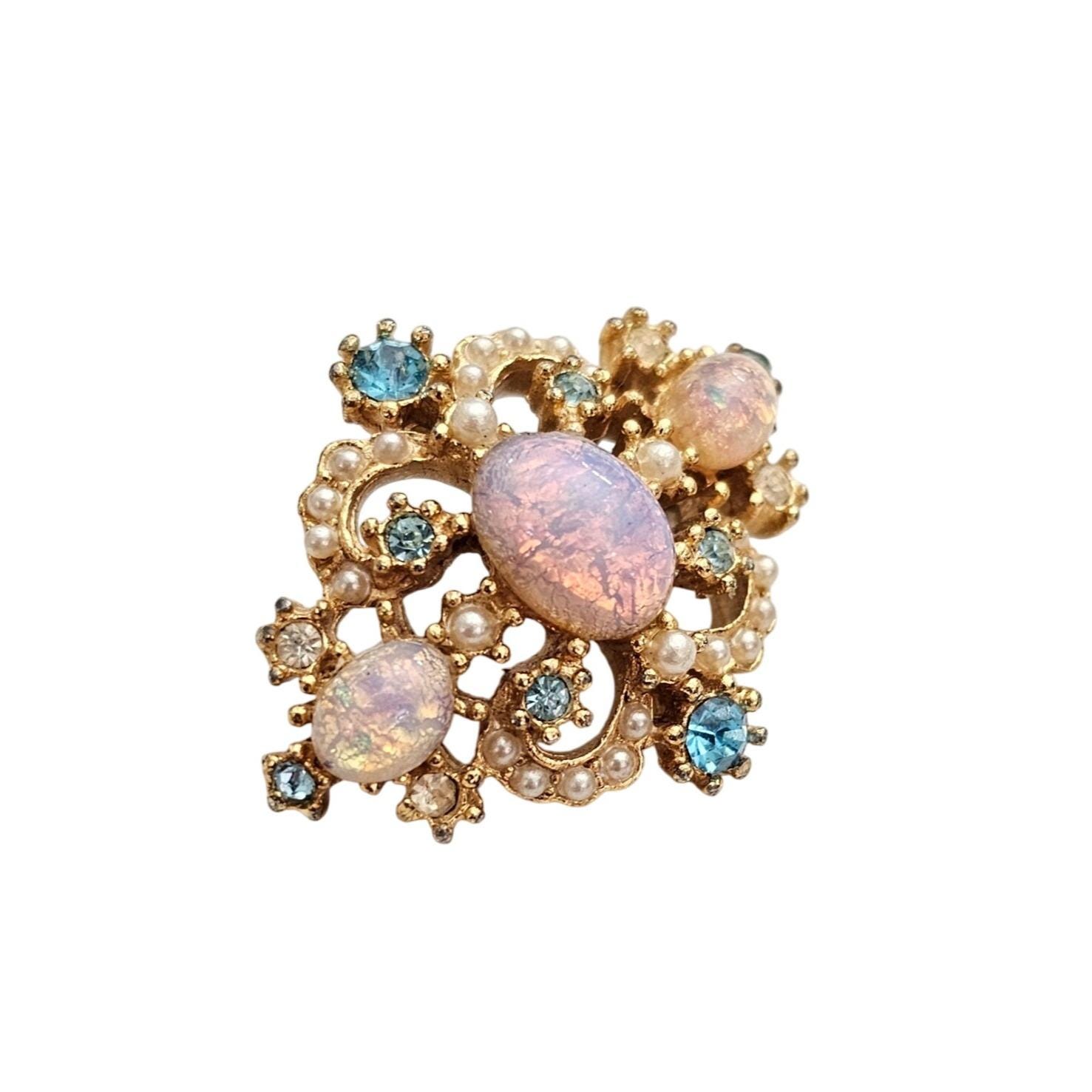 Dragons Breath Cabochon Vintage Blue Rhinestone Fleur Small Pin J368