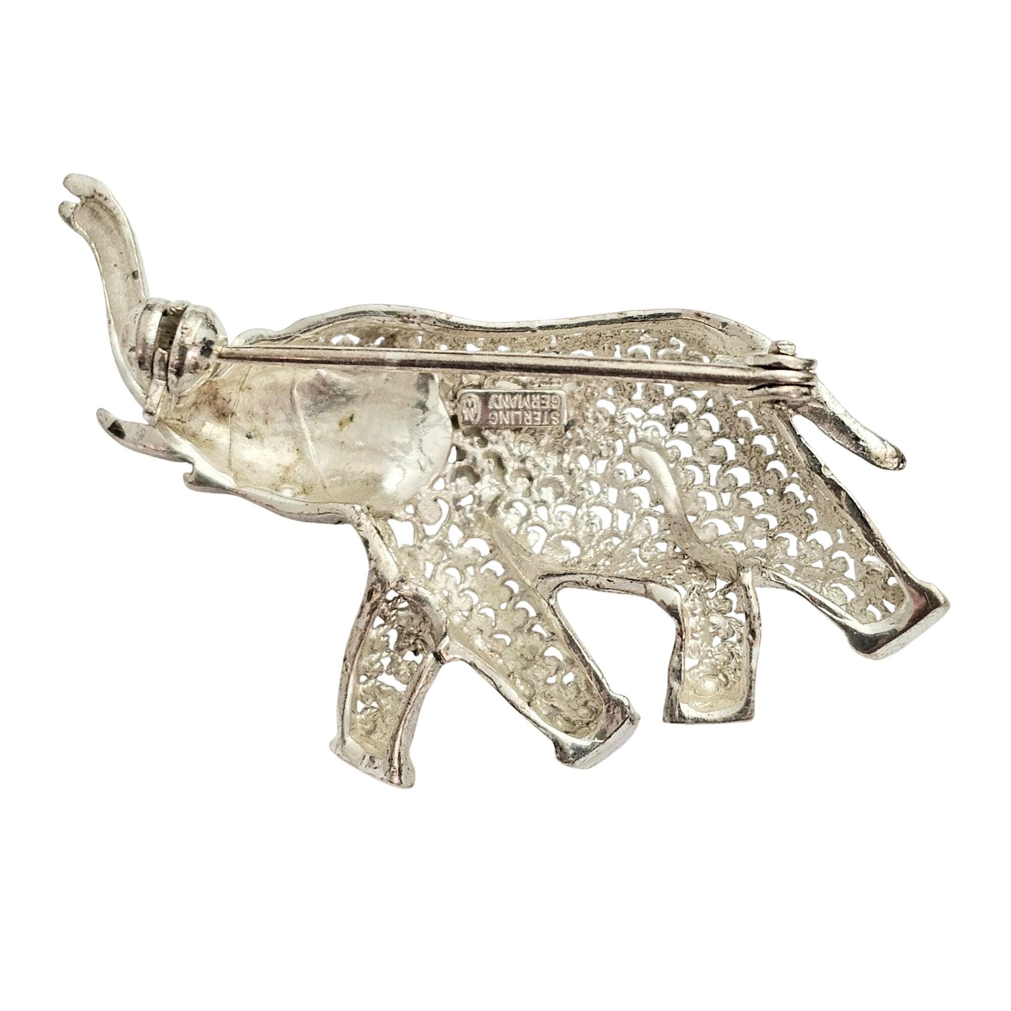 Germany Sterling Filigree Style Elephant Brooch Dimensional Pin J426