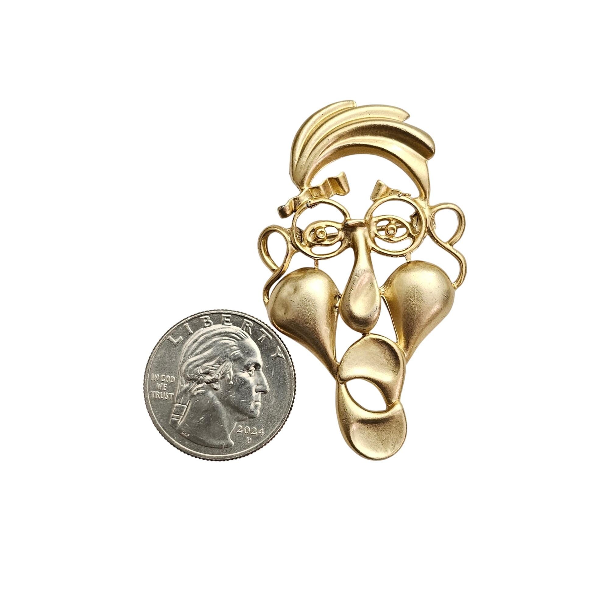 Gold Tone Steam Punk Metal Open Face Man Brooch Whimsical Pin J422