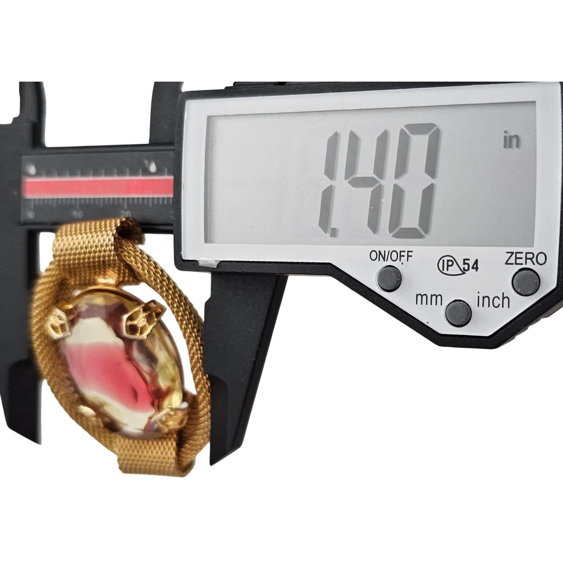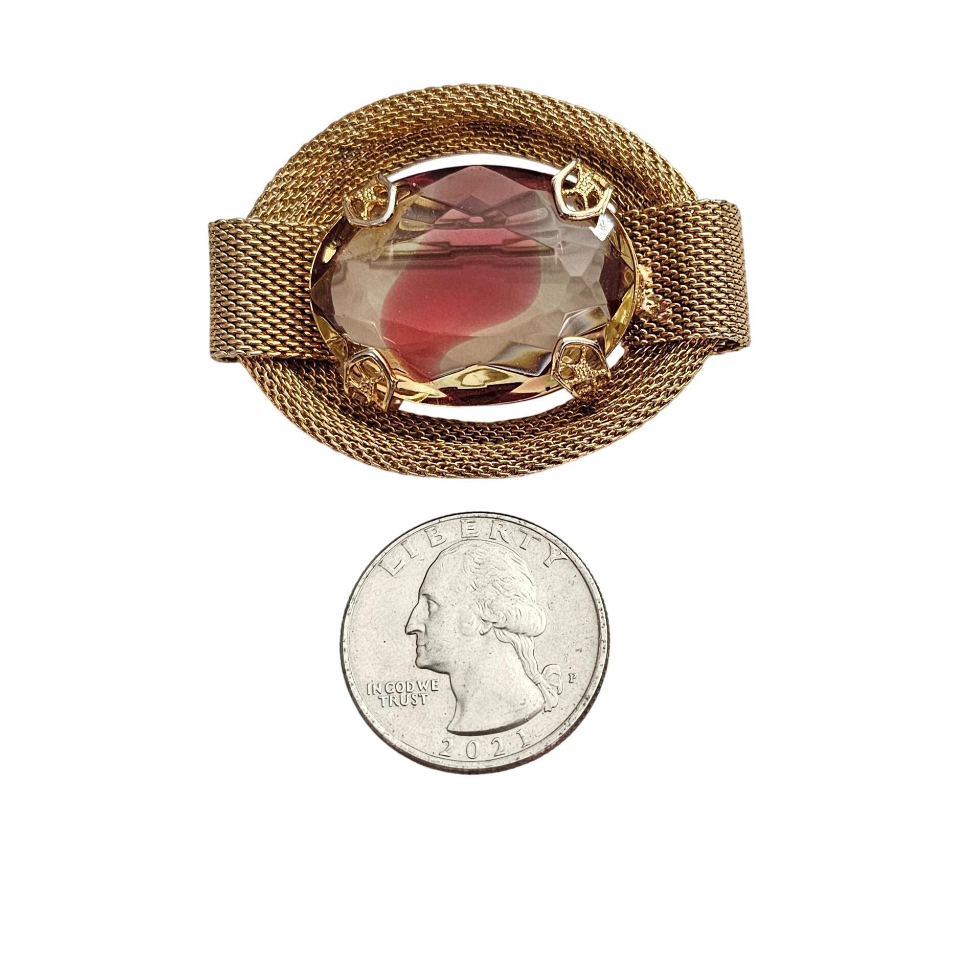 Jonquil Pink Givre Oval Glass Rhinestone Brooch, Mesh Frame Pin J362