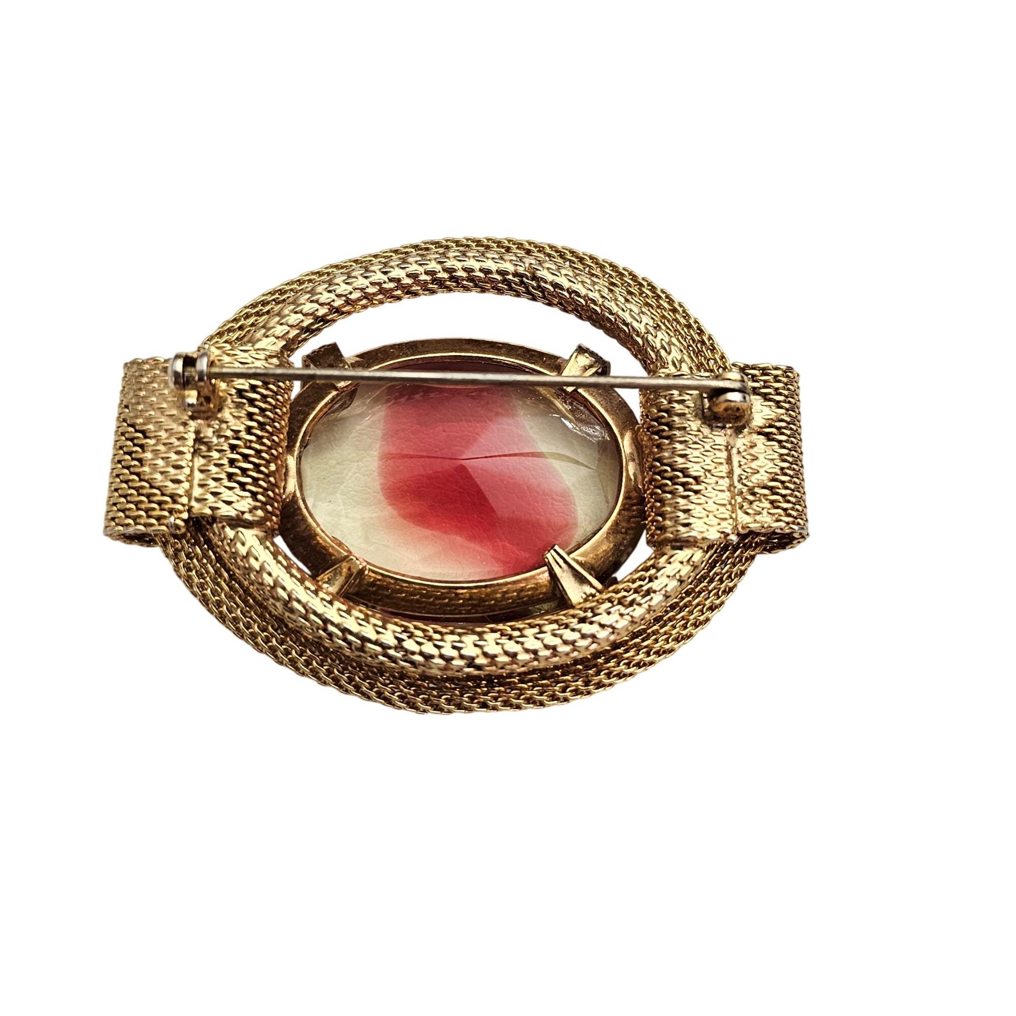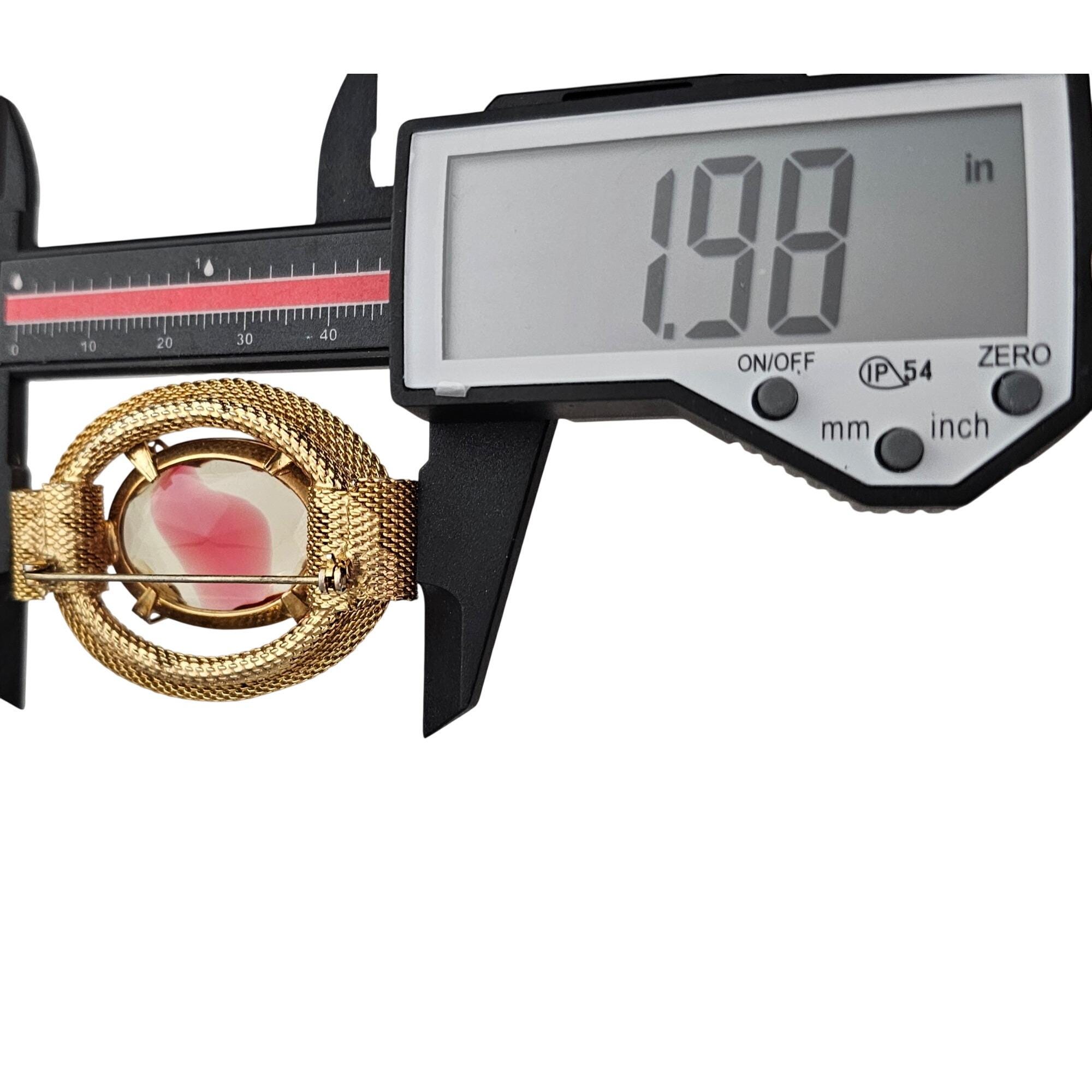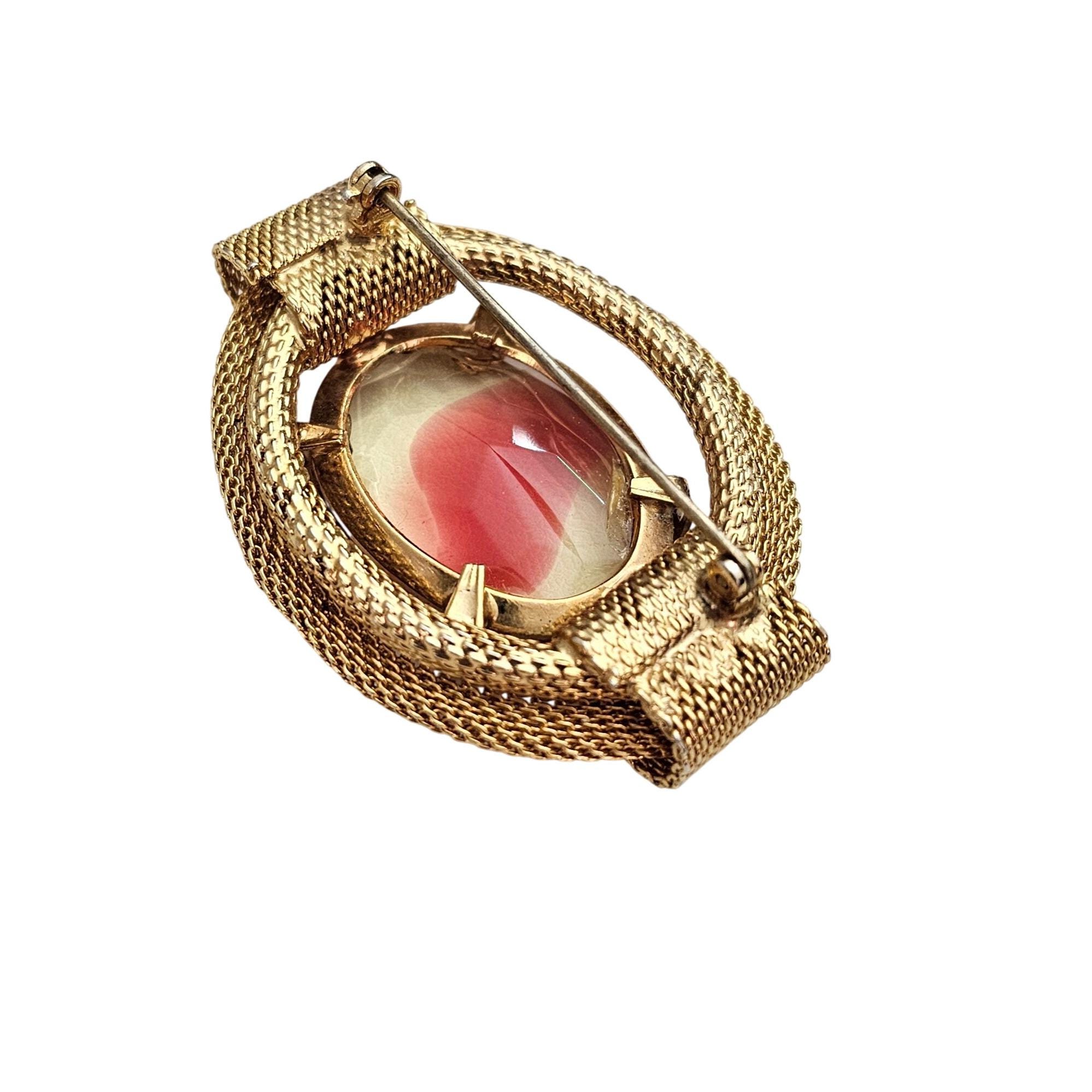 • Jonquil Pink Givre Mesh Frame Oval Brooch