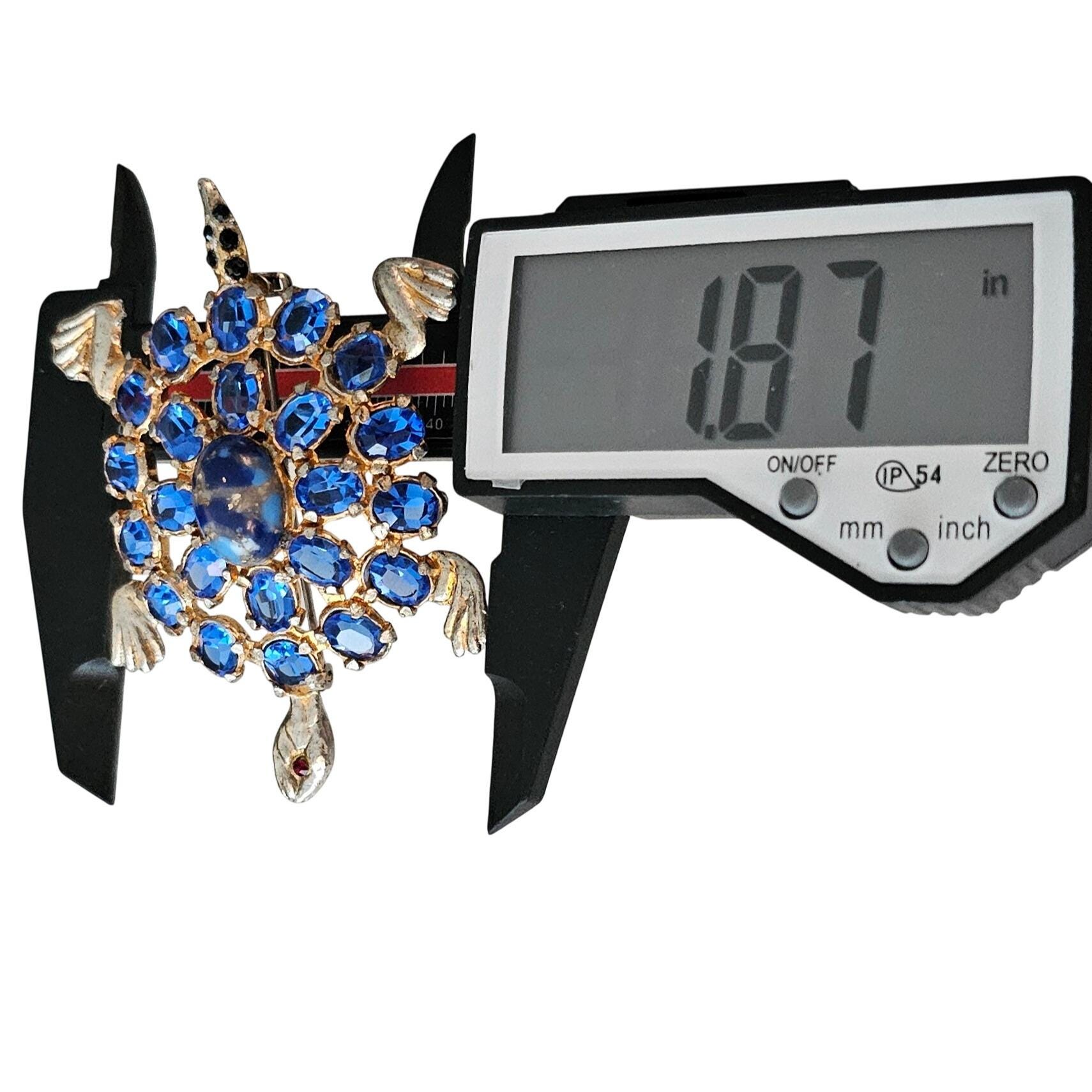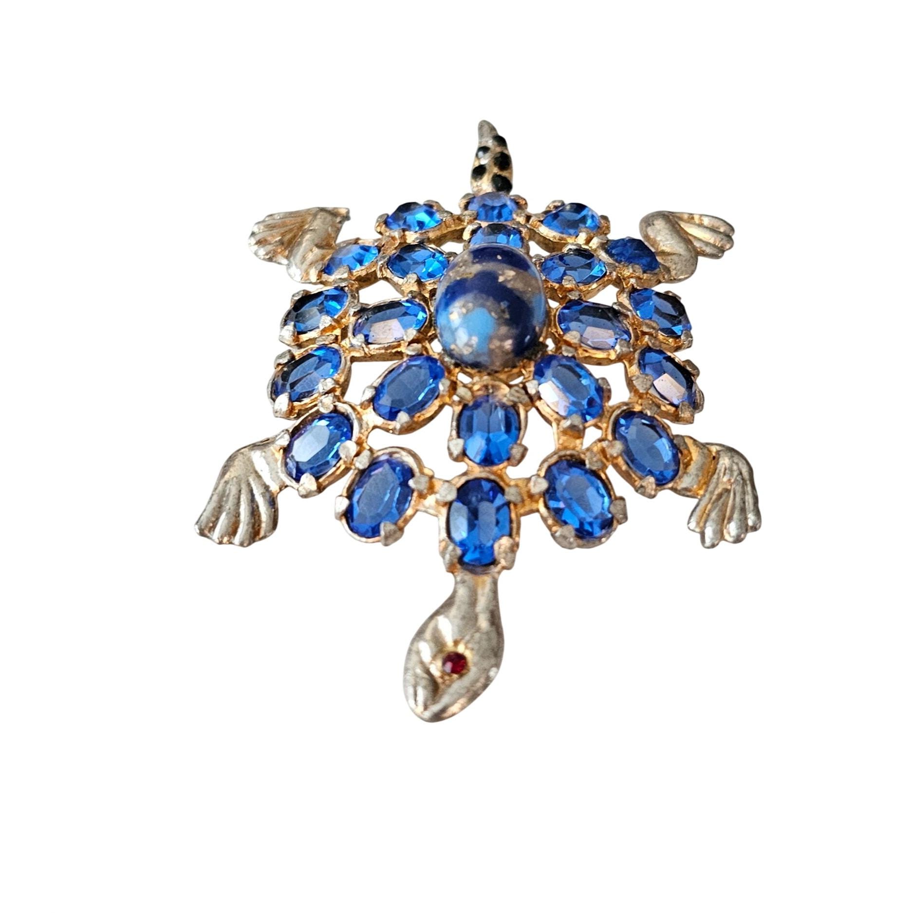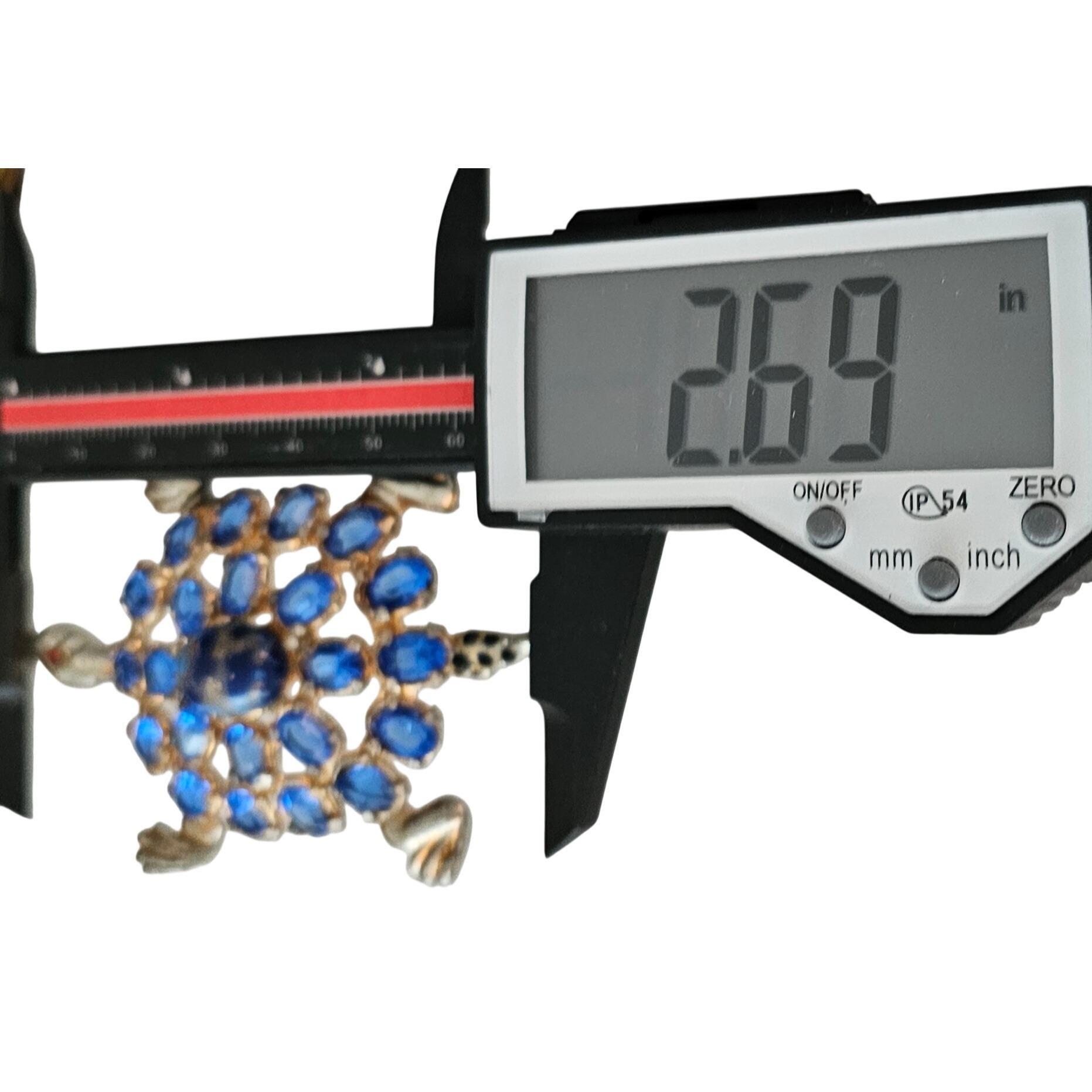 Pot Metal Brooch Blue Open Back Rhinestone Turtle Pin J363