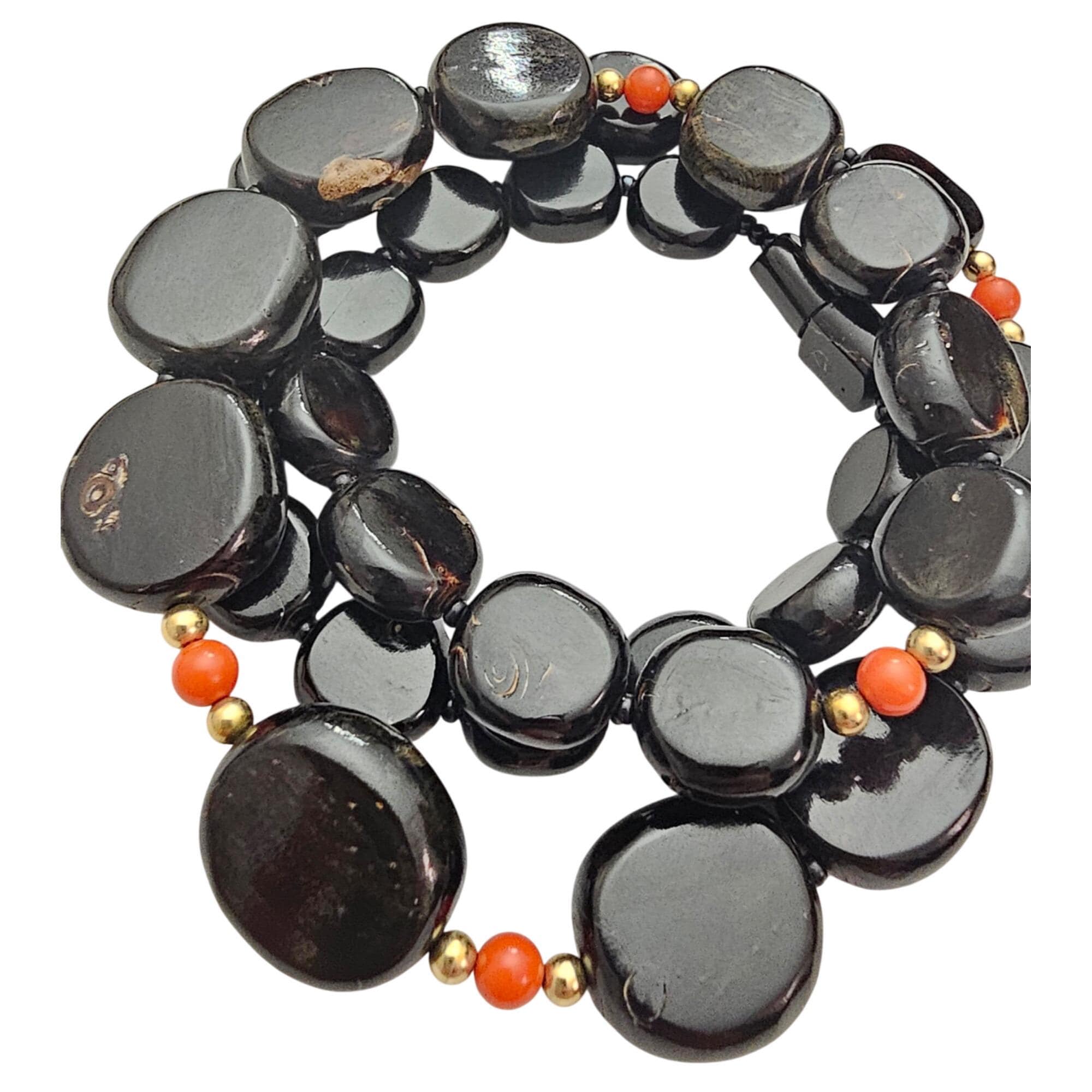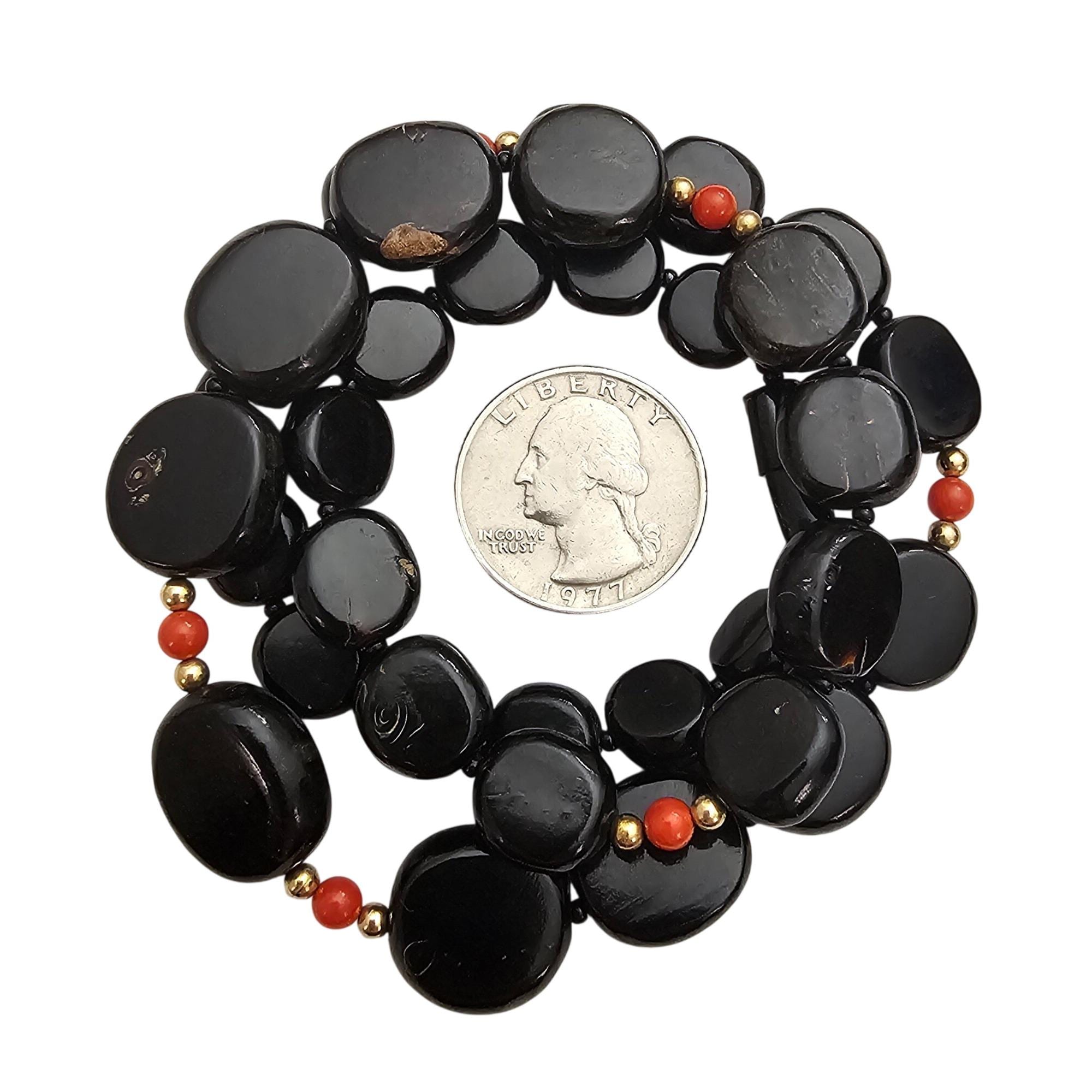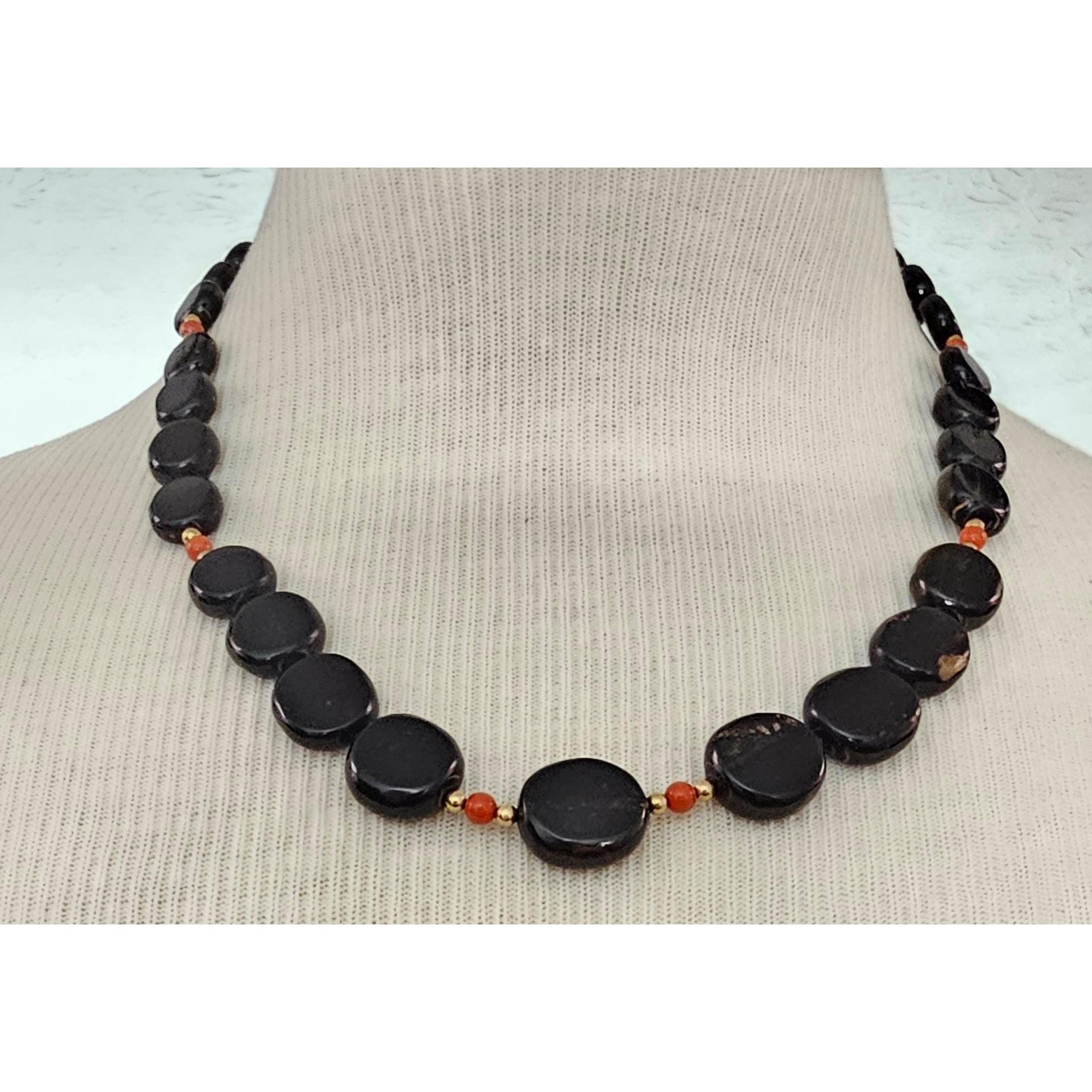 Black Coral Gold Filled Bead Necklace Graduated Strand Screw Barrel Clasp J460