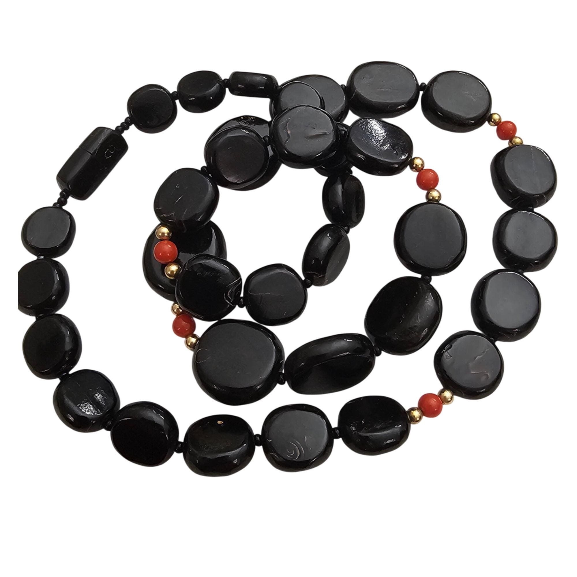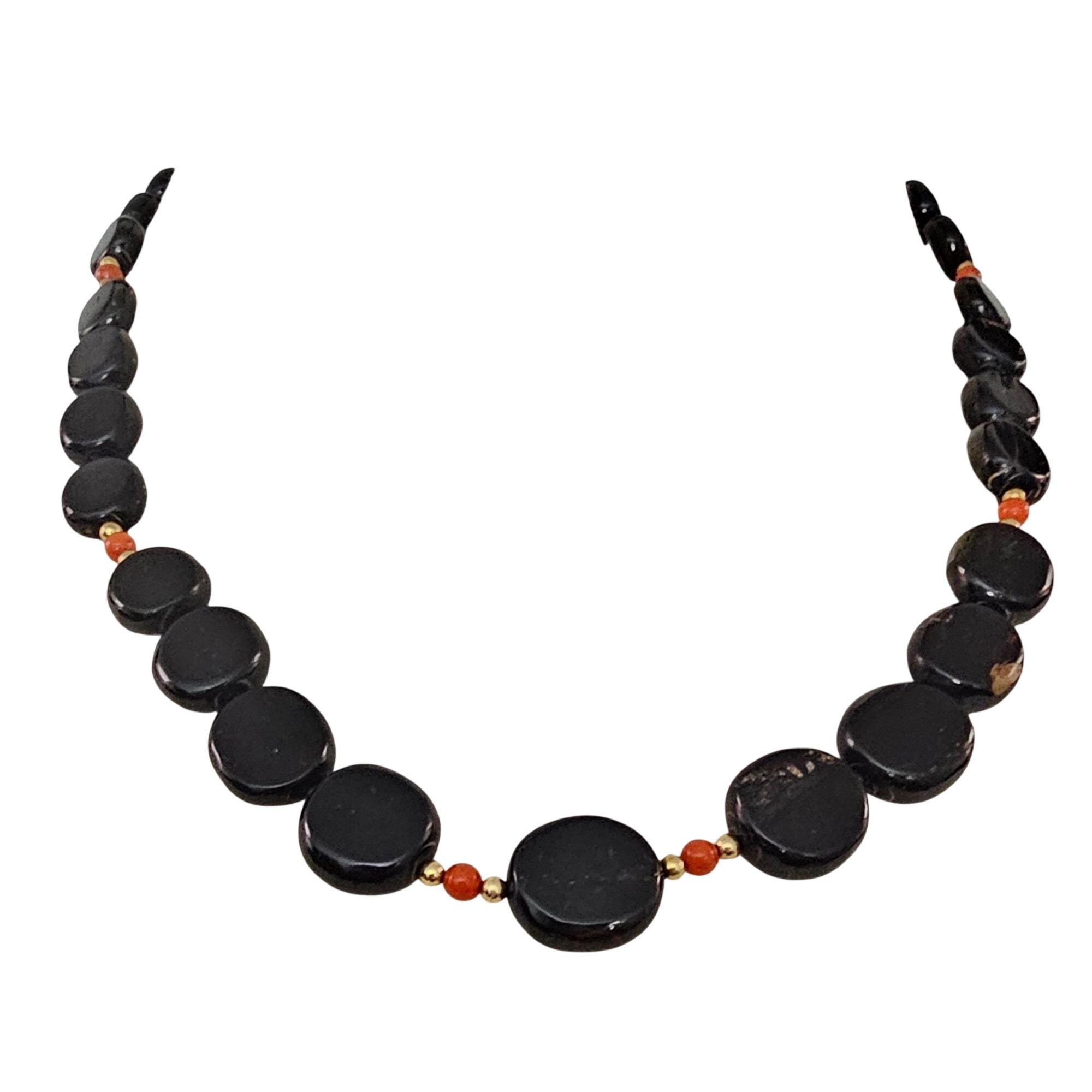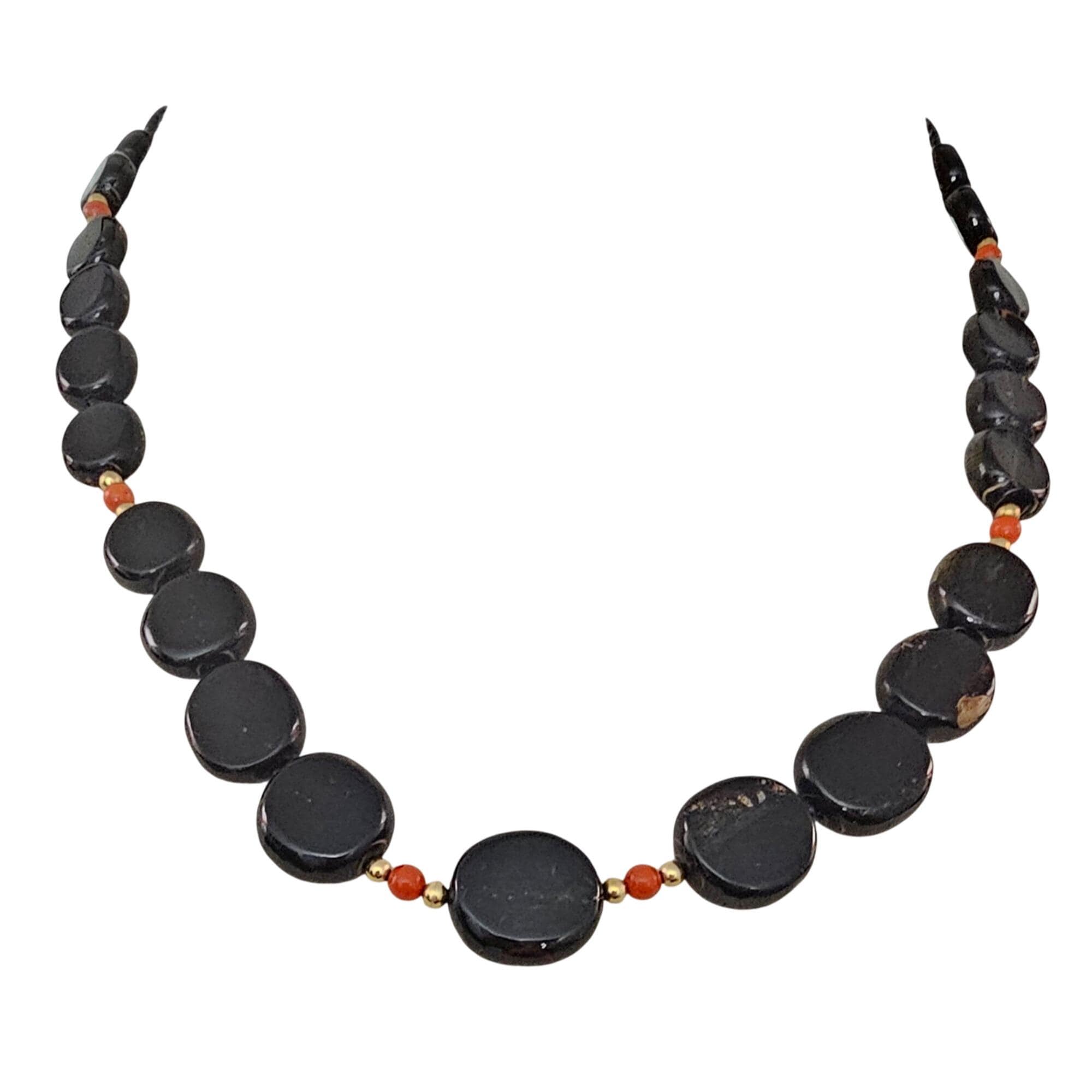 Black Coral Gold Filled Bead Necklace Graduated Strand Screw Barrel Clasp J460