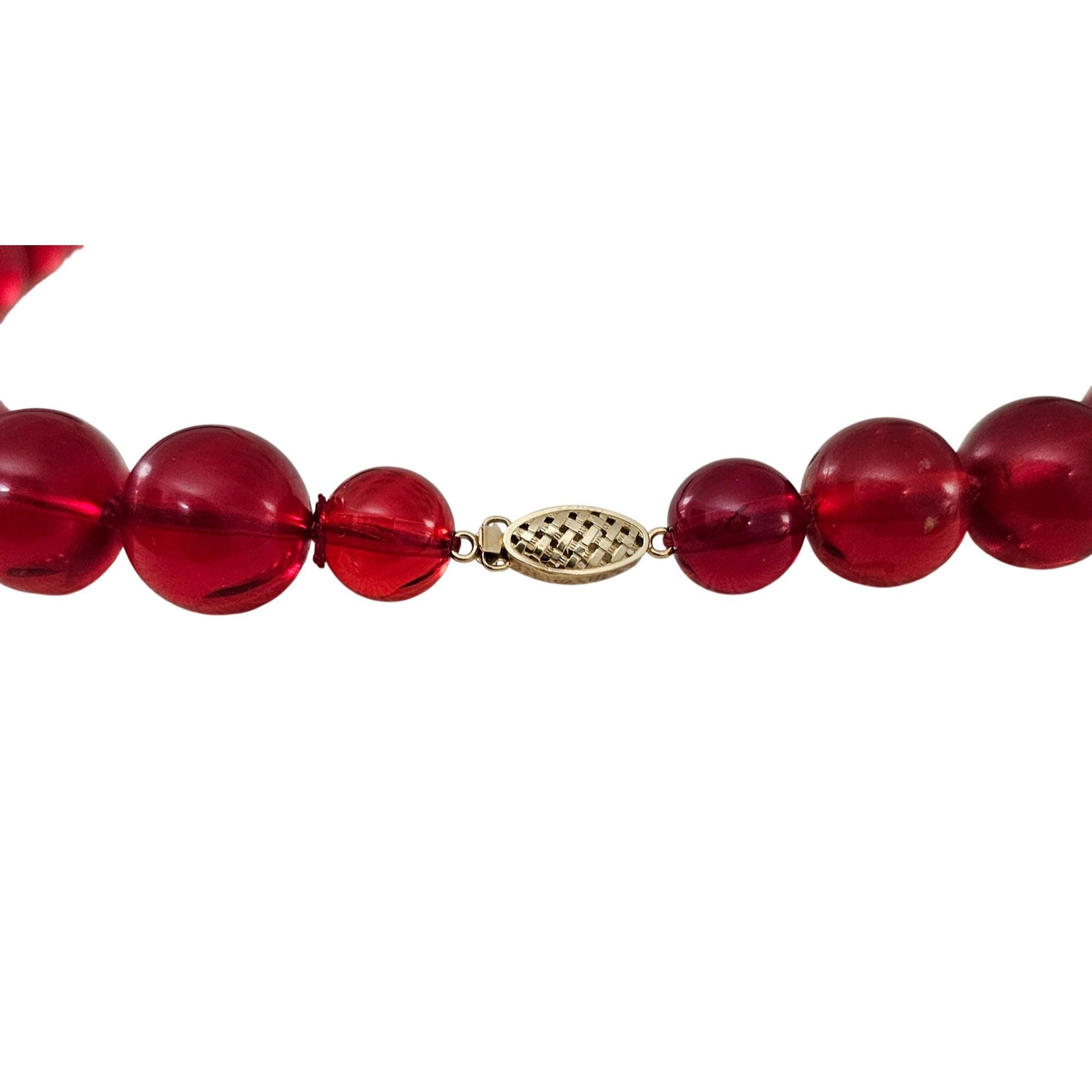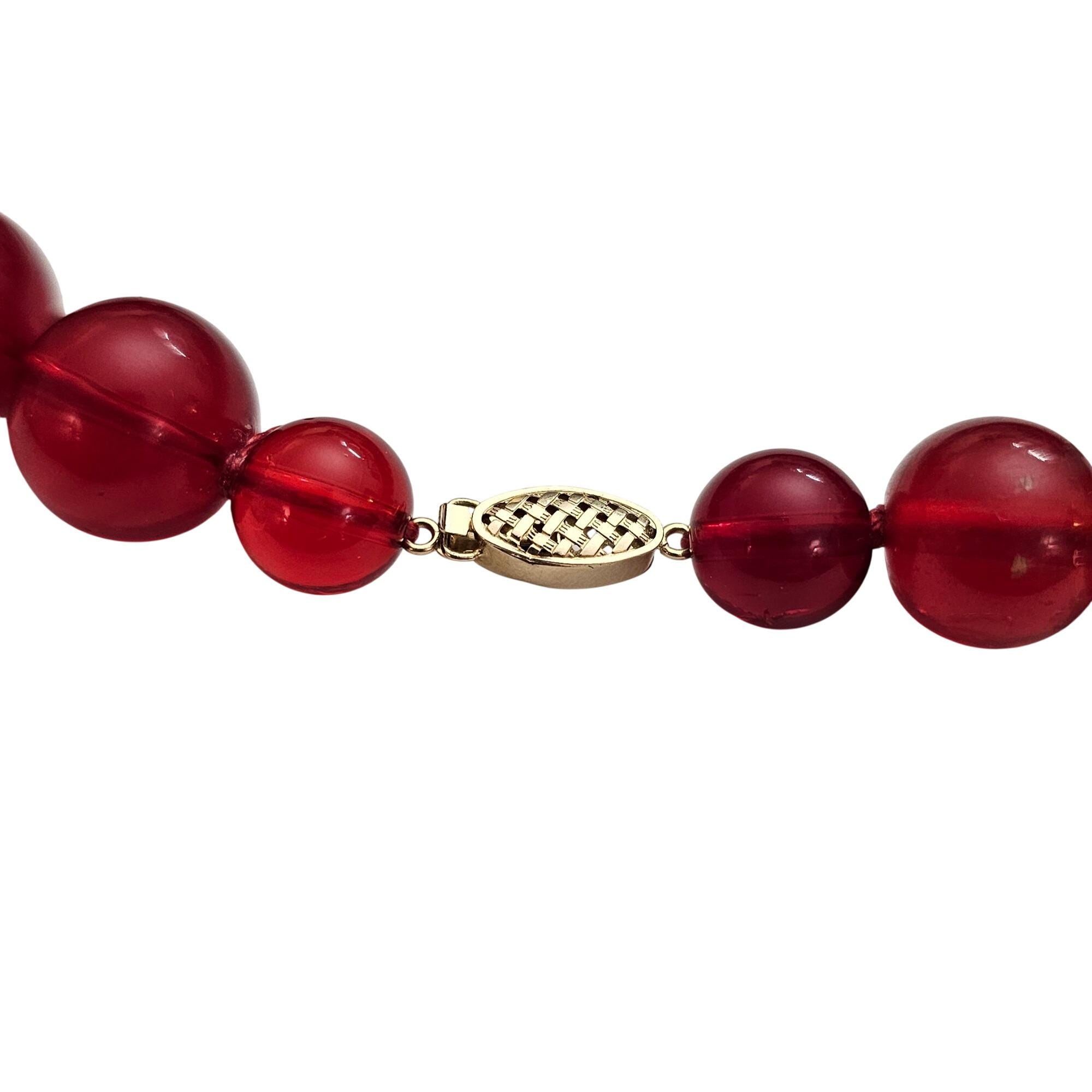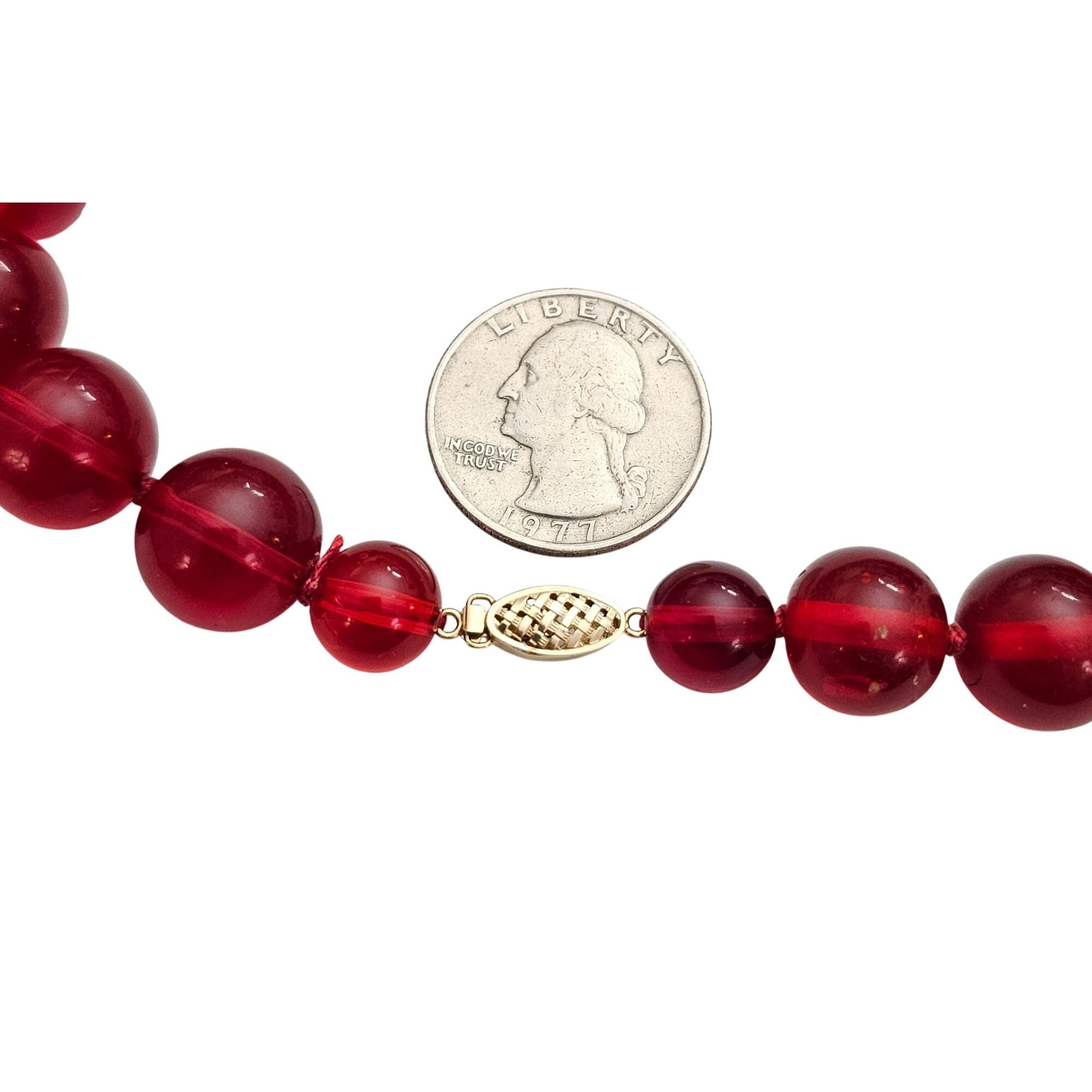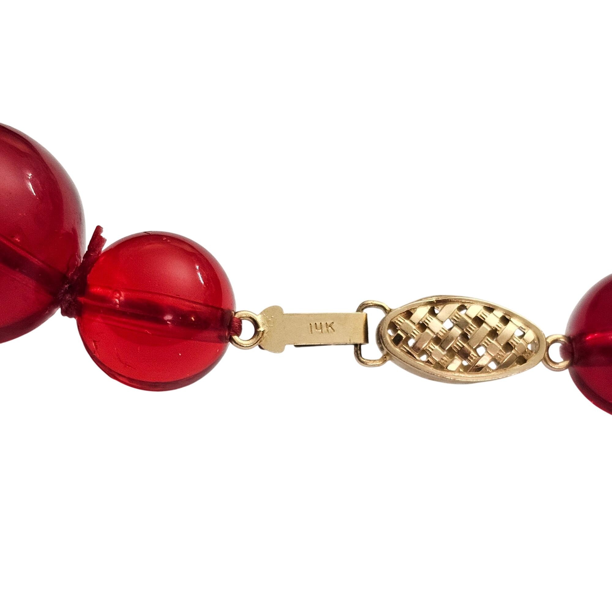Cherry Amber and Lucite Knotted Bead Strand 14K Gold Clasp 22 inch J430
