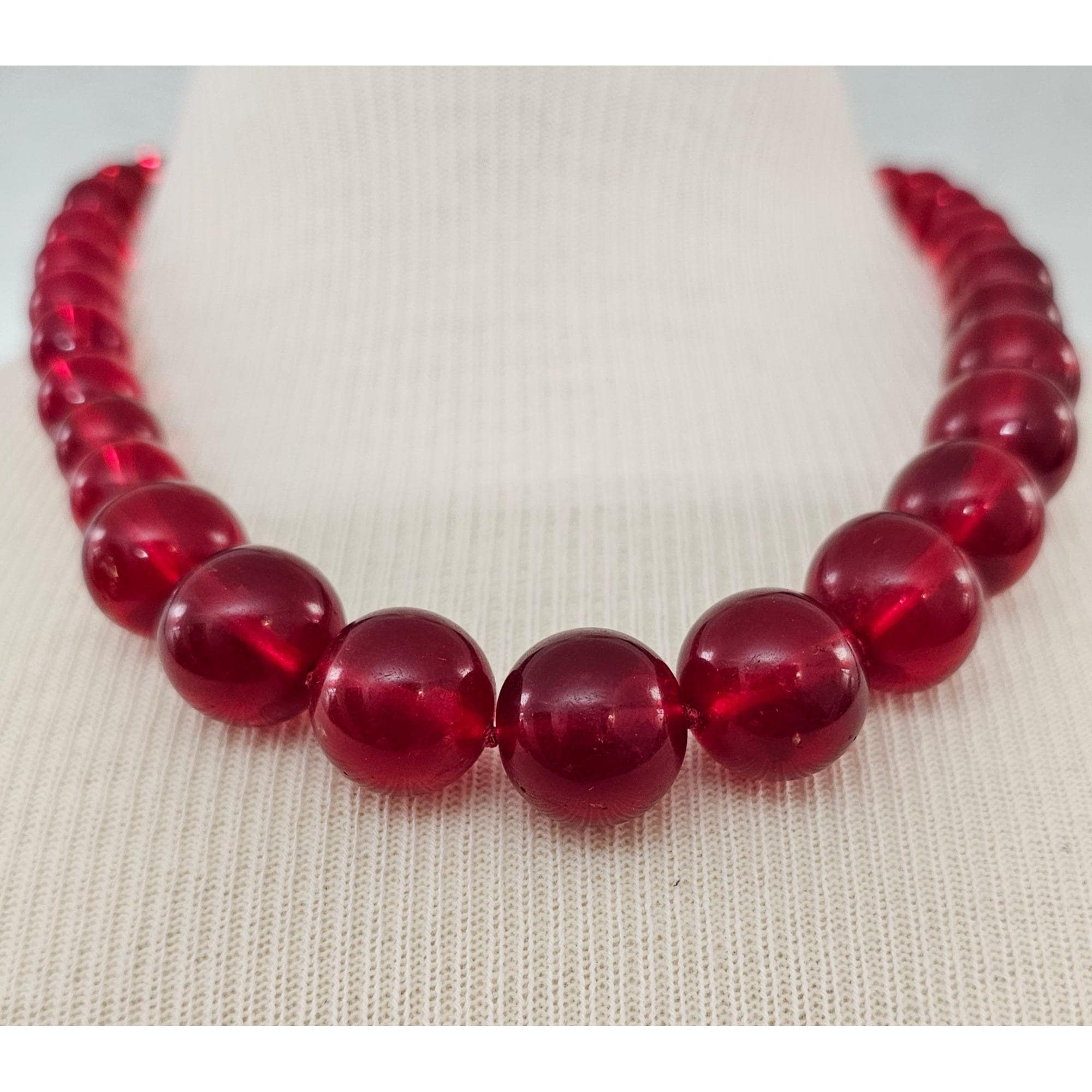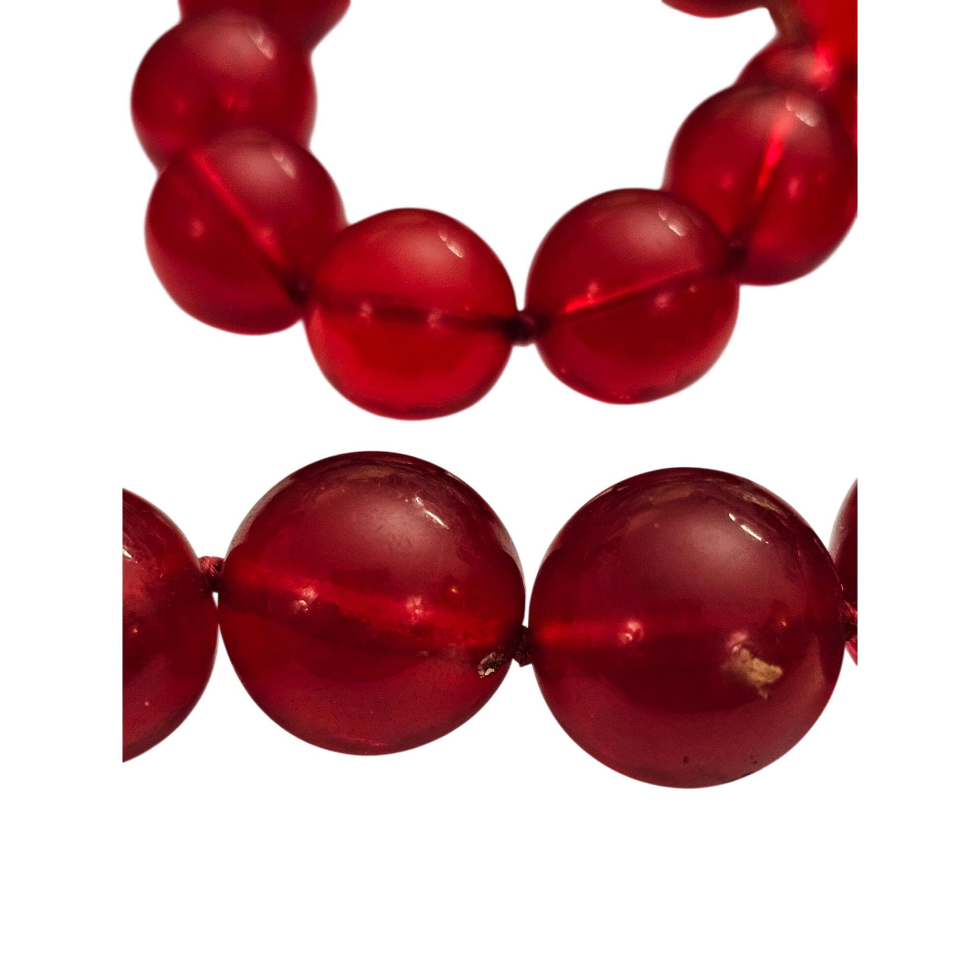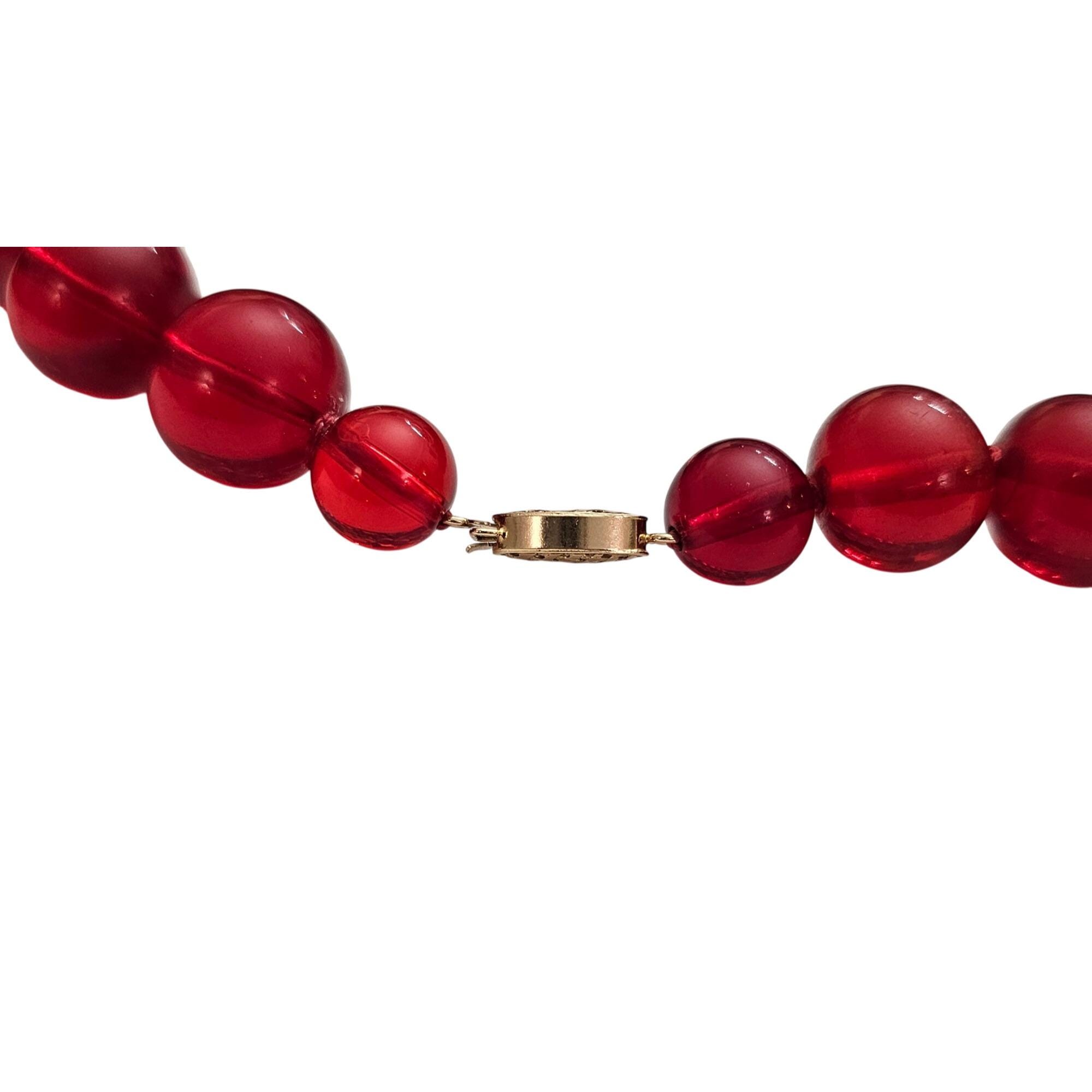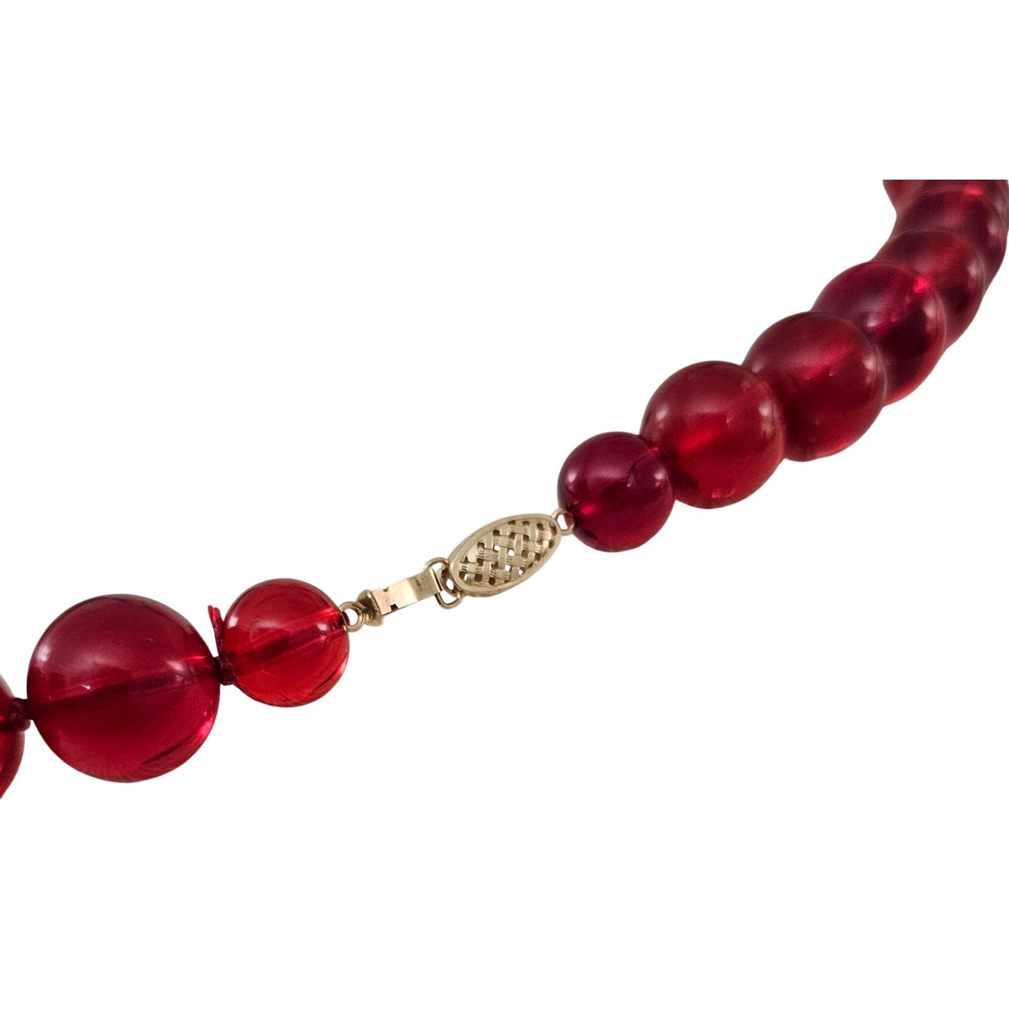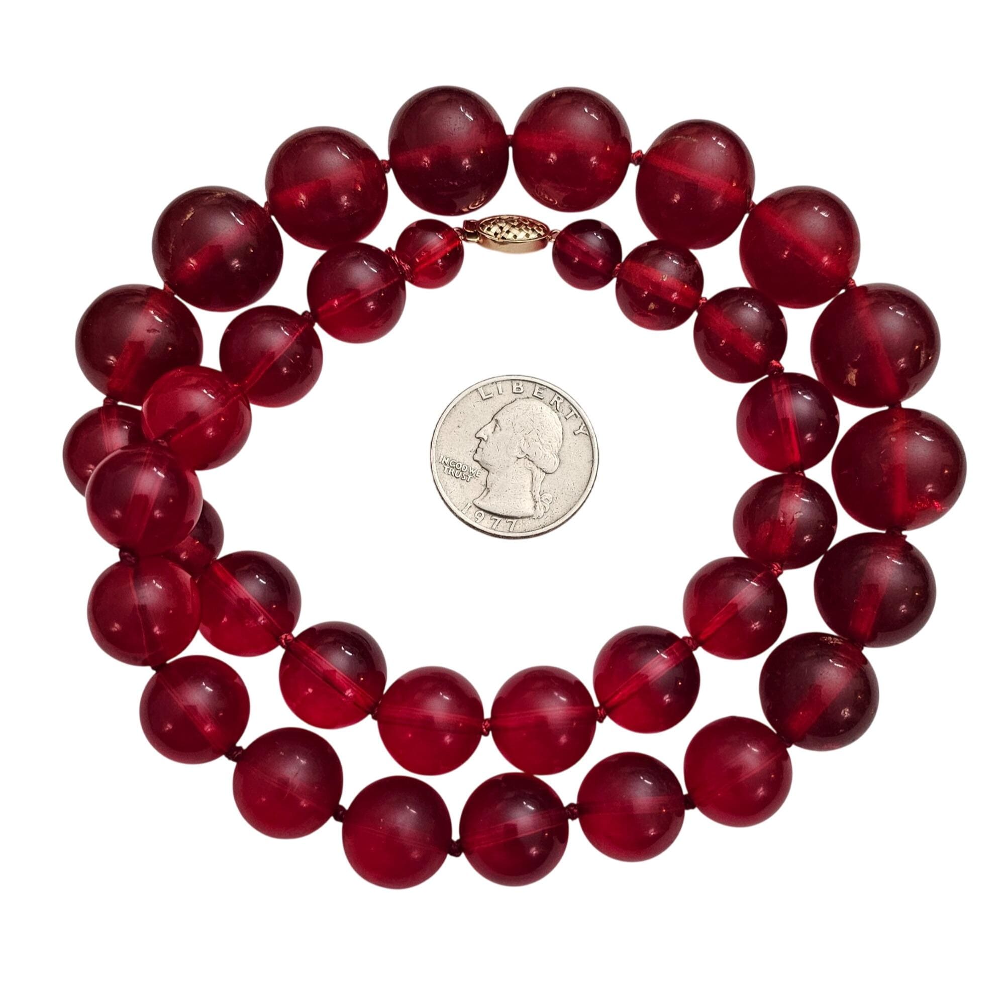 Cherry Amber and Lucite Knotted Bead Strand 14K Gold Clasp 22 inch J430