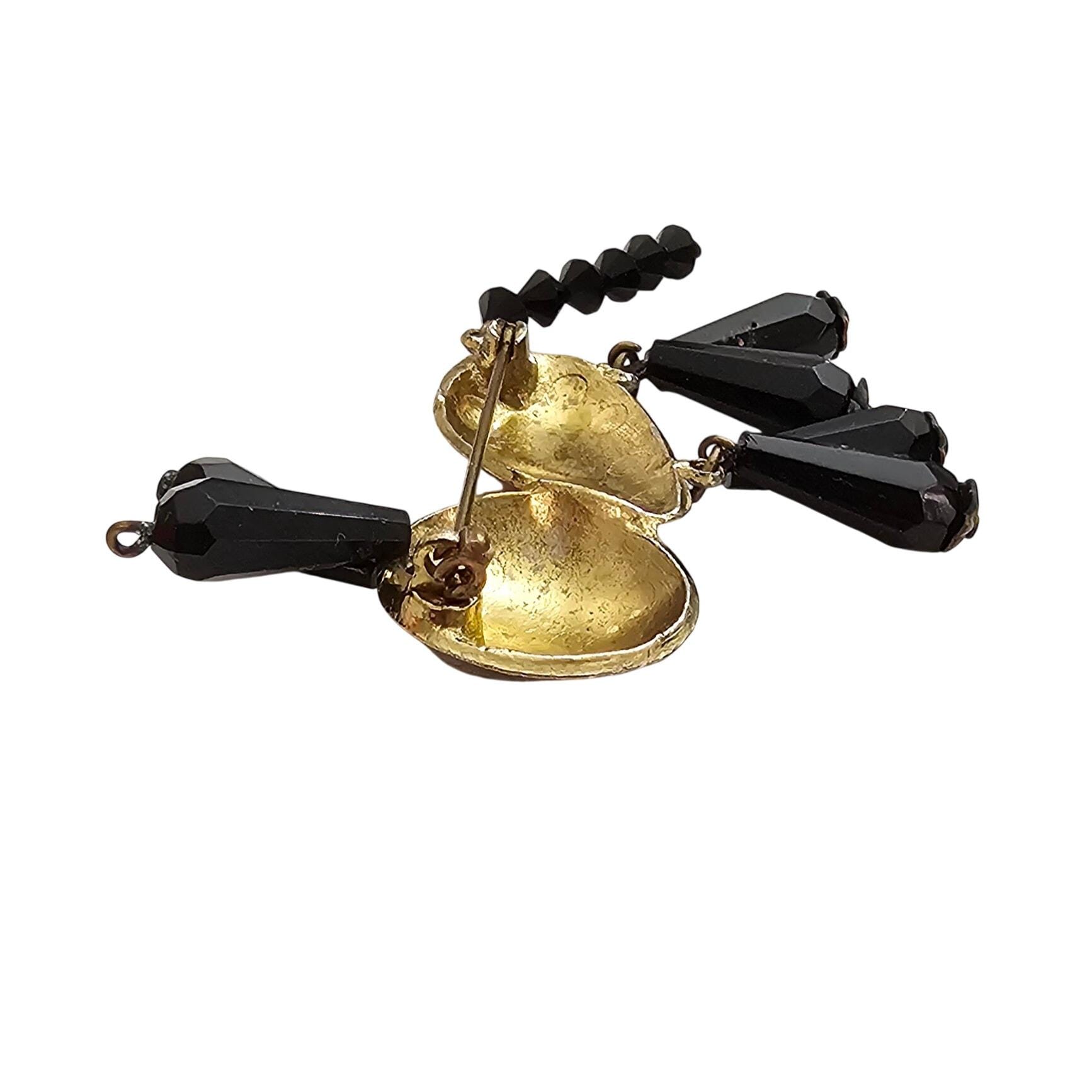 Glass Black Bead Articulated Cat Brooch 1940’s-50’s Animal Pin J459