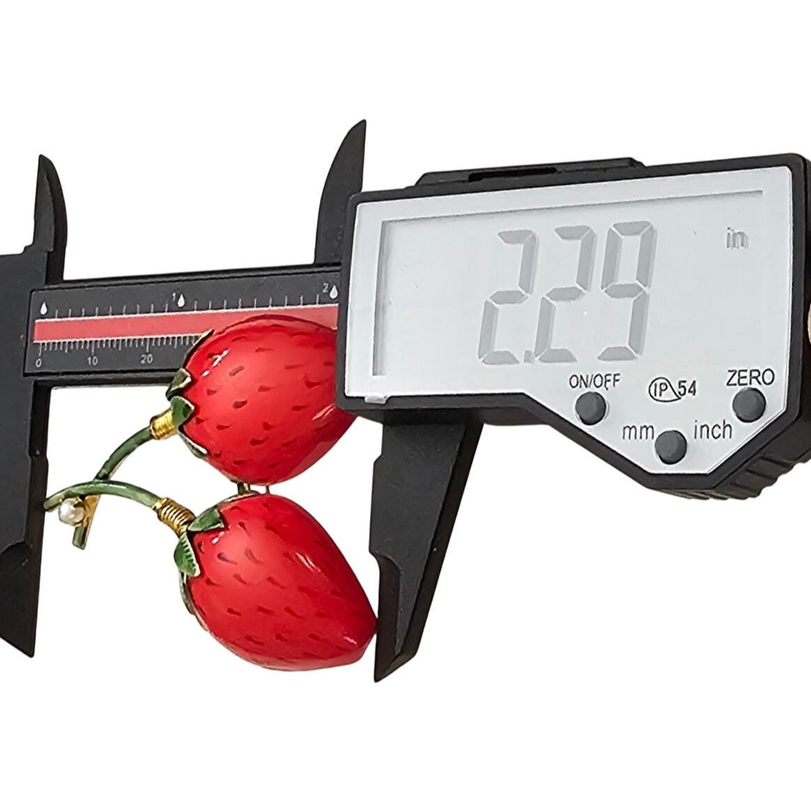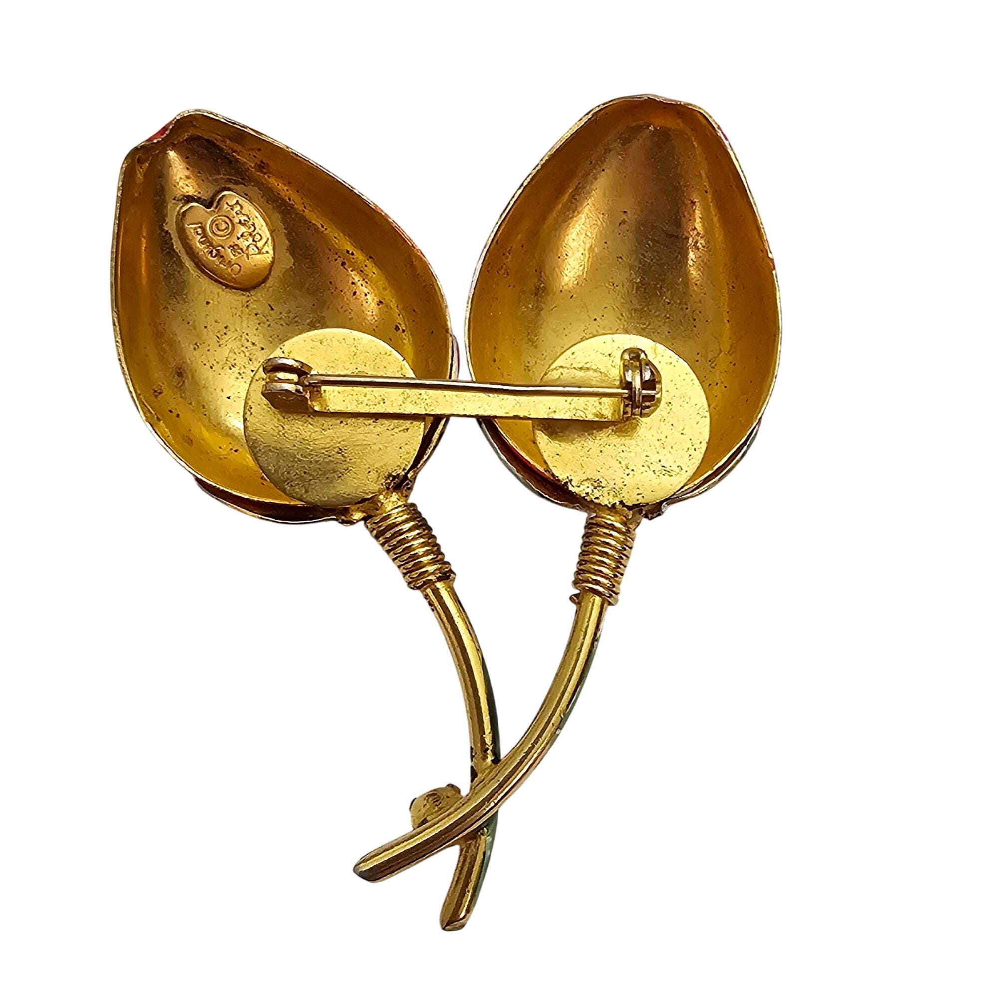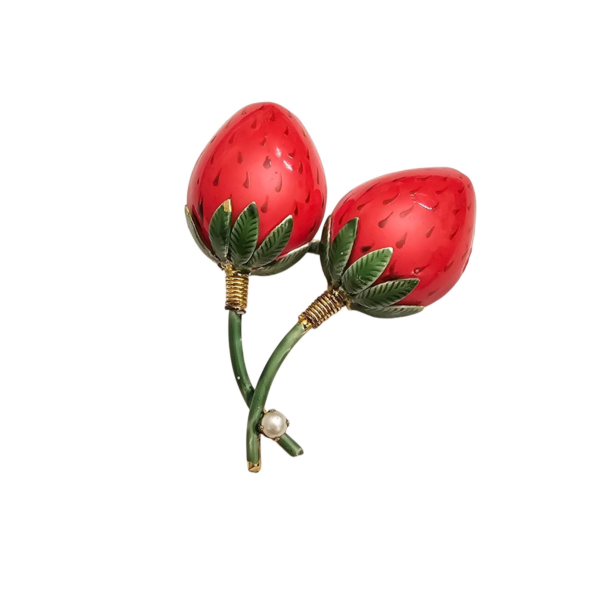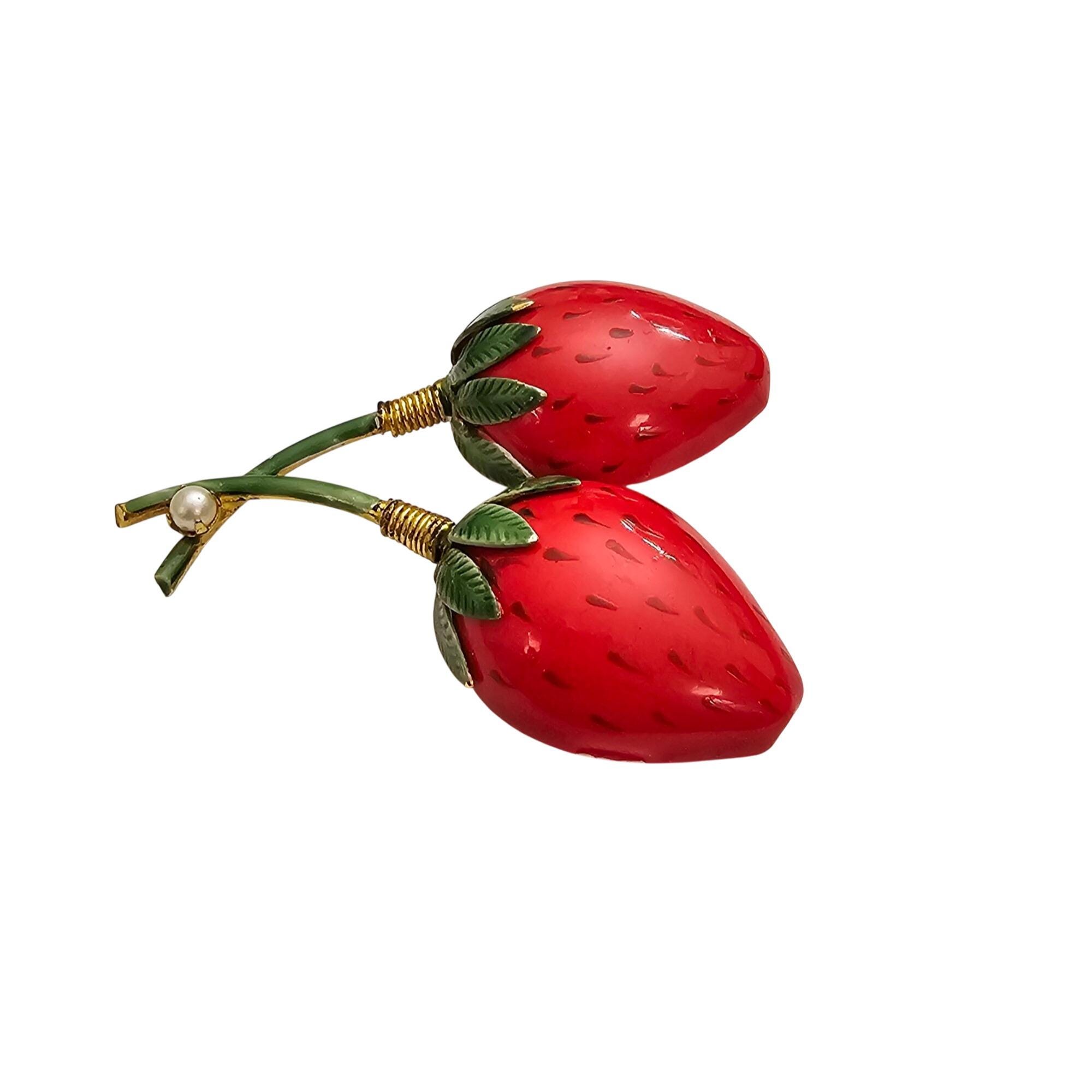 Original By Robert Red Green Enamel Strawberries Brooch Signed, J463