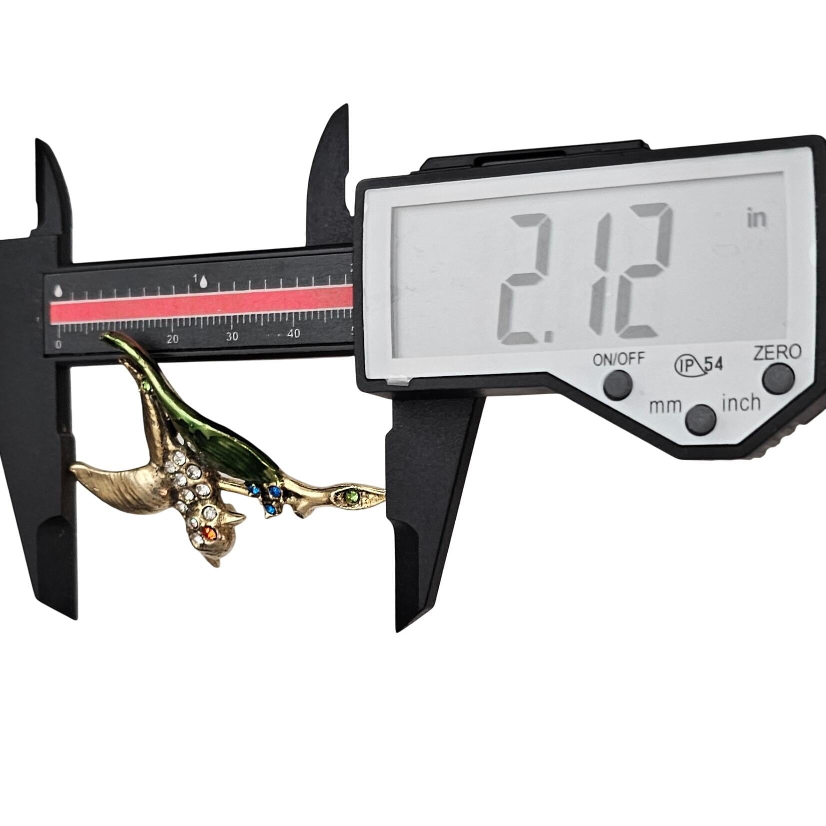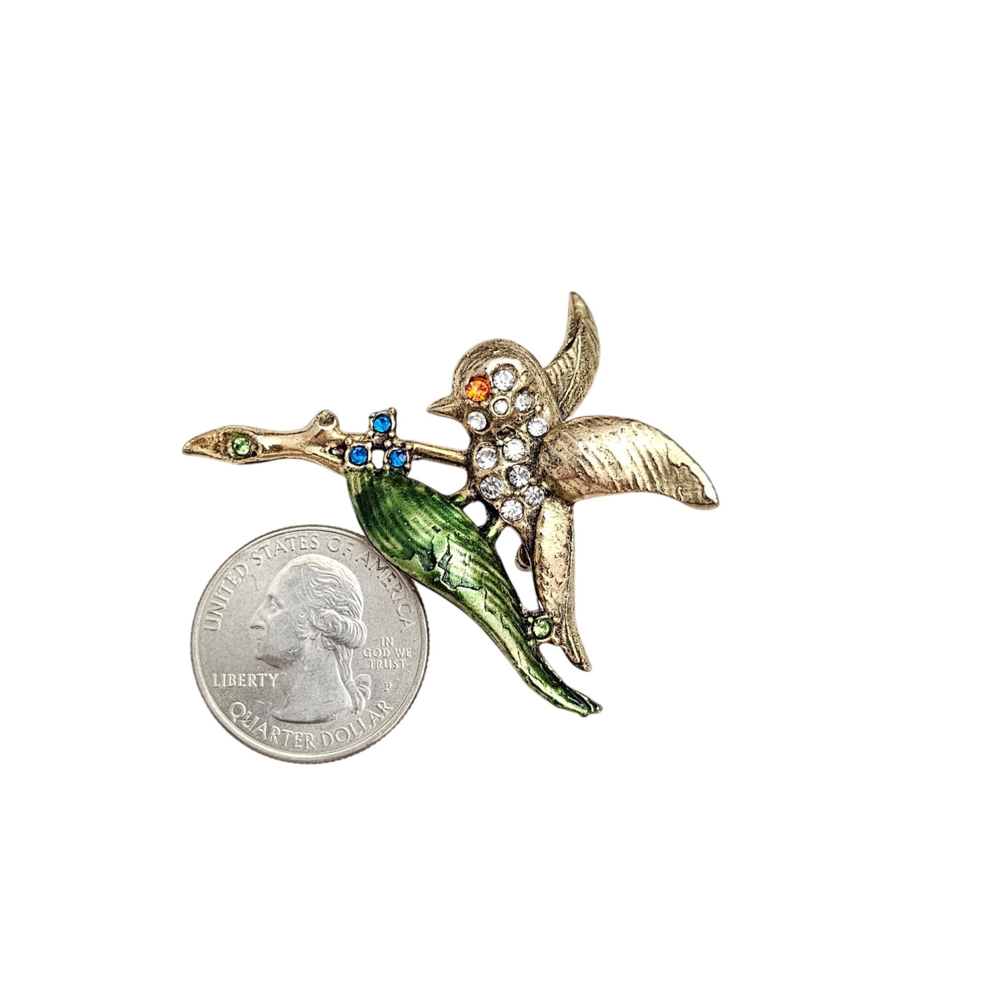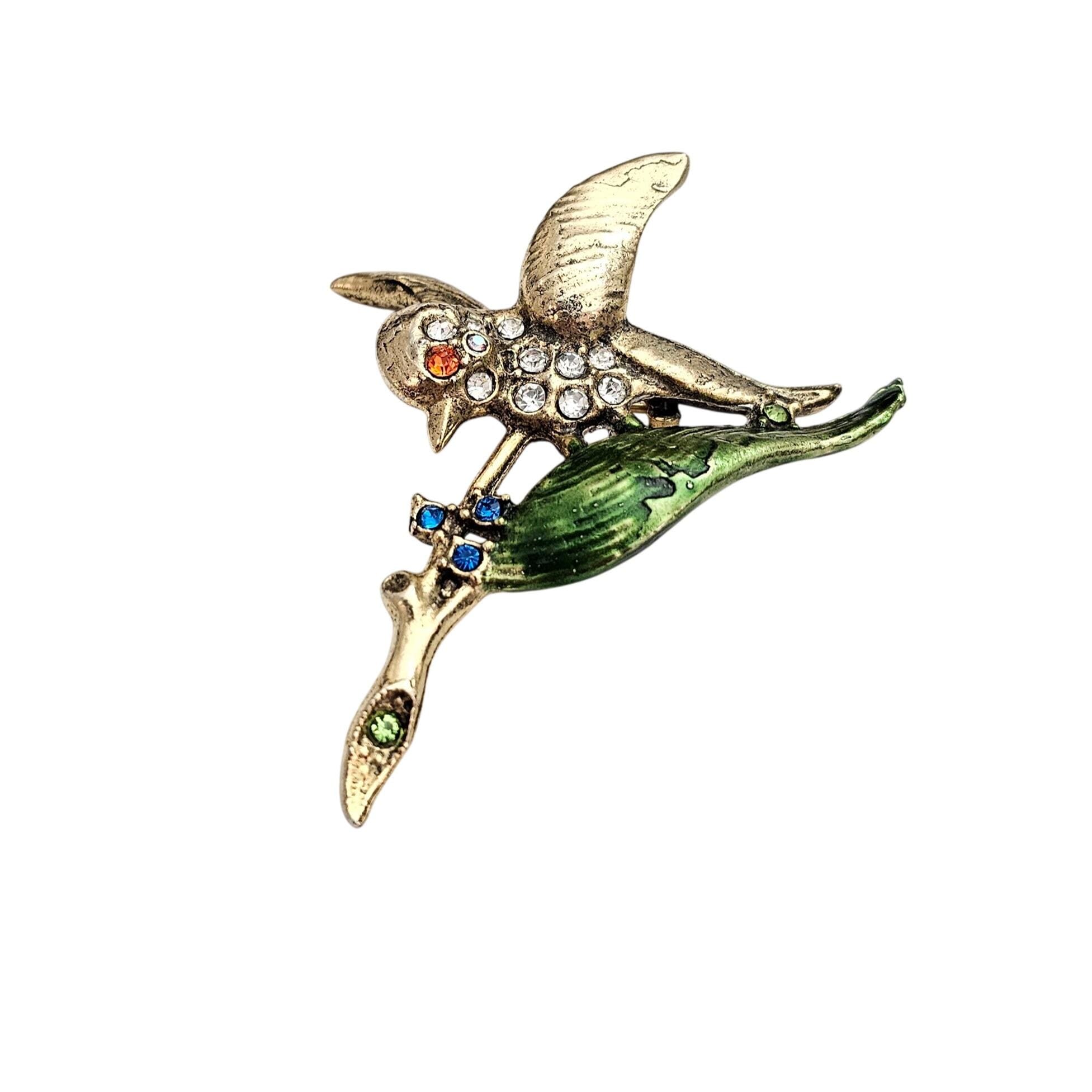 Clear Rhinestone Bird Brooch 1940-50s Green Leaf Pin J483